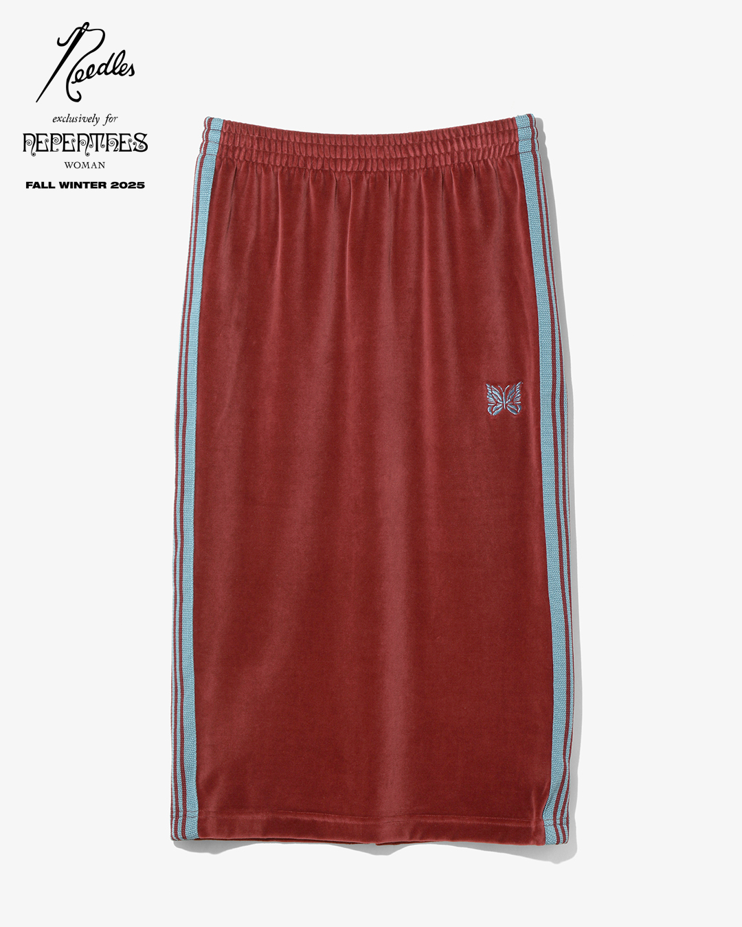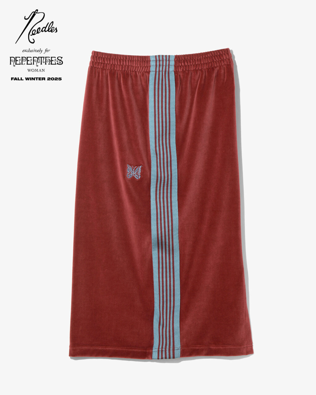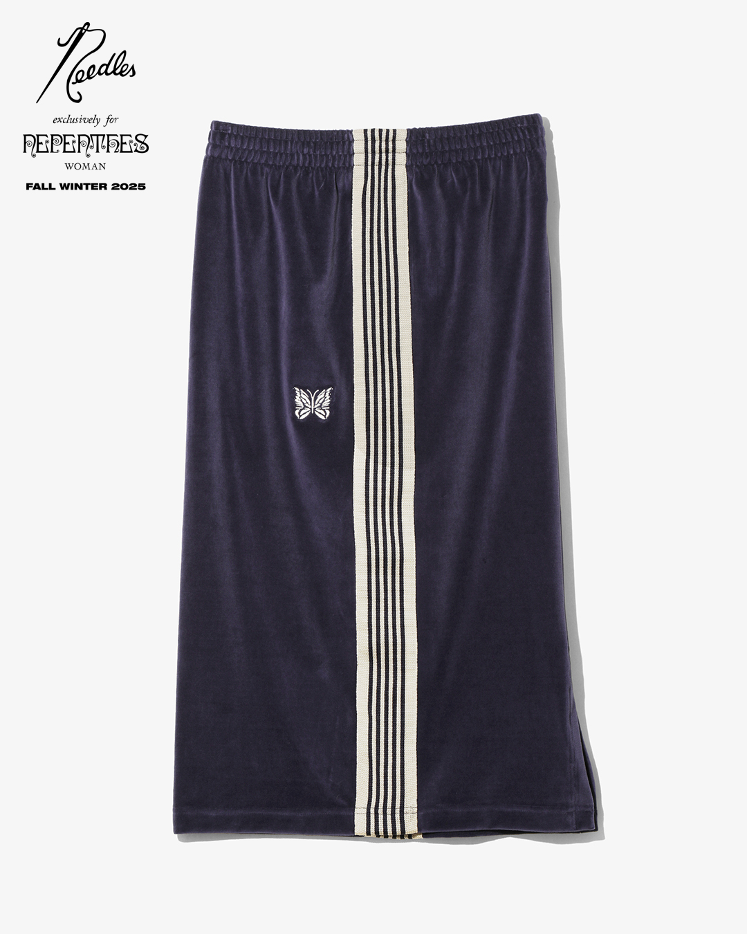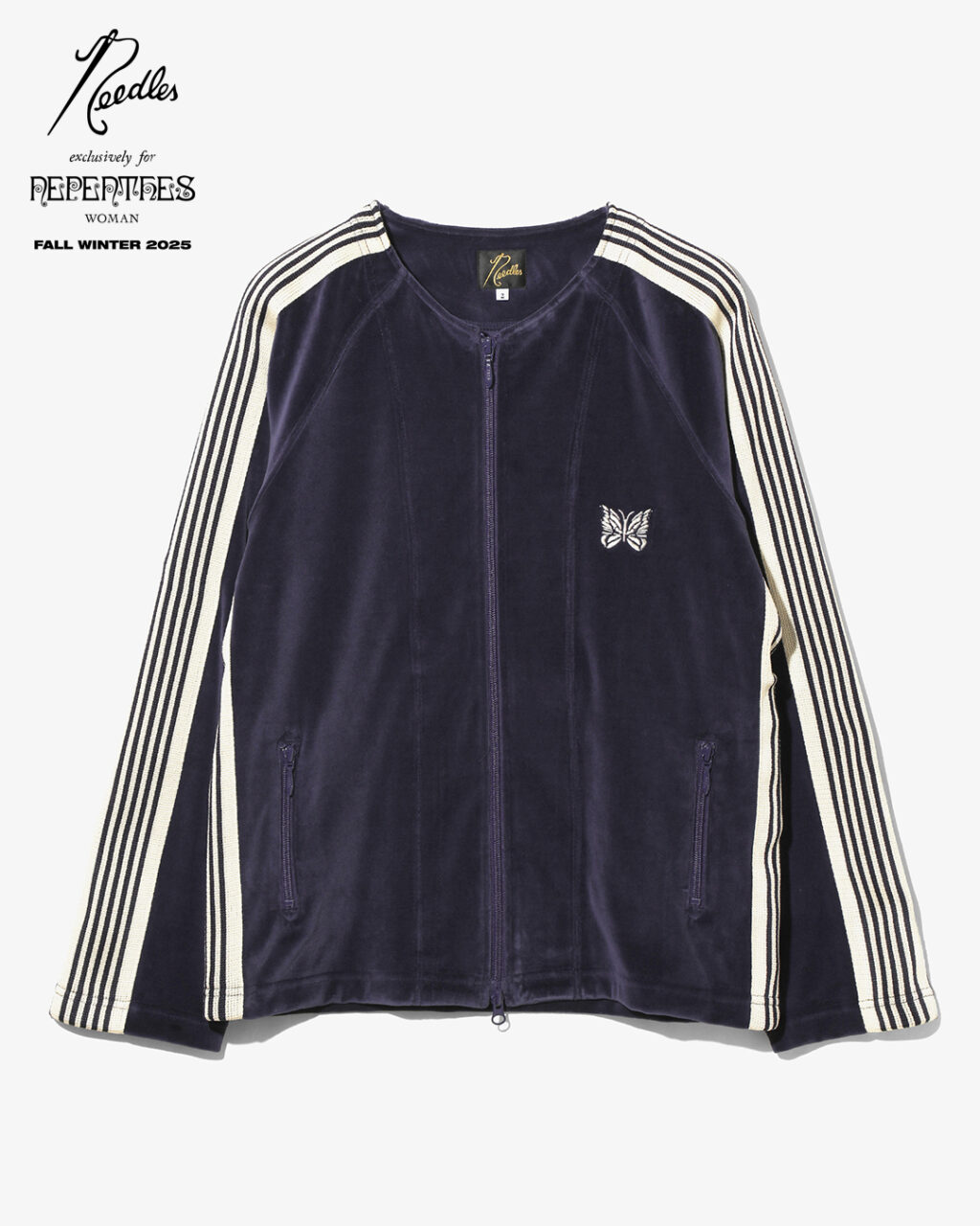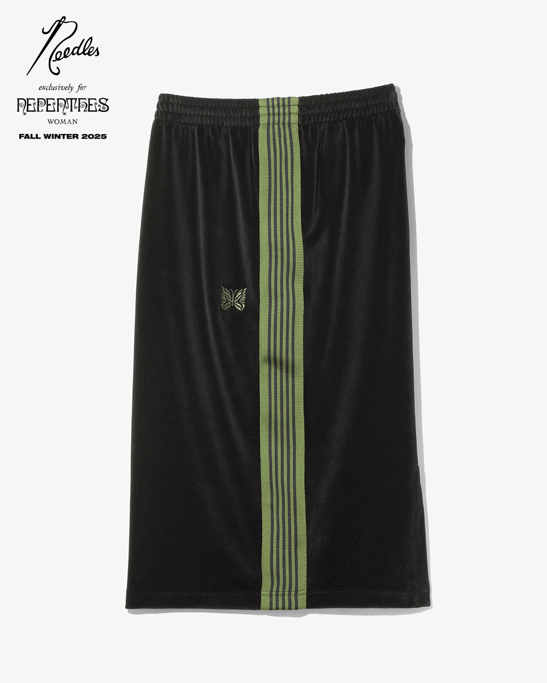 今季は、NEEDLESを象徴するトラックシリーズを、艶やかな光沢と滑らかな質感をもつレオパード柄のベロア素材で製作。