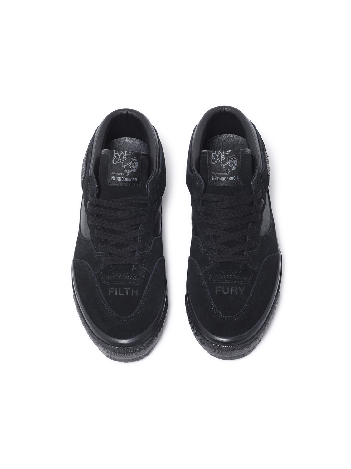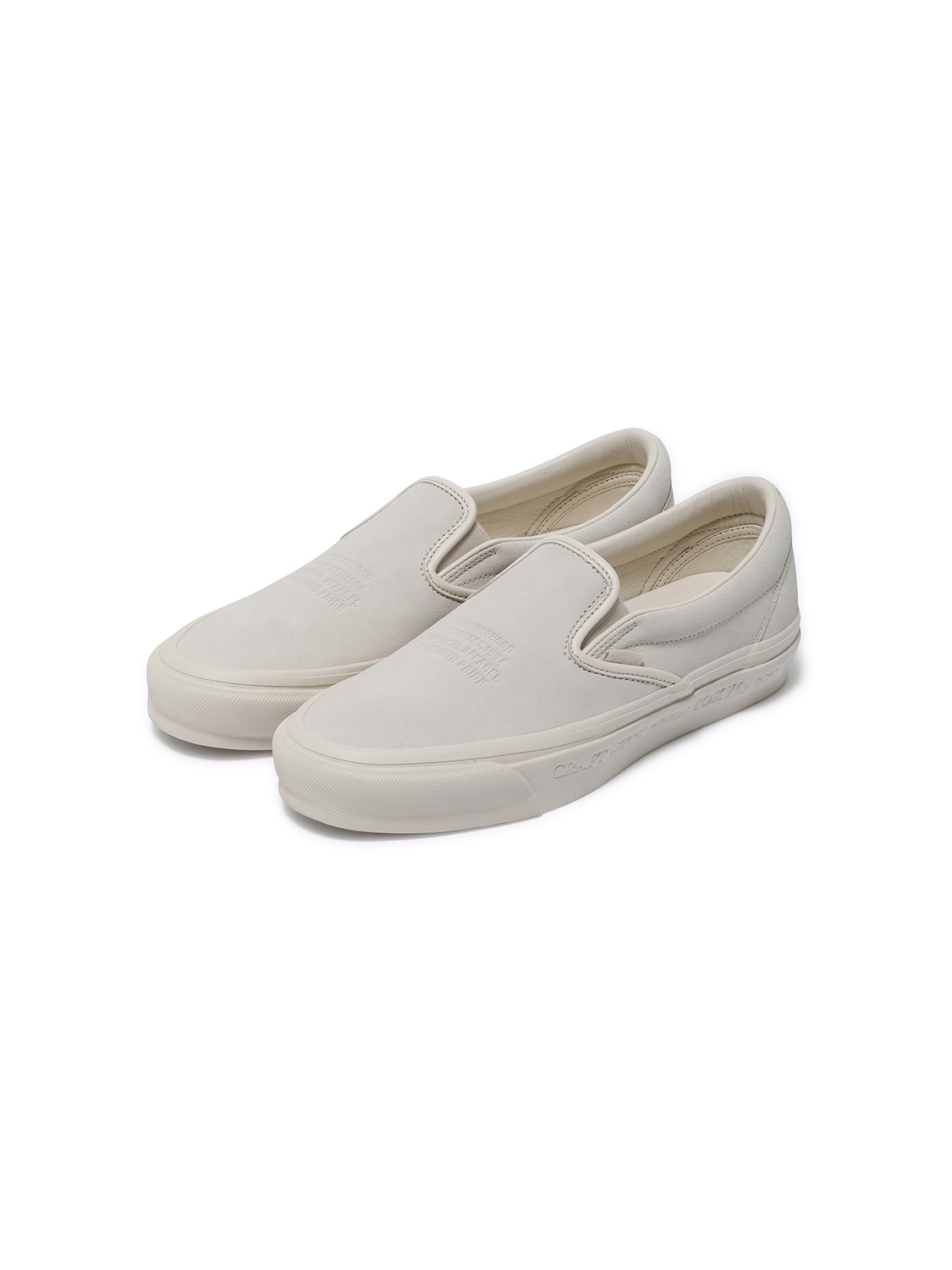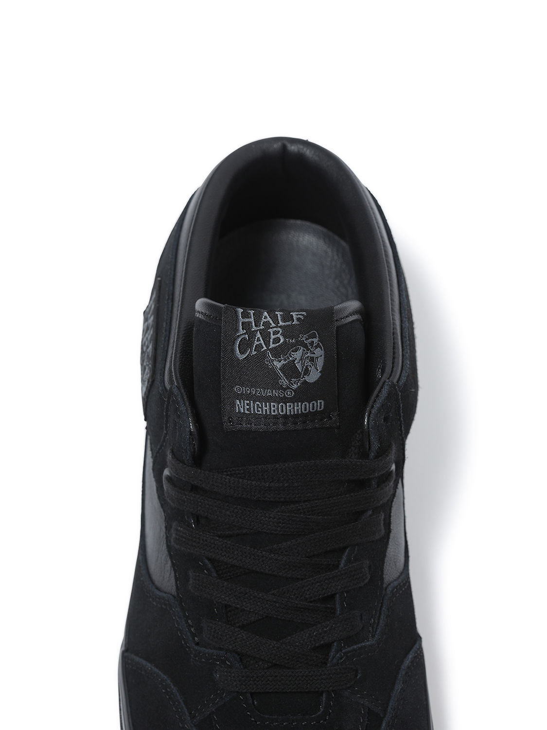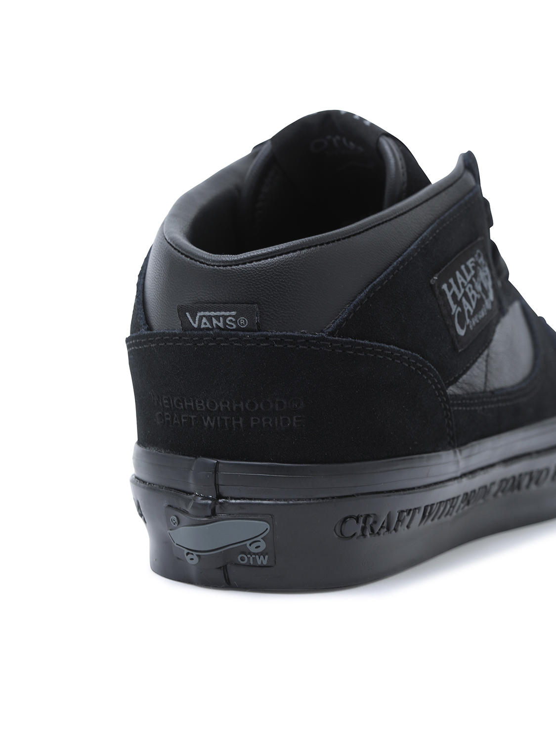 どちらも上質なスウェードとレザーで仕立て、サイドウォール、ヴァンプ、ヒール部分にNEIGHBORHOODの象徴的なロゴとスローガンをエンボスで刻印している。