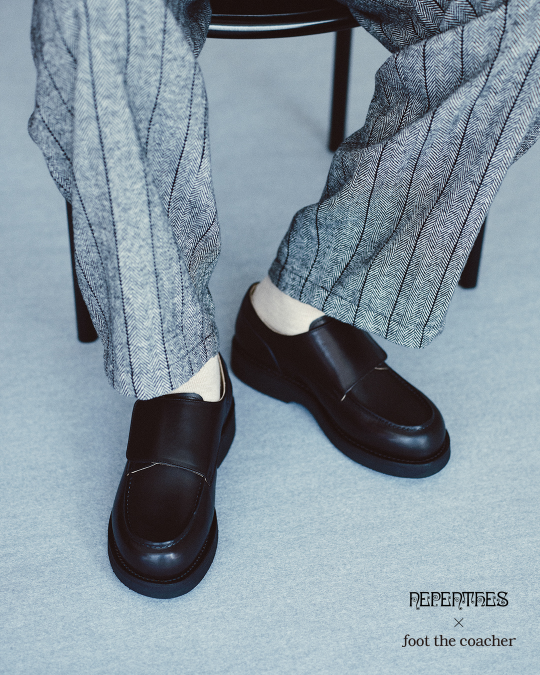 この両者にとって初のタッグとなる今回は、NEPENTHESのために新たに設計されたオブリークトゥのオリジナルラスト・NEP-1816を採用し、特別仕様のモカシンシューズを製作。