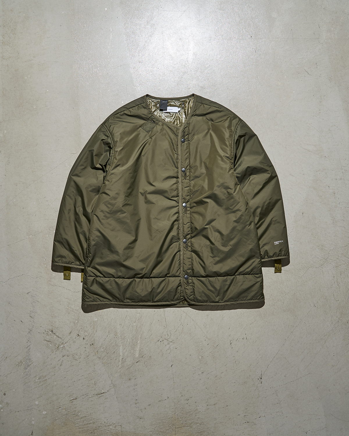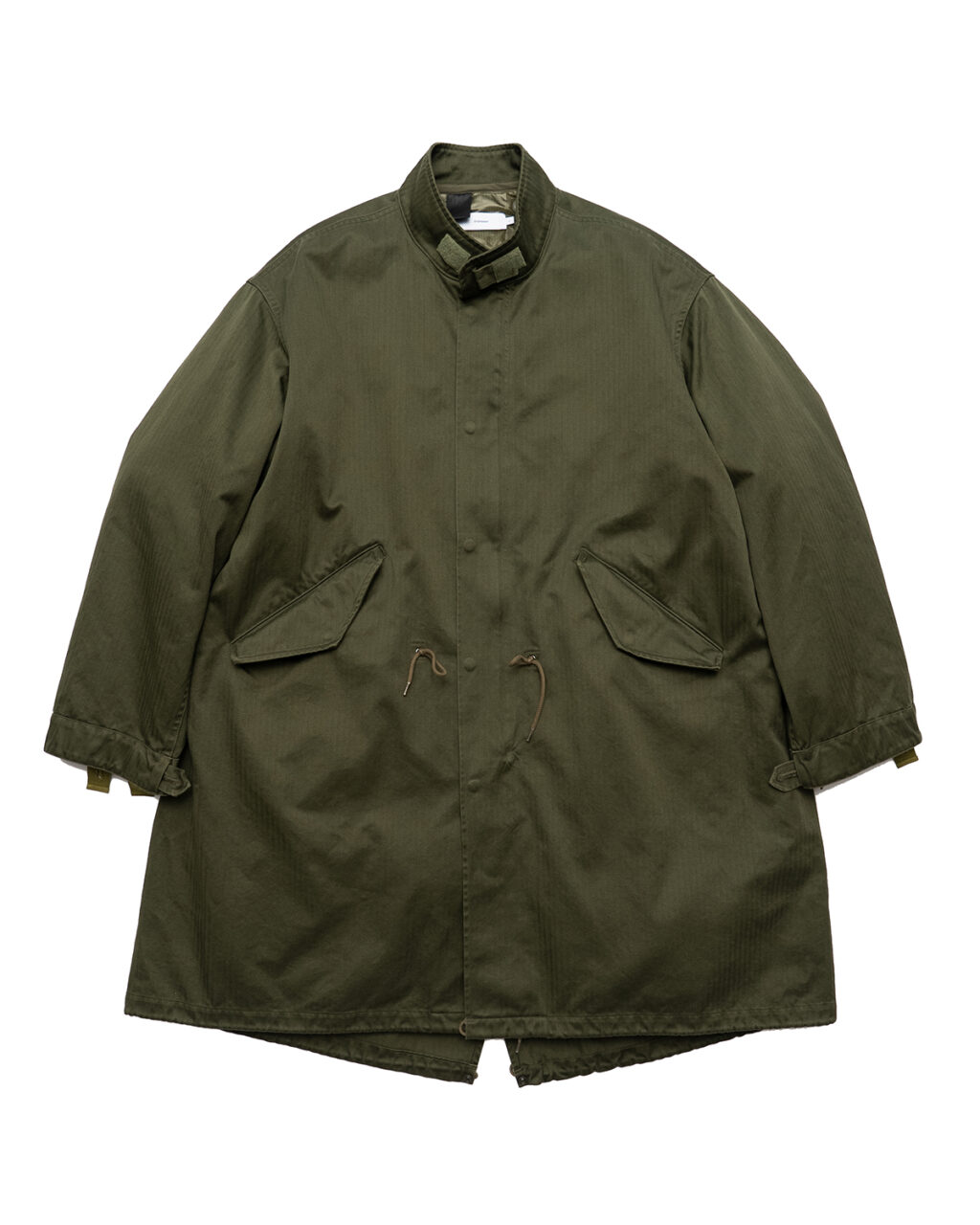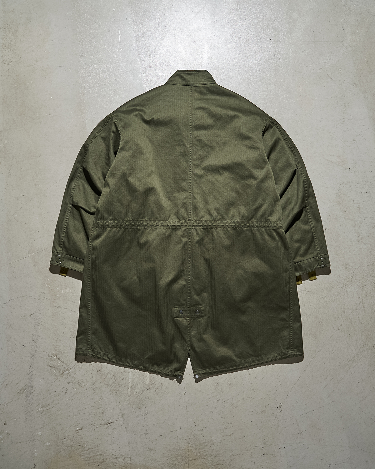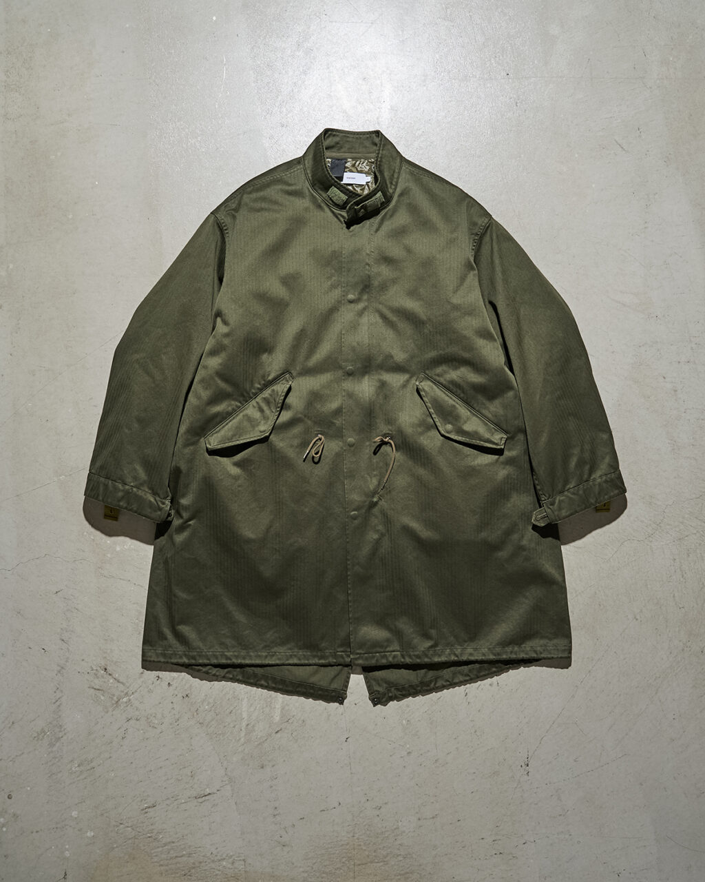 N.HOOLYWOOD TEST PRODUCT EXCHANGE SERVICE(N.ハリウッド テスト プロダクト エクスチェンジサービス)による2WAY仕様のM-65をベースとした『Fishtail Mods Coat』は、素材にGraphpaperオリジナルのヘリンボーン生地を用いて、フードを排することでミニマルなデザインへアップデート。脱着式ライナーにはPERTEX® QUANTUMとリップストップ、PRIMALOFT®を使用している。