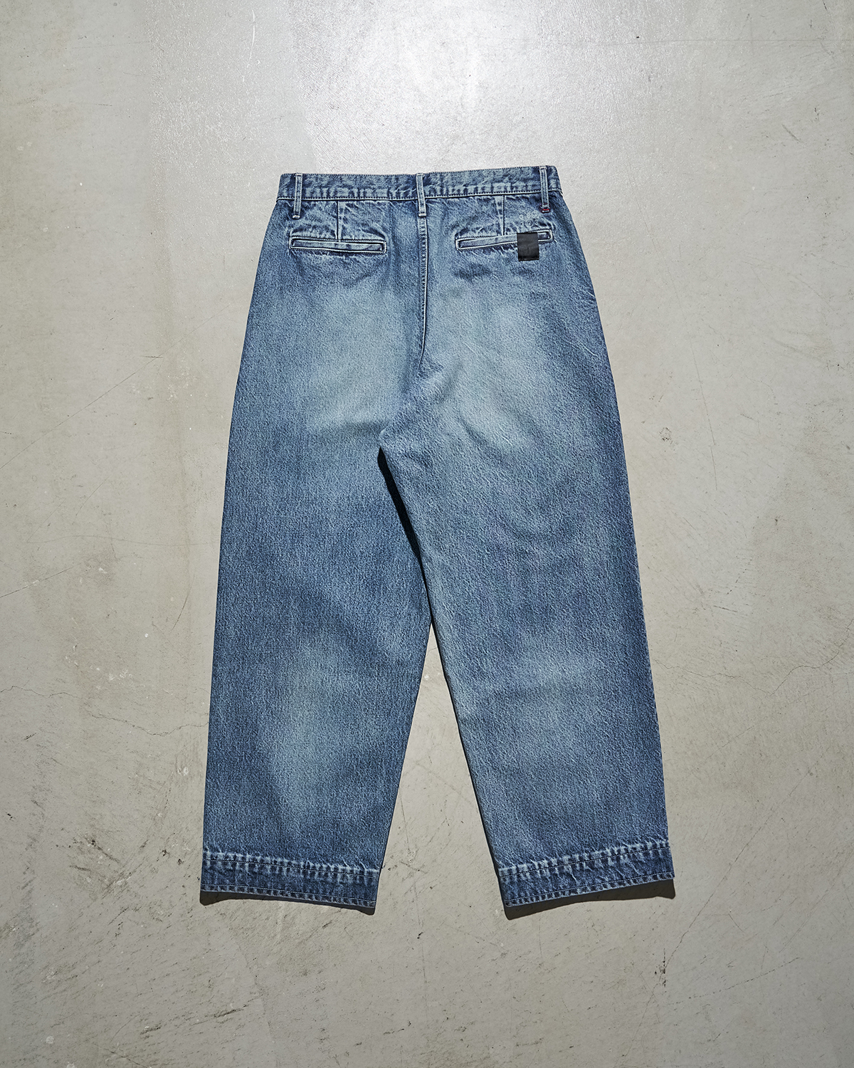 一方、Graphpaperのタック入りデニムパンツをベースとした『Two Tuck Tapered Pants』は、N.HOOLYWOODで使用される13オンスのデニムを素材に採用。片玉縁のヒップポケットや両ブランドのネオバボタン、左脚のロゴや右後ポケットの”087373”のレーザープリント、オリジナルフラッシャーなど、スペシャルな仕様を随所に取り入れた。