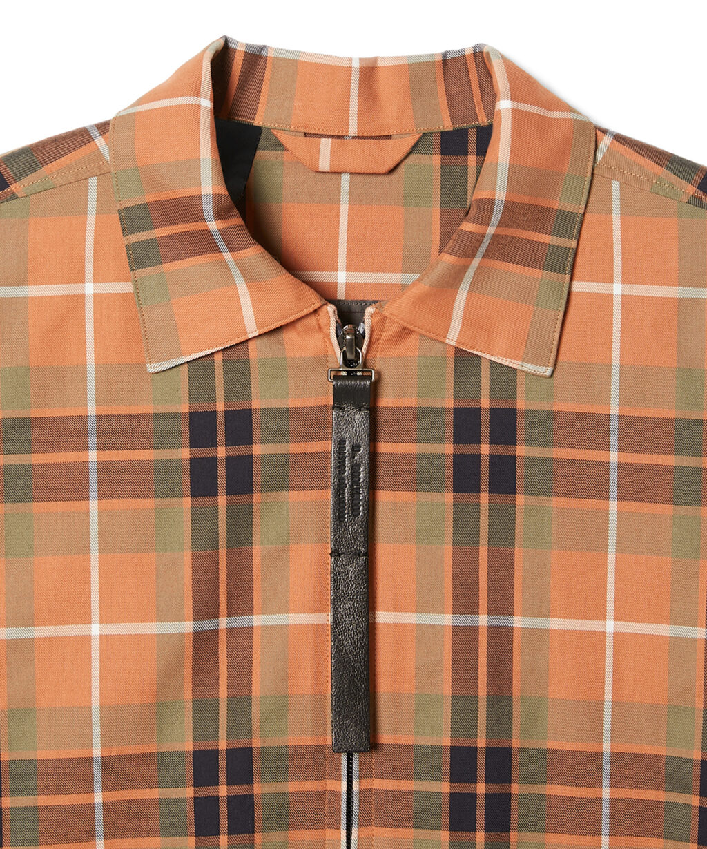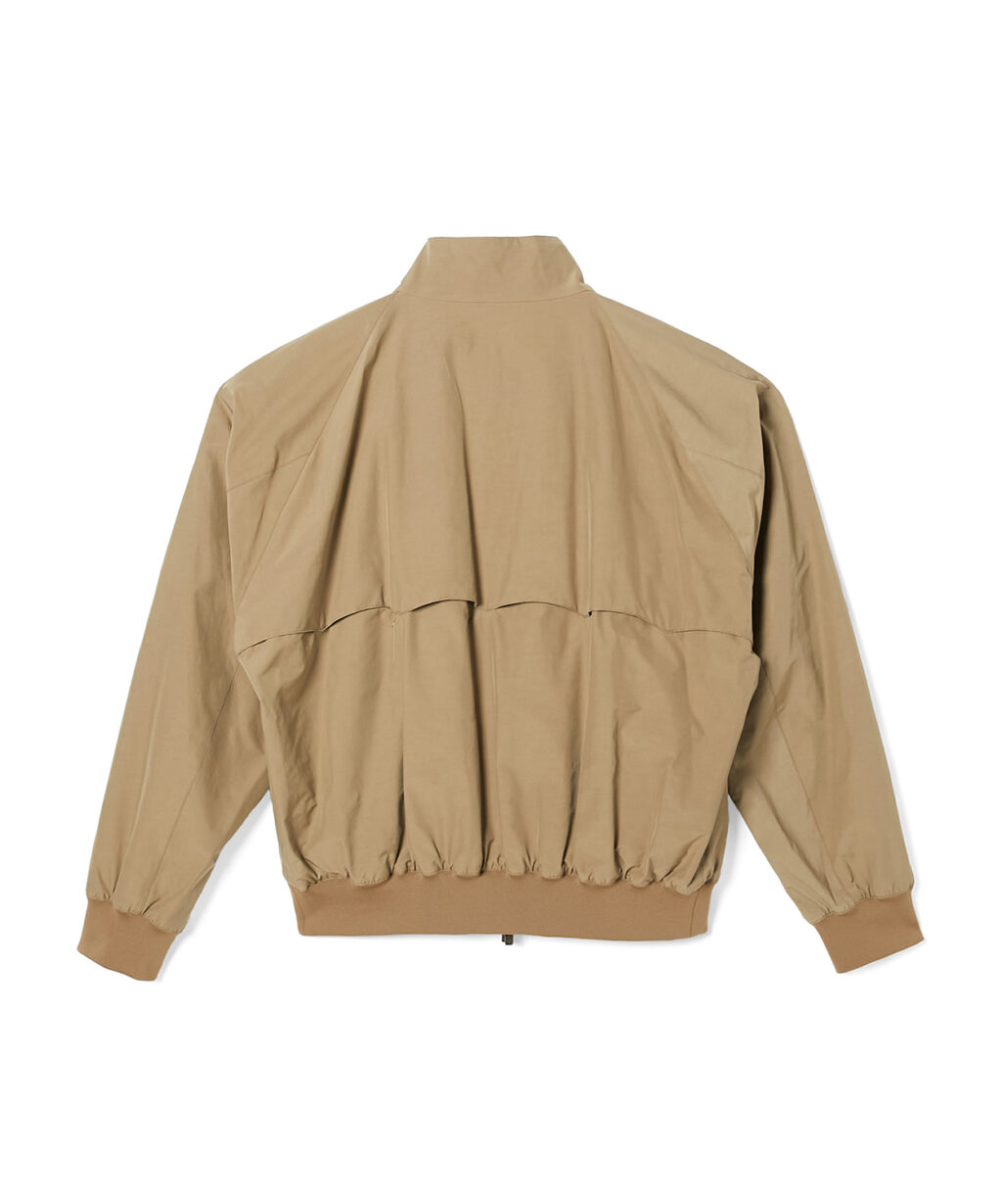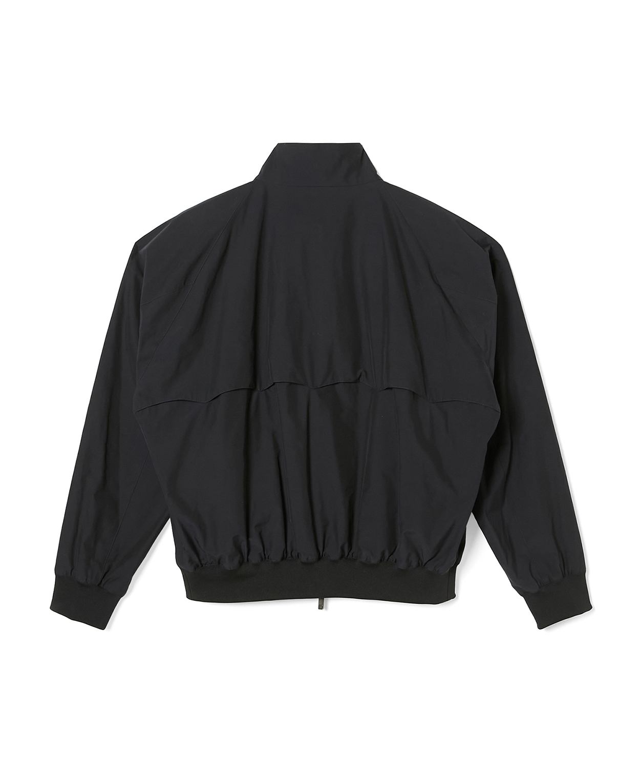 トラックスーツをイメージし、裾のリブはテンションを強めに設定。ネックラインも広めに取り、襟元から覗く裏地がアクセントとなっている。