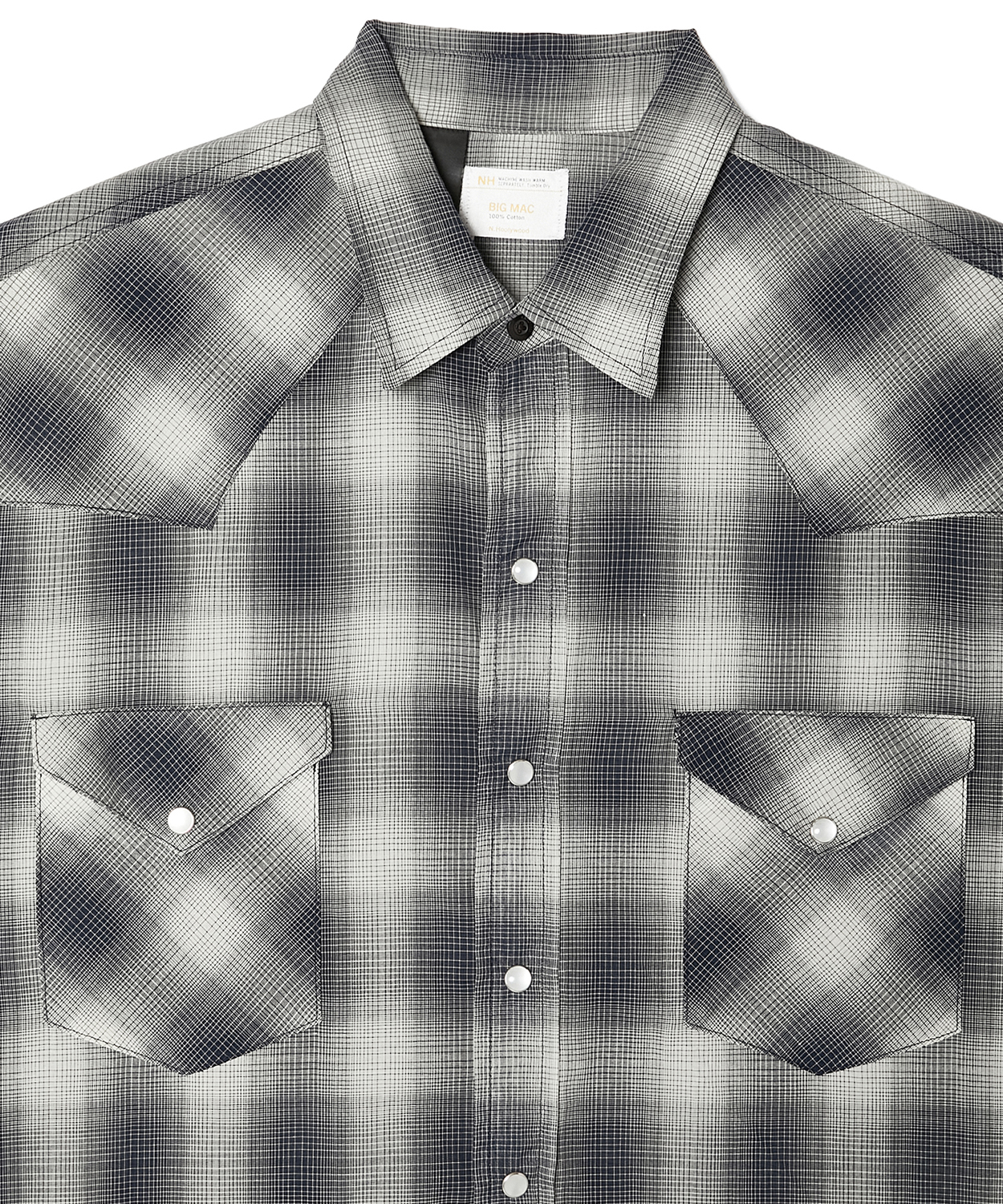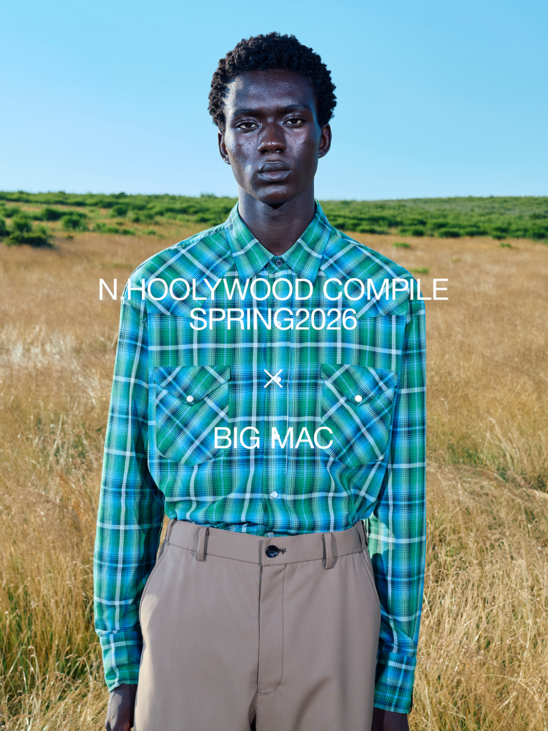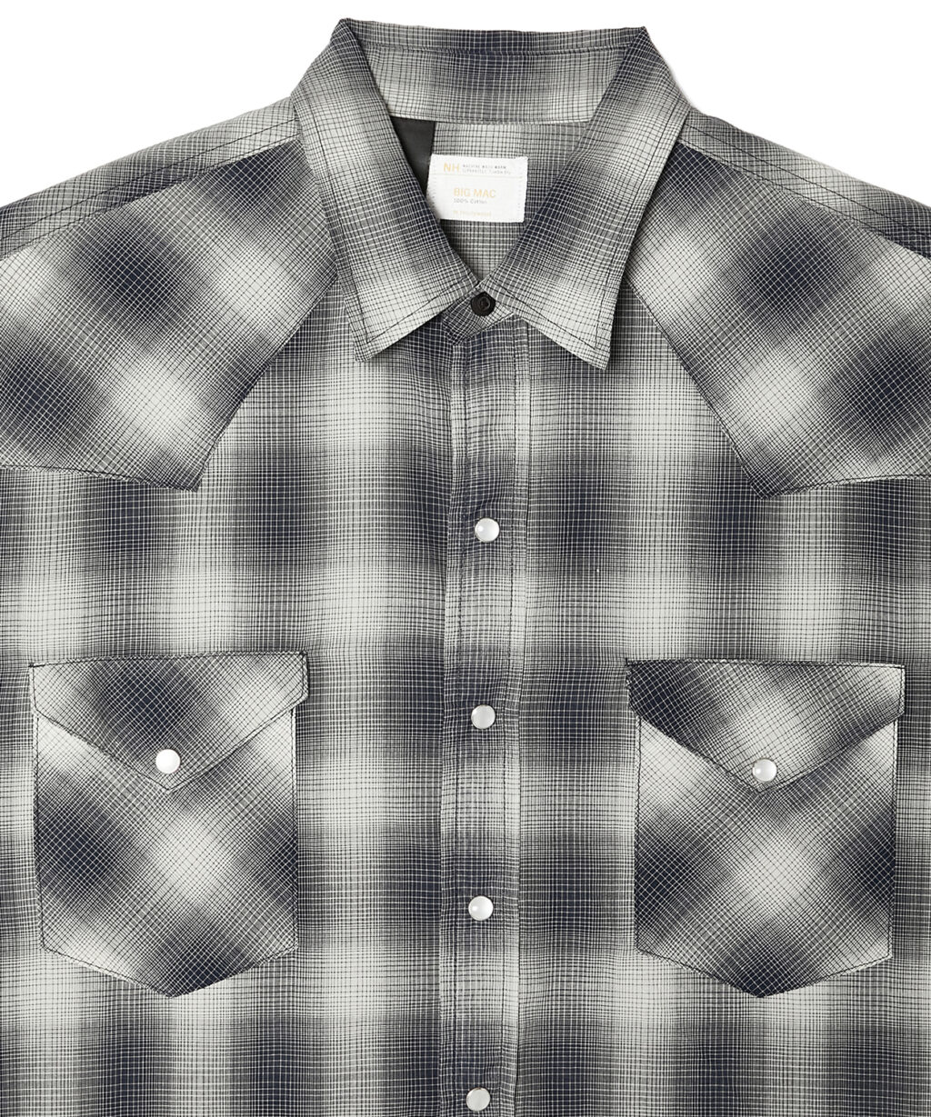 BIG MACとは、1970年代のアーカイブをベースとしたウエスタンシャツ、デニムパンツ、ハーフスリーブシャツの計3型を製作。いずれもBIG MACのクラシックな要素を継承しながら、現代的なシルエットや繊細なテキスタイルを用い、N.HOOLYWOOD COMPILEの視点でモダンに昇華させた。