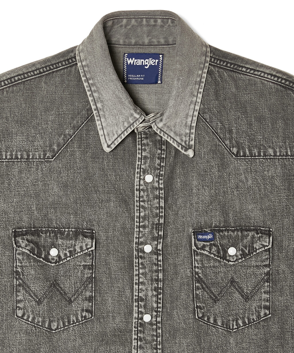 一方、Wranglerとのコラボレーションでは、定番デニムウエスタンシャツ『70127MW』とデニムパンツ『936WBK』をベースに採用。各アイテムの特徴的なディテールは踏襲しつつも、N.HOOLYWOOD COMPILEの視点からシルエットやデザインを現代的にアップデートしている。
