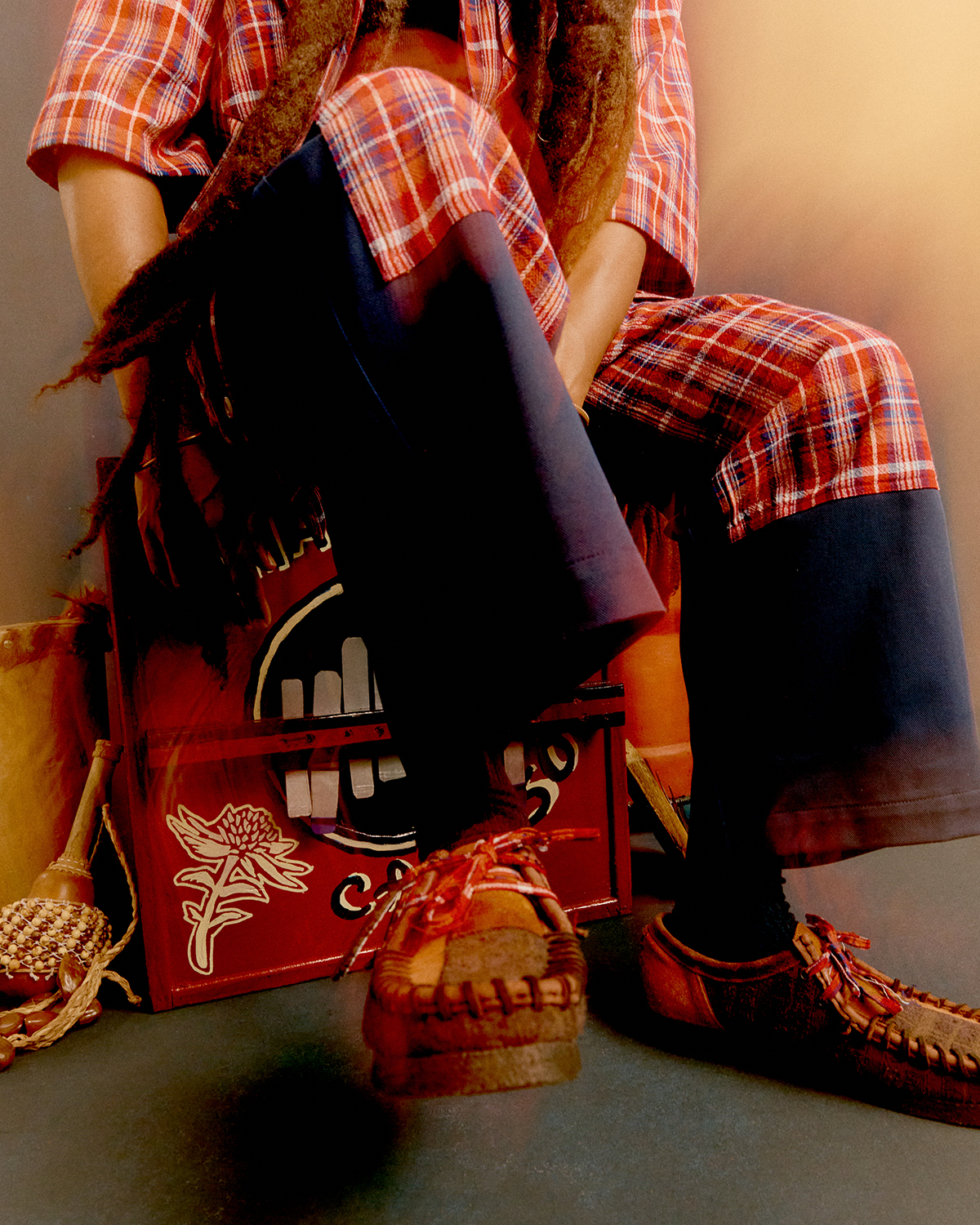 また、フラワーフォブやタータン生地のシューレースをアクセントとして加えることで、クラシックなシルエットに現代的な個性を表現。