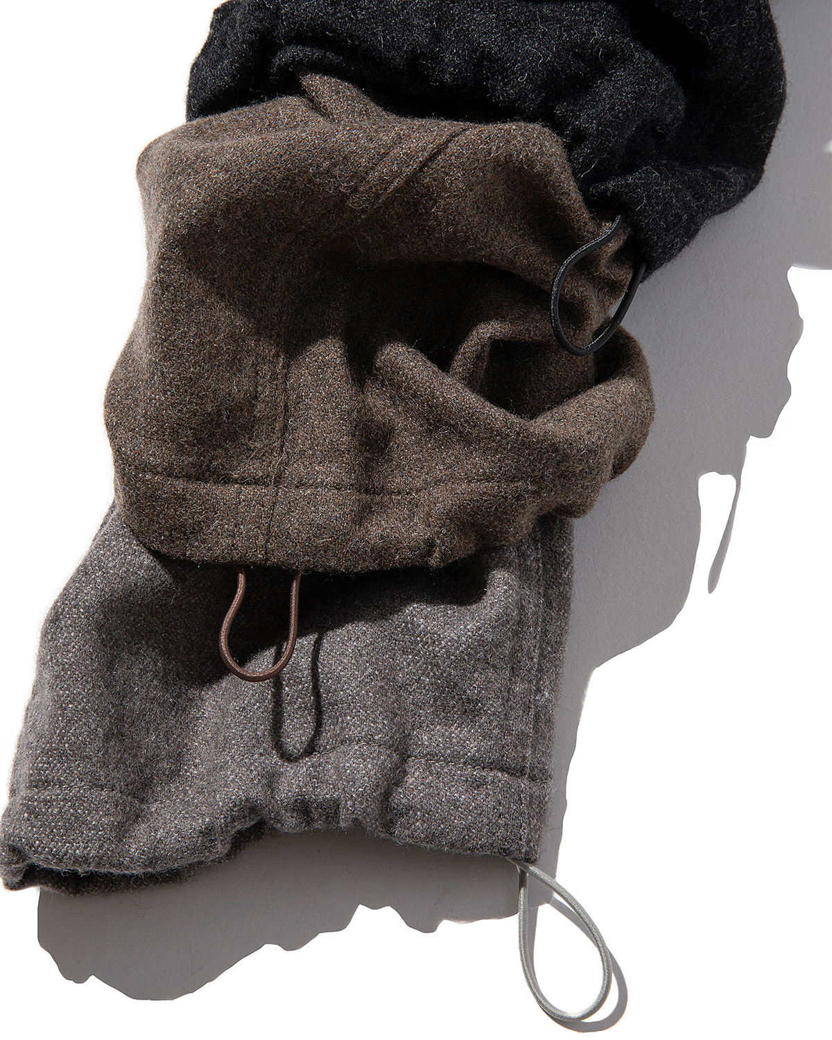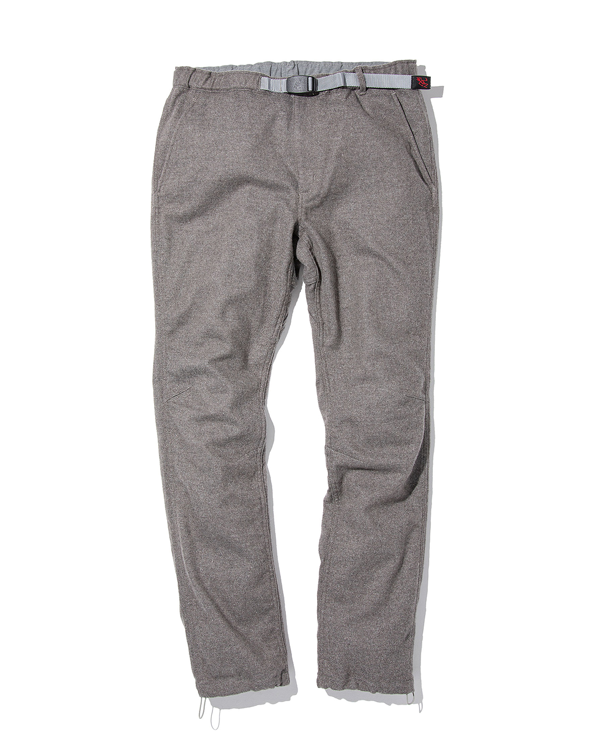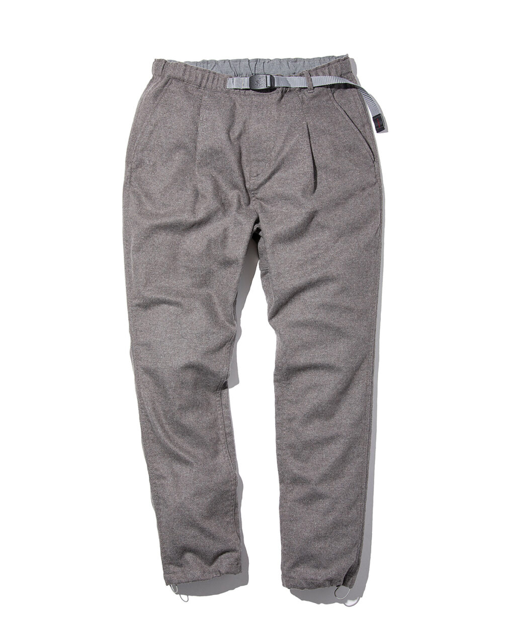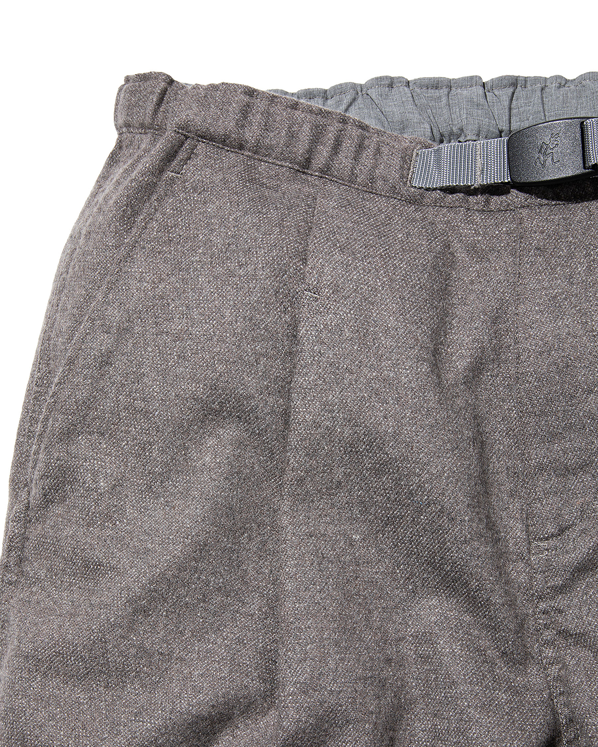 リサイクルウールを使用したサスティナブルな素材でもあり、ざっくり織られたツイードの豊かな表情や、カシミヤブレンドならではの滑らかで上質な肌触りが特長的な生地を、『WALKER TP EASY PANTS』、『CLIMBER EASY PANTS』という2つの定番シルエットに落とし込んだ。