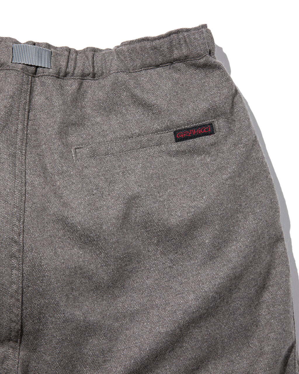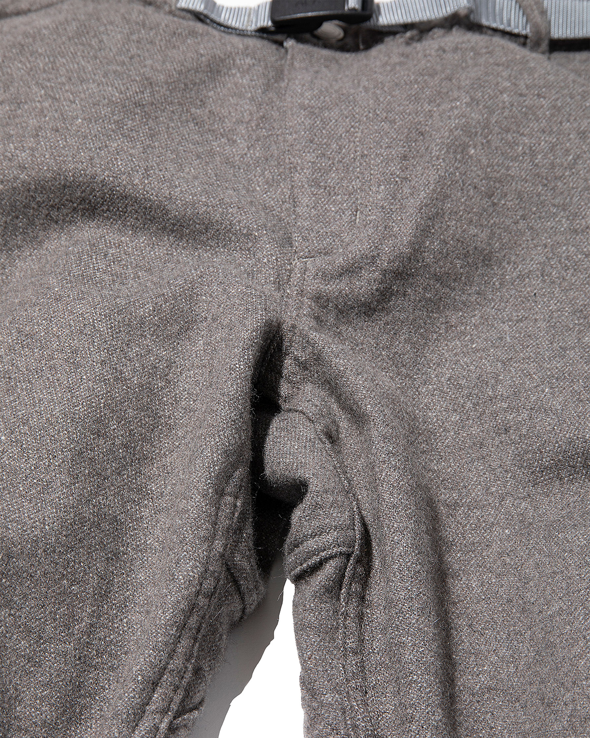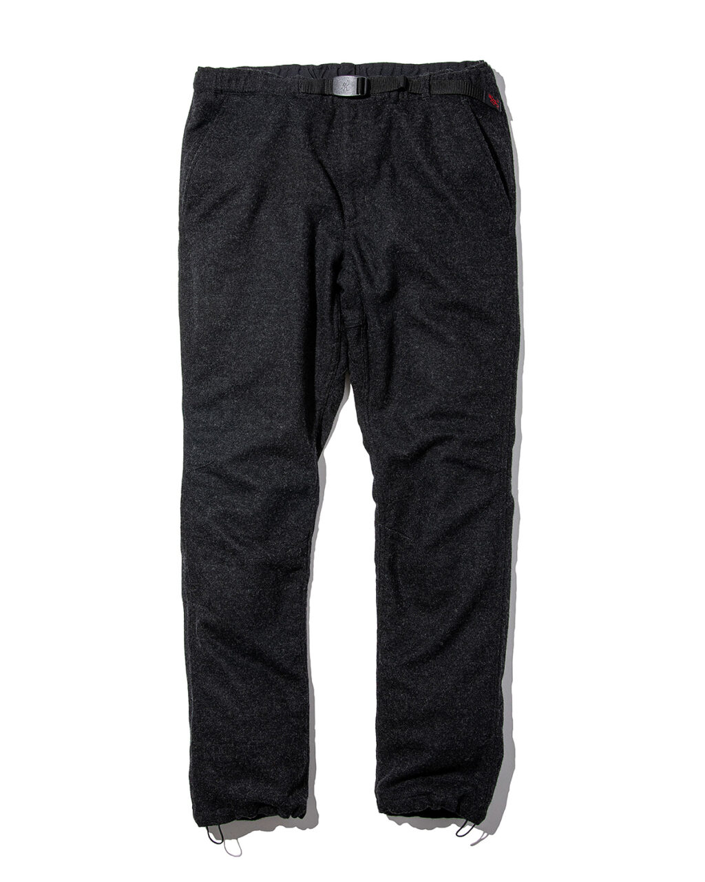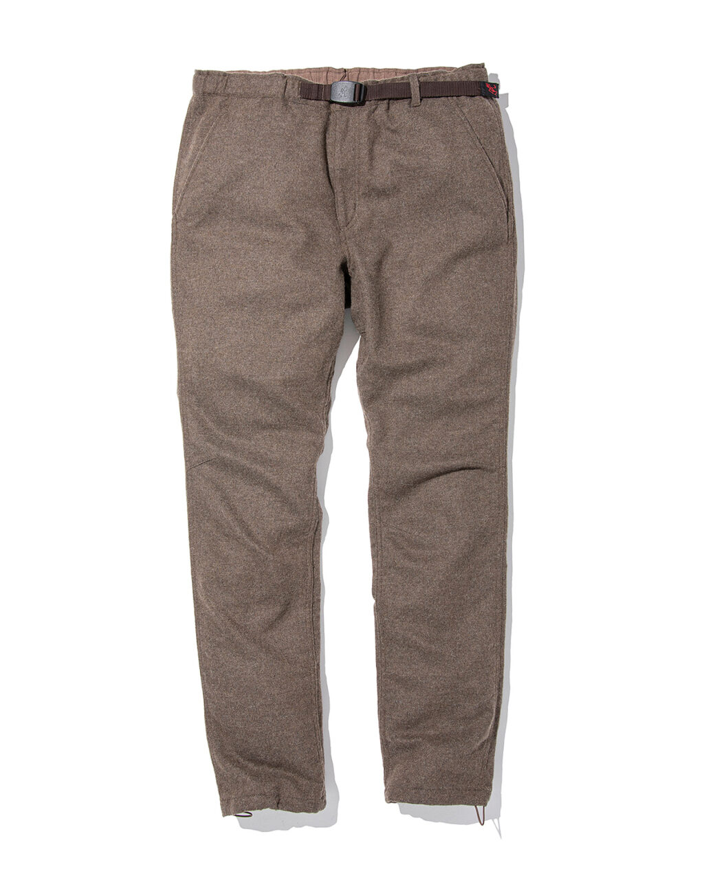 リサイクルウールを使用したサスティナブルな素材でもあり、ざっくり織られたツイードの豊かな表情や、カシミヤブレンドならではの滑らかで上質な肌触りが特長的な生地を、『WALKER TP EASY PANTS』、『CLIMBER EASY PANTS』という2つの定番シルエットに落とし込んだ。