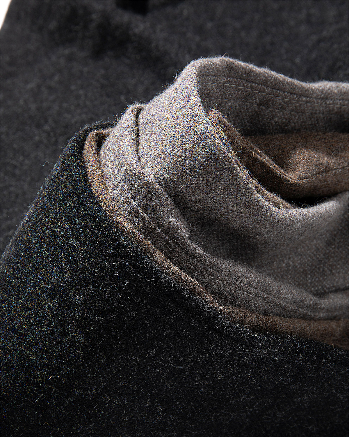 今回は、秋冬らしいファブリックとして、ウールとカシミヤをブレンドした生地を採用。