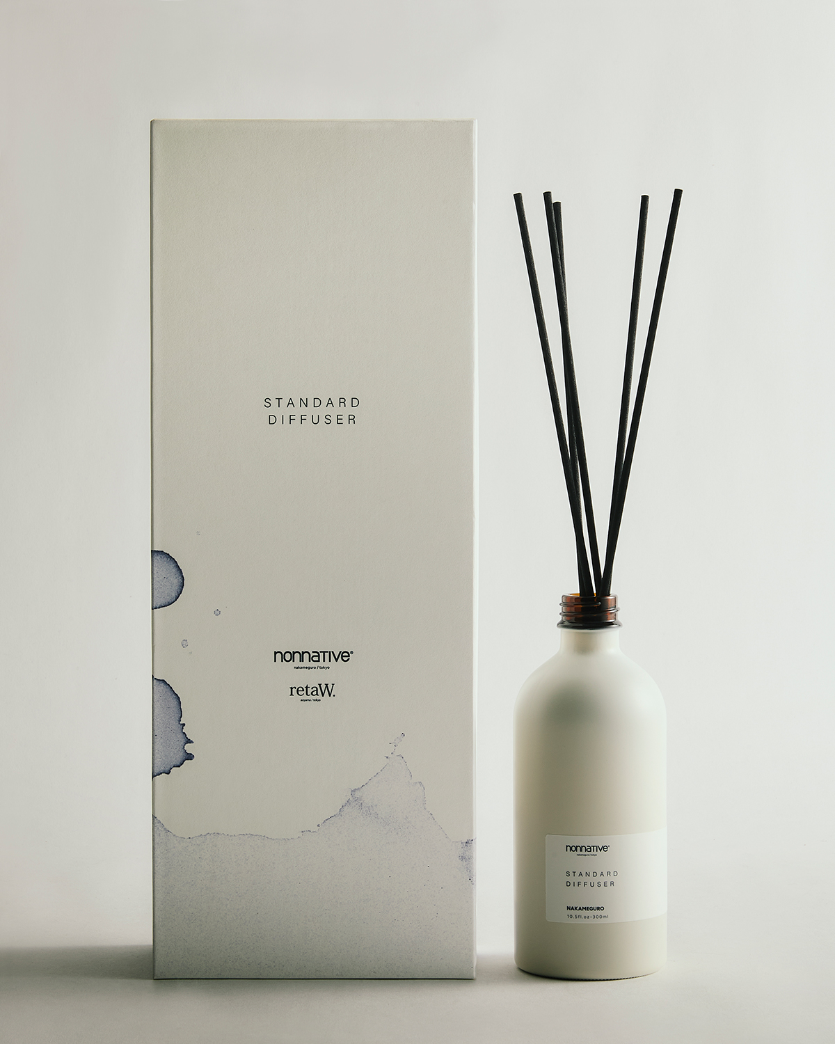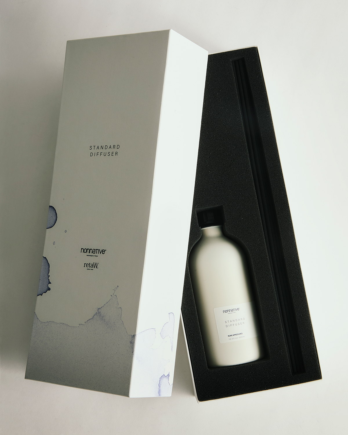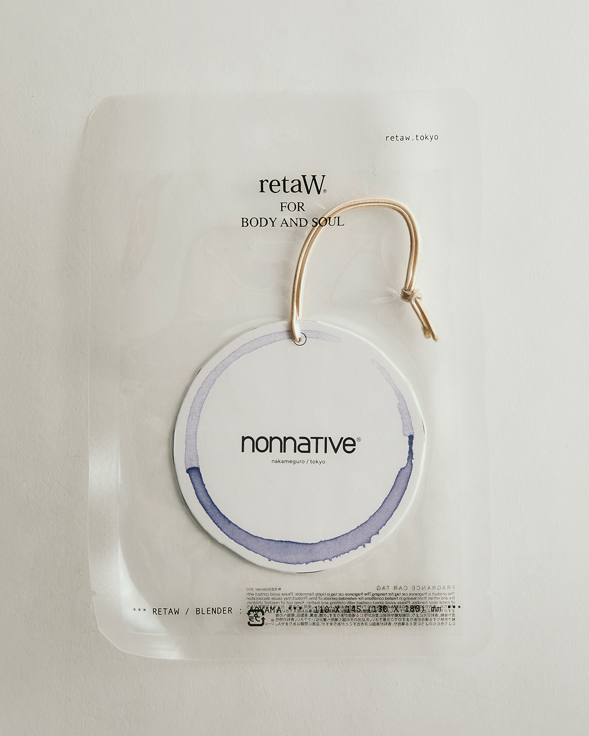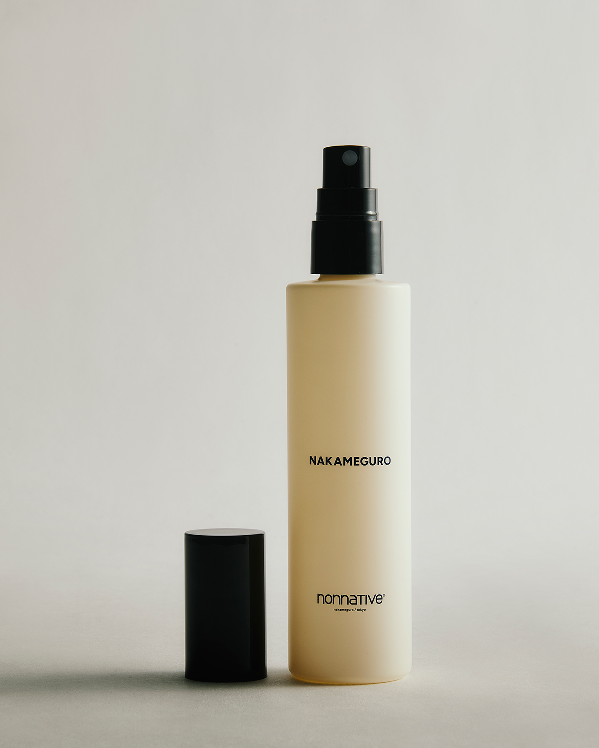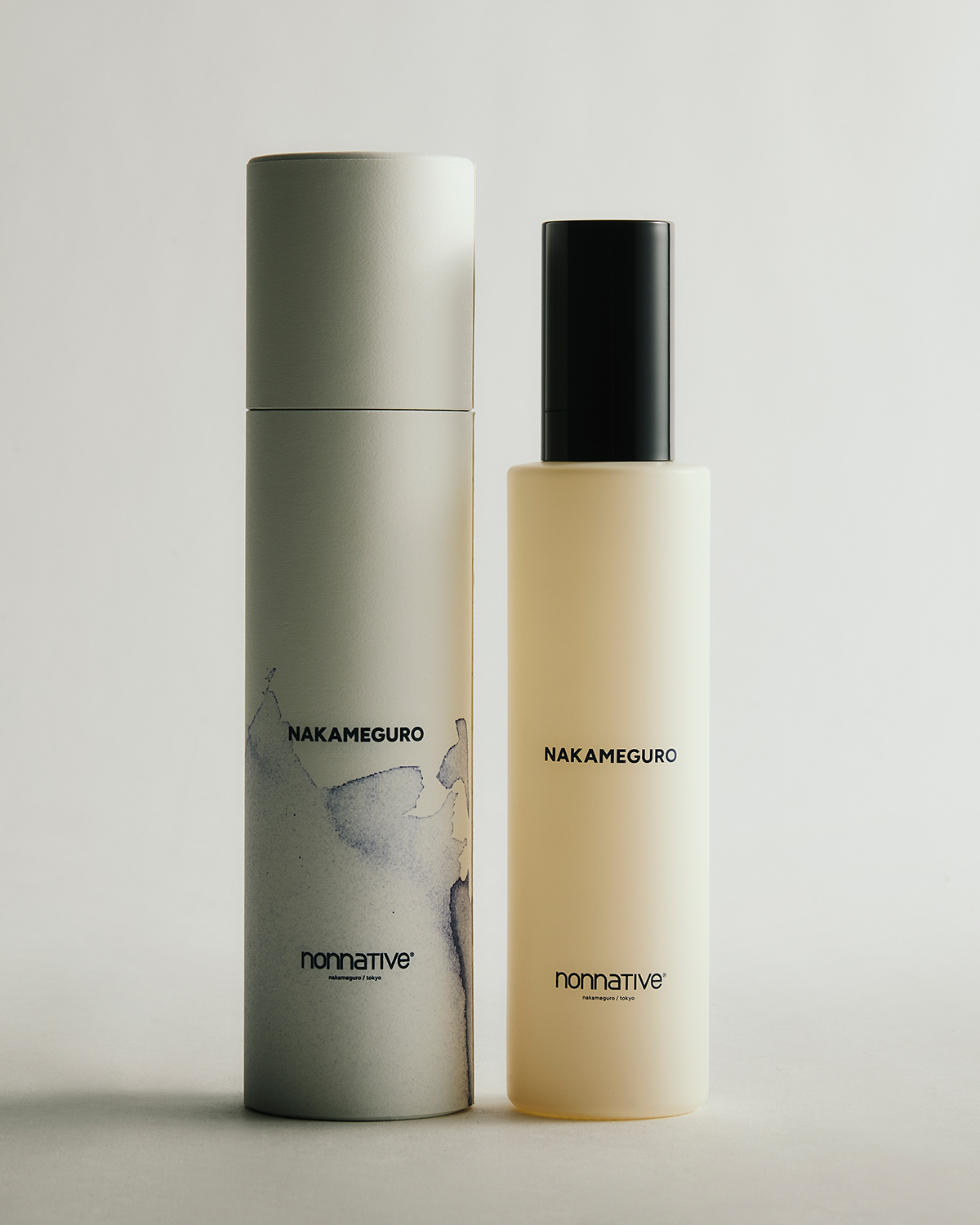 「お店に足を運んでいただいた際に、nonnativeらしさを感じてもいたい」という想いから、nonnativeのデザイナー藤井隆行が自ら調香した『NAKAMEGURO*』は、フランキンセンスにアンバーやシナモンを調合。トップは心身を整えるようなハーバルノート、ミドルからラストにかけては、澄んだウッドとスパイスの温もりが重なり合い、静かな余韻を残す。