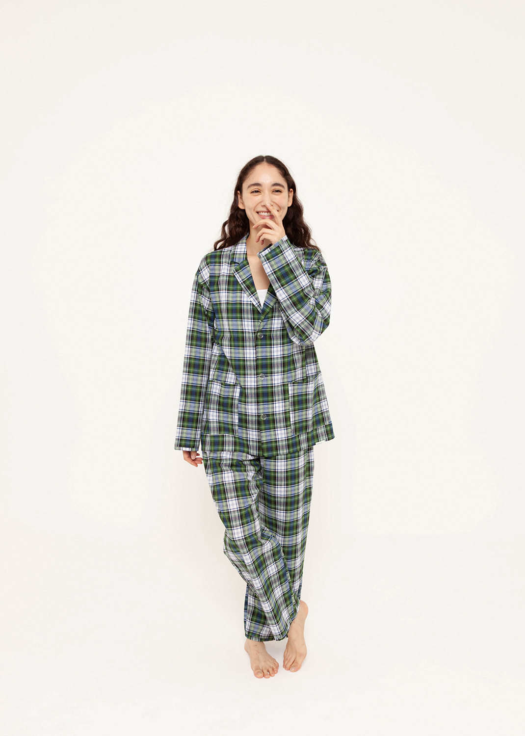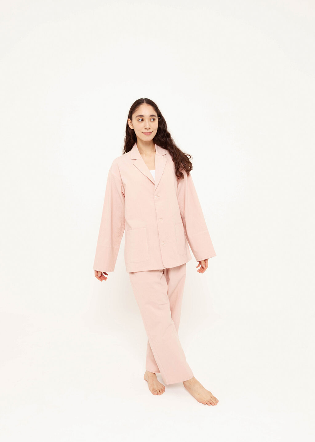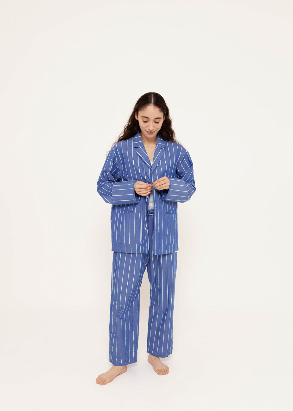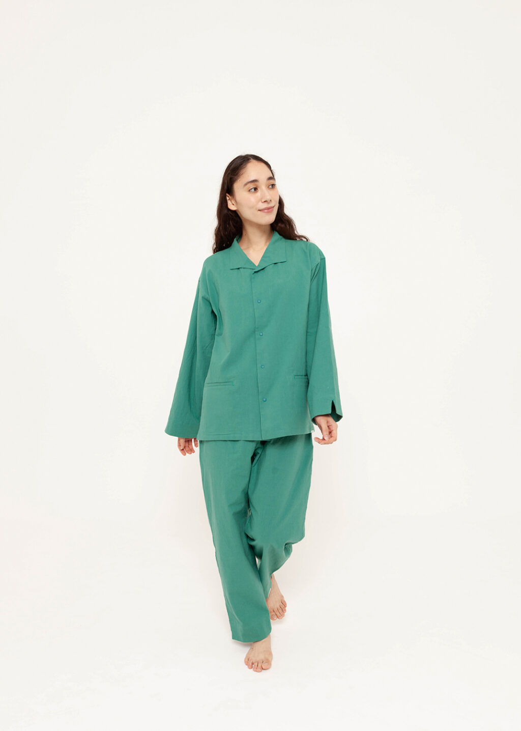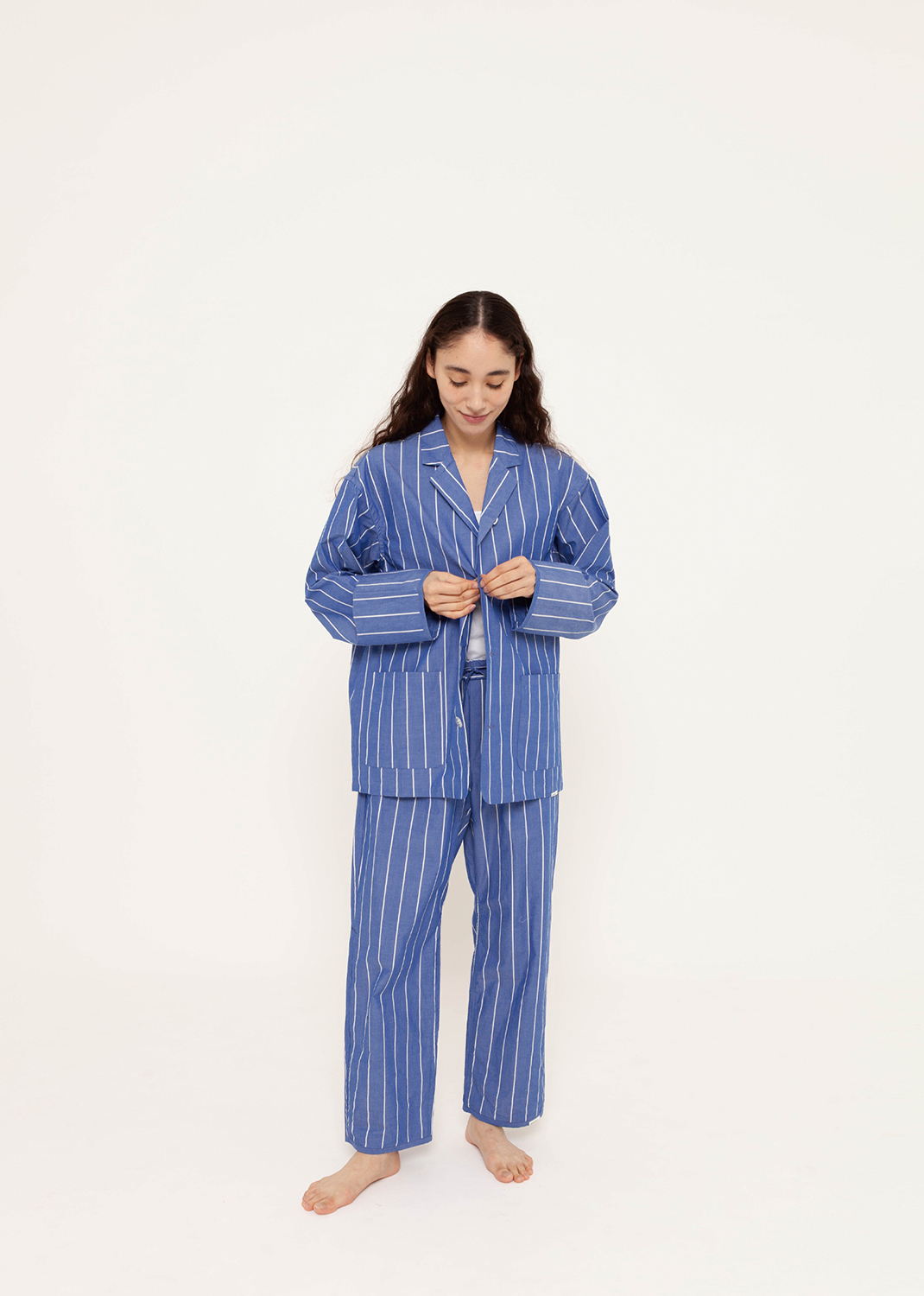 今季はセーラーカラーのパジャマ『wavy』が新登場。後ろに垂れる大きく四角い襟にタオル生地を使用し、お風呂上りの濡れた髪を受け止めてくれる設計になっている。