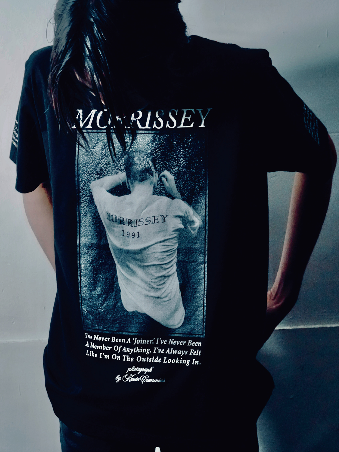 第1弾に続く今回のTシャツでは、Kevin Cummins(ケヴィン・カミンズ)が撮影したBernard Sumner(バーナード・サムナー)と、Morrissey(モリッシー)の写真をフロントに採用。