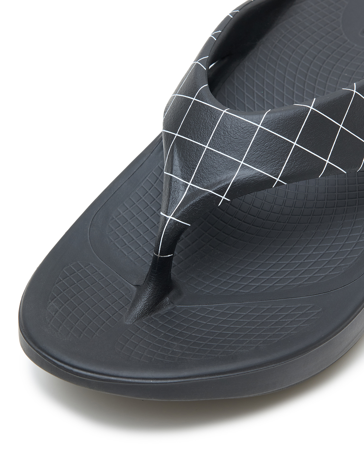 アイコニックなトングには、ストラップにスパイダーチェック柄をプラス。