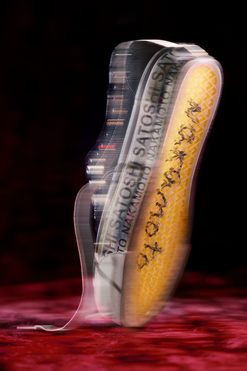 アッパーには剥がれるように仕上げたブラックキャンバスを採用。徐々にクラシックなチェッカーボード柄が顔を覗かせる、時間とともに進化するデザインが特徴的で、履き口のライニングにはフォームをあえて剥き出しにした荒削りな仕上げを施した。