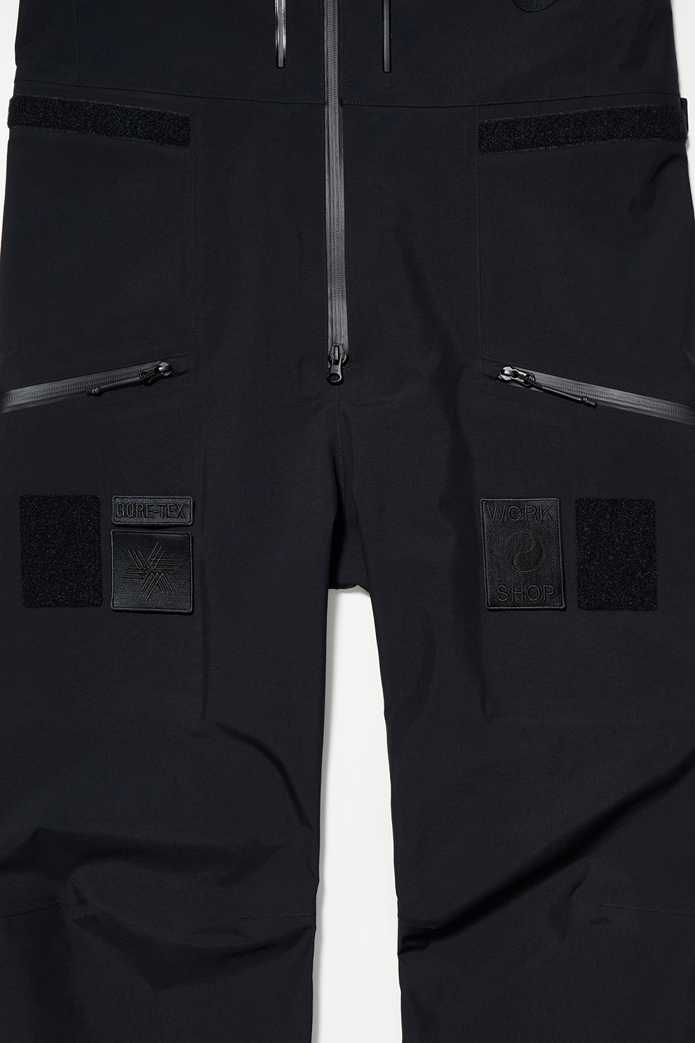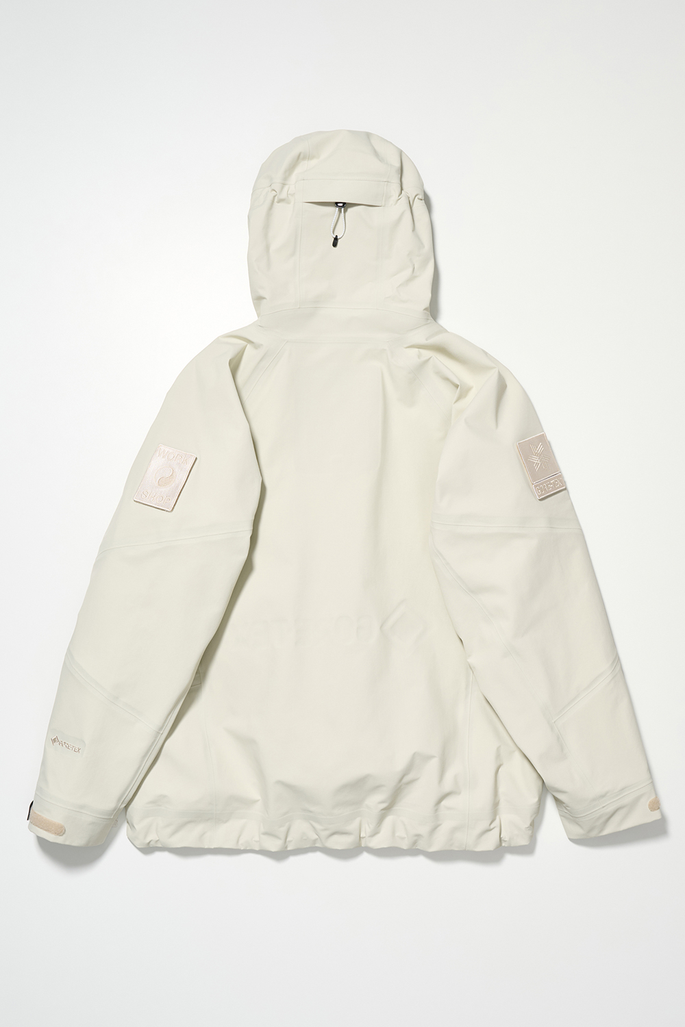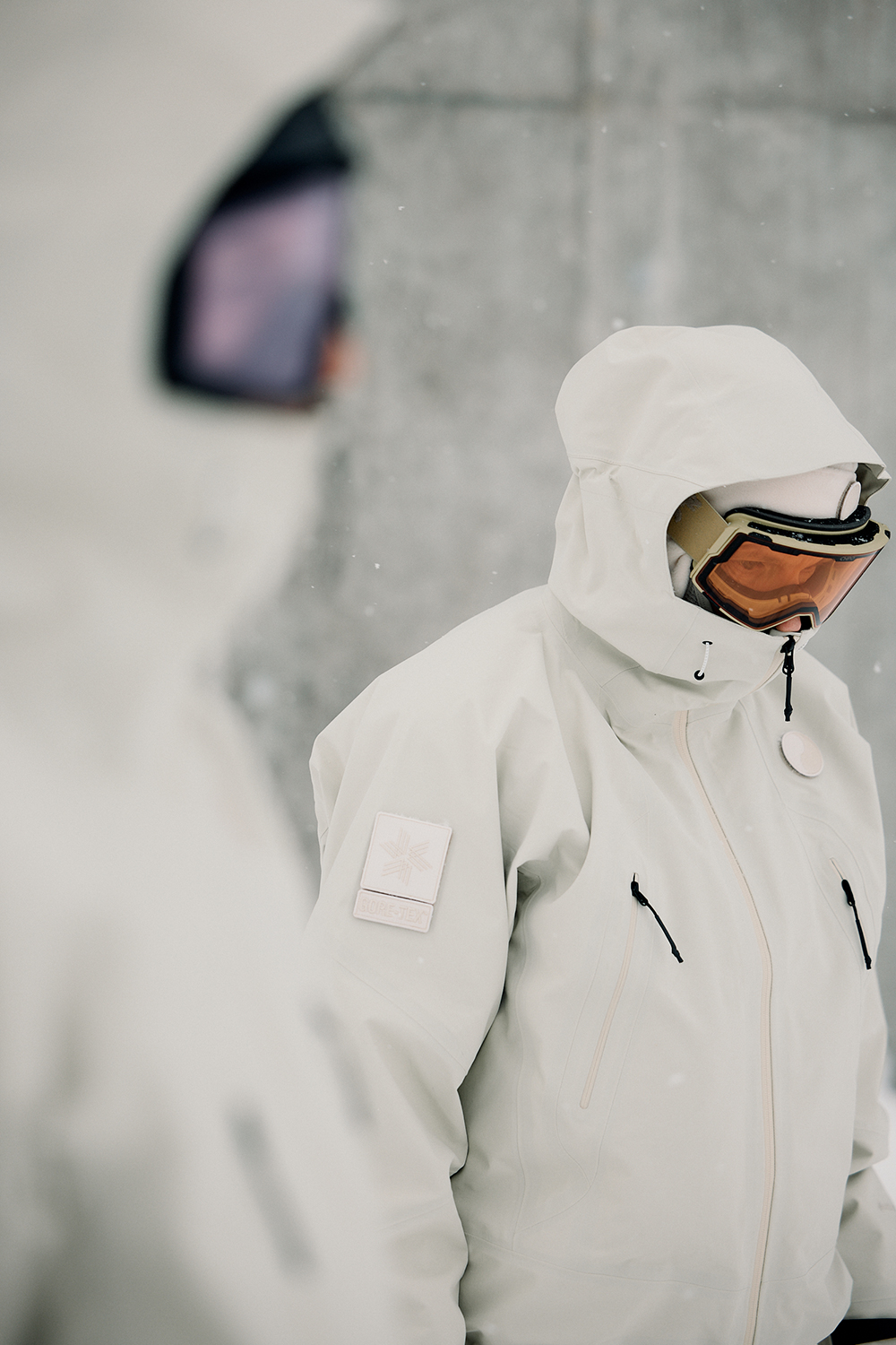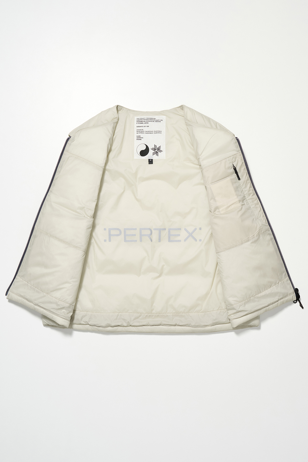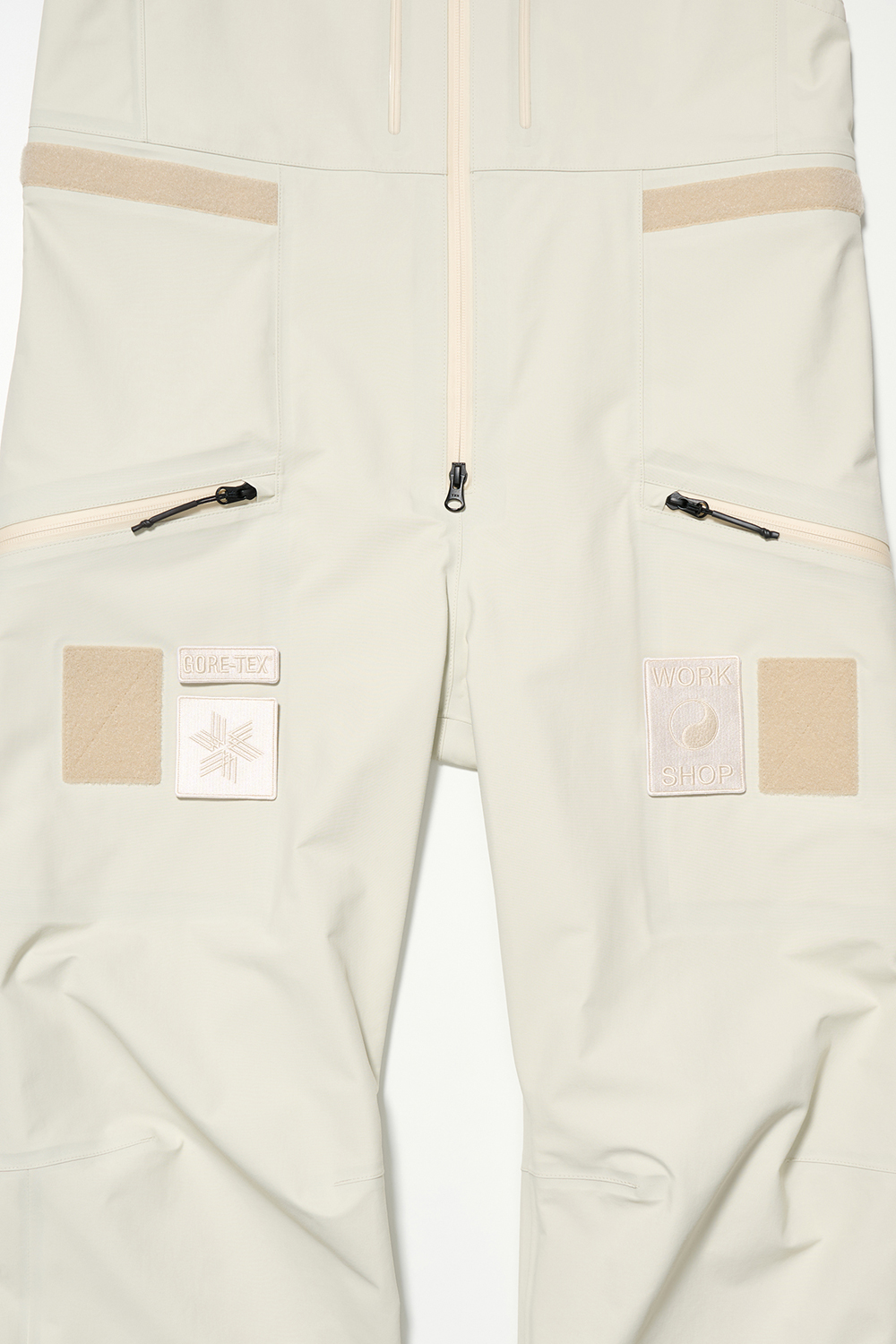 コレクションはGORE-TEX®の3レイヤー素材を用いたシェルジャケットとビブパンツ、PERTEX®を用いたインサレーション・ベスト、SOLOTEX®素材のワッフルトップ、POLARTEC®フリース素材のトラッパーハットで構成され、それらすべてを収納できるCORDURA®素材の大容量トラベルバッグもラインナップ。ブラックとボーンホワイトの2色で展開される各アイテムは、外側にミルスペックに着想を得た取り外し可能なパッチが配され、内側にはGORE-TEX®をメインサプライヤーとする各ファブリック・パートナーシップを象徴するリフレクティブ・プリントを施している。