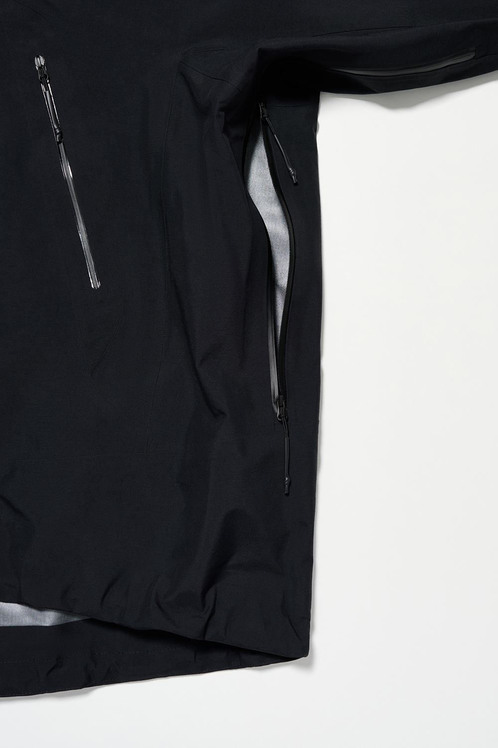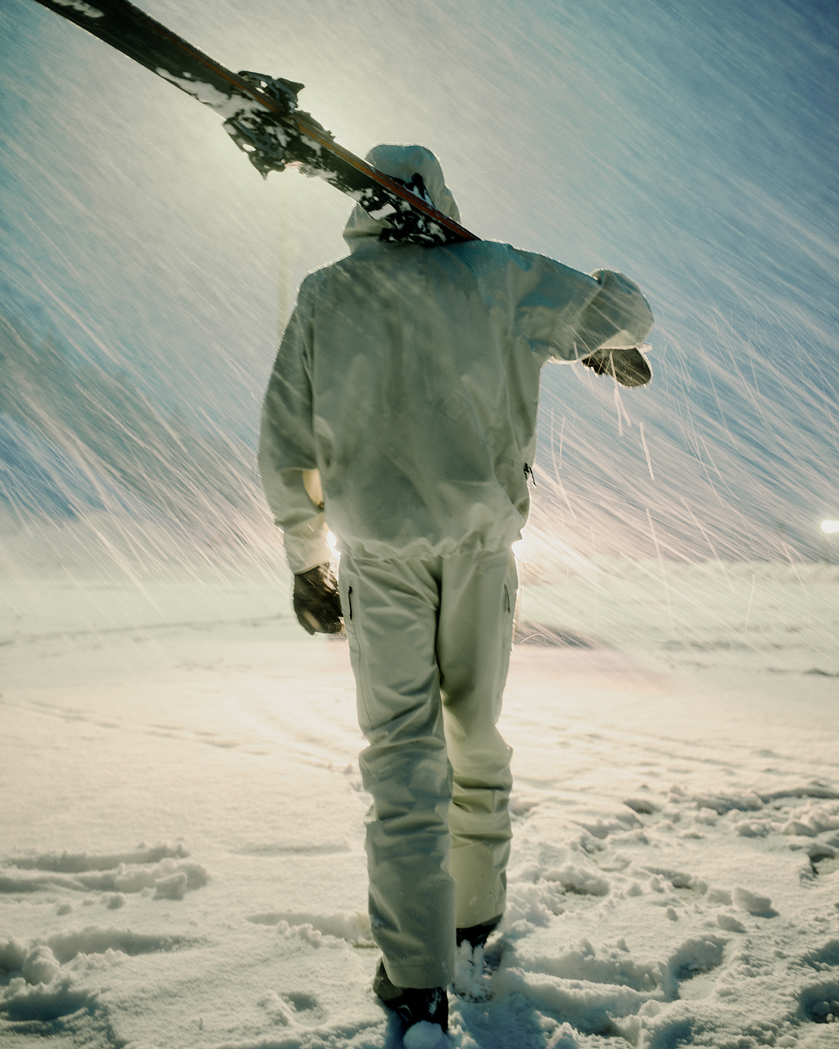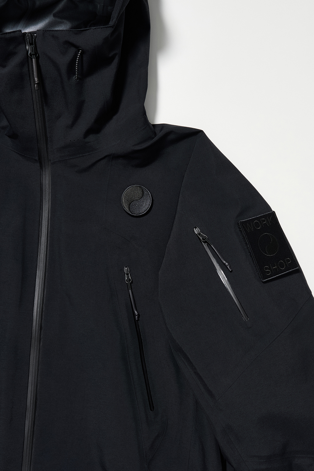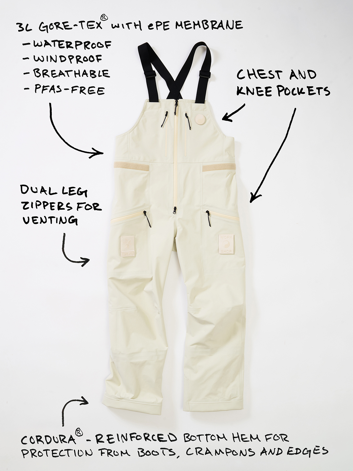 コレクションはGORE-TEX®の3レイヤー素材を用いたシェルジャケットとビブパンツ、PERTEX®を用いたインサレーション・ベスト、SOLOTEX®素材のワッフルトップ、POLARTEC®フリース素材のトラッパーハットで構成され、それらすべてを収納できるCORDURA®素材の大容量トラベルバッグもラインナップ。ブラックとボーンホワイトの2色で展開される各アイテムは、外側にミルスペックに着想を得た取り外し可能なパッチが配され、内側にはGORE-TEX®をメインサプライヤーとする各ファブリック・パートナーシップを象徴するリフレクティブ・プリントを施している。