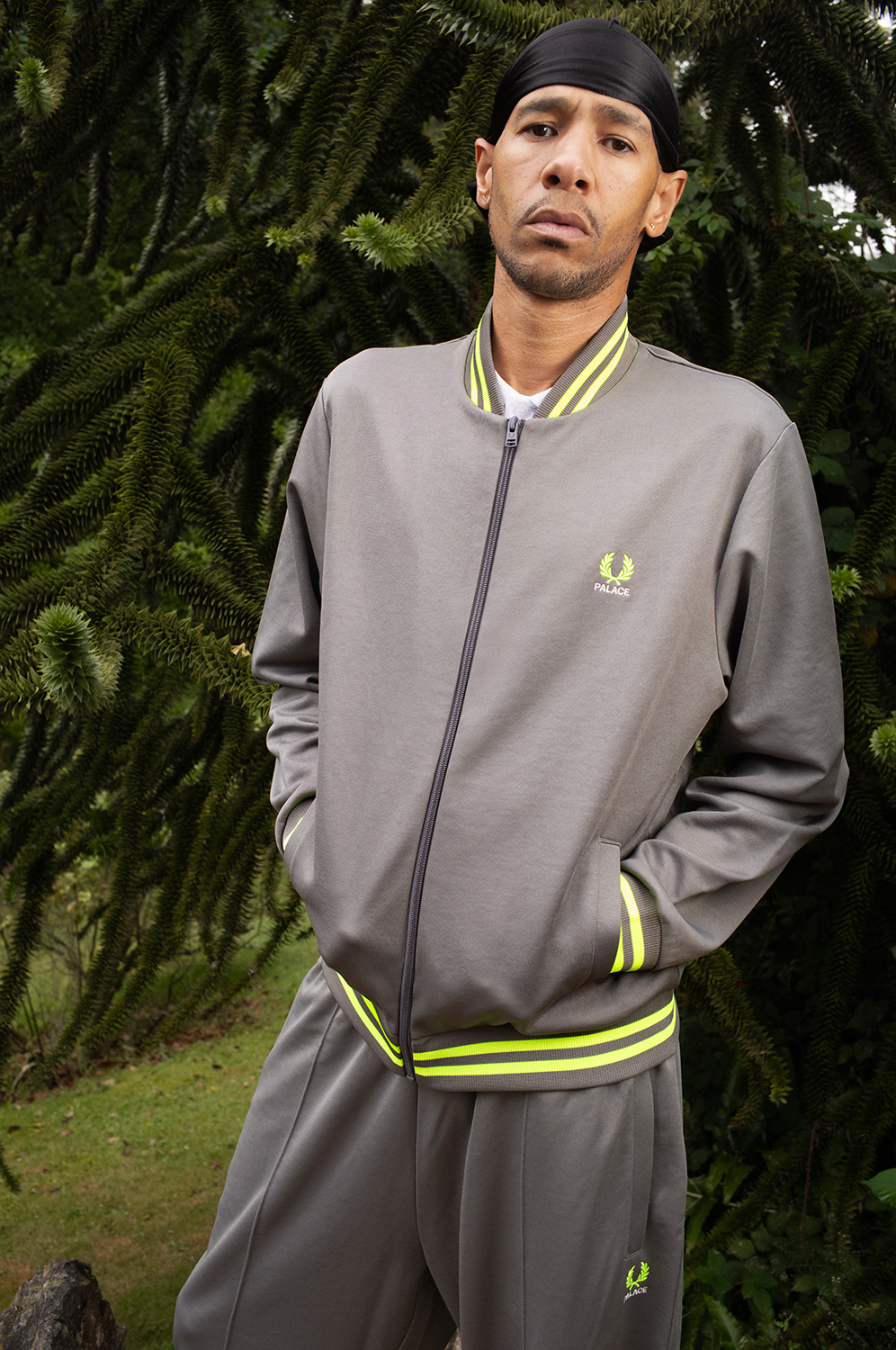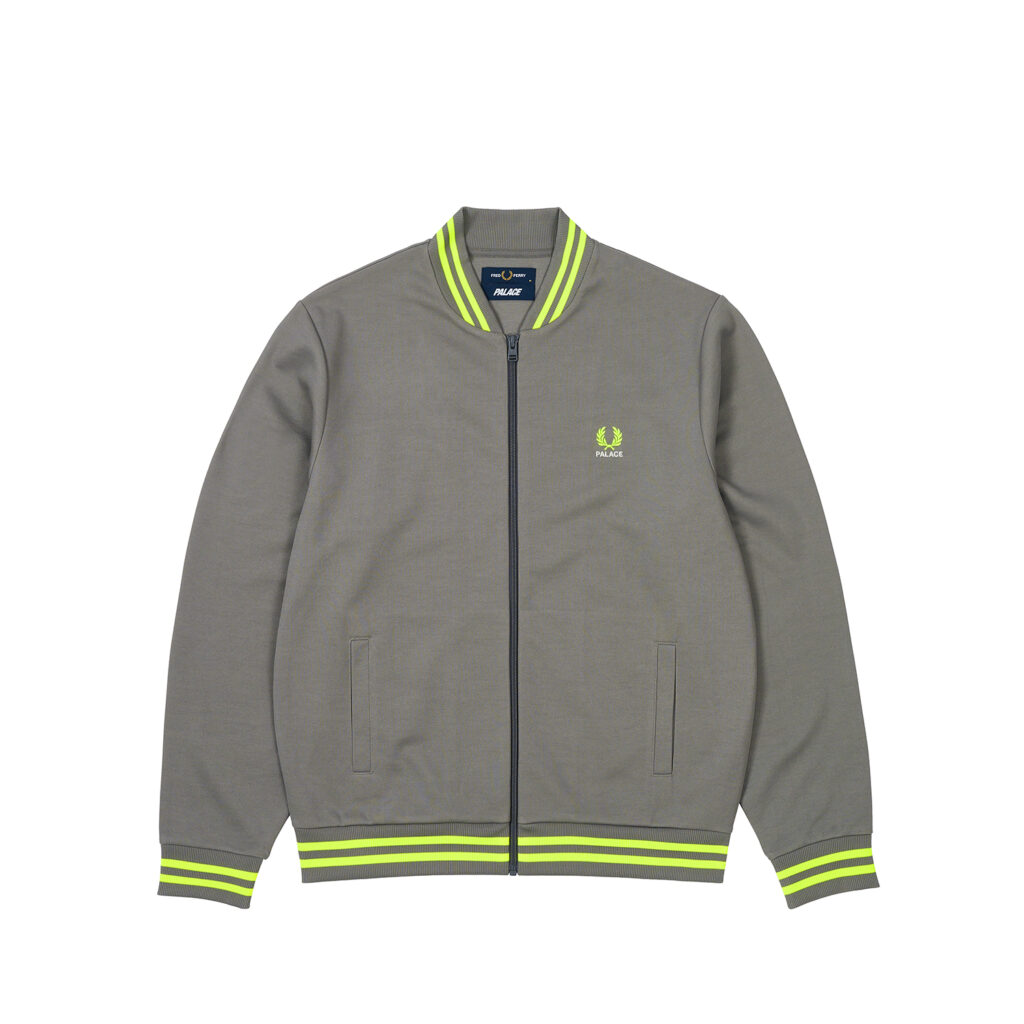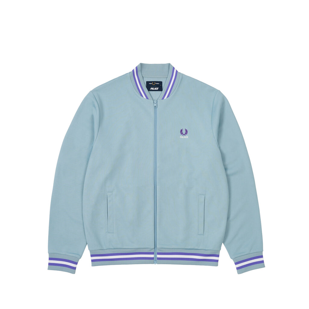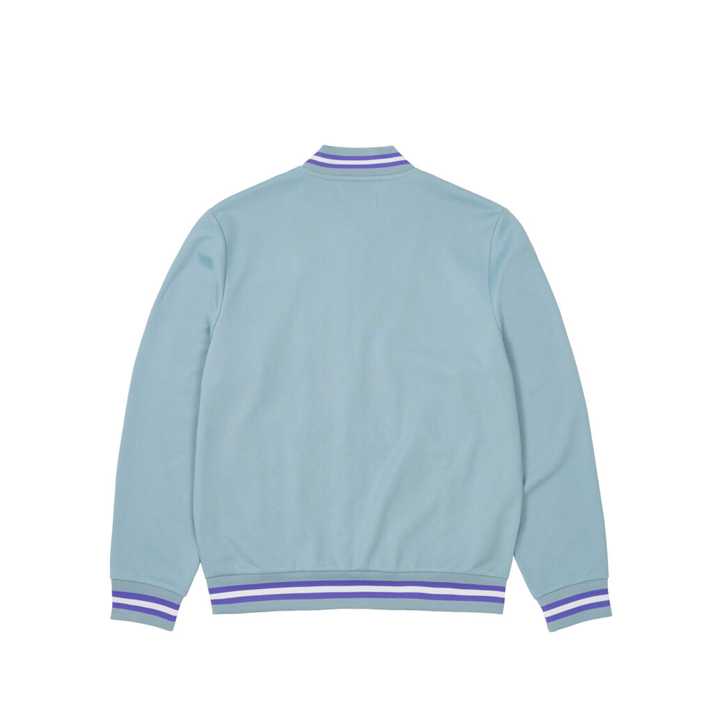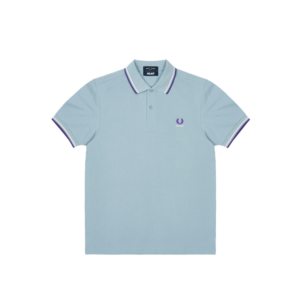 ブランドを象徴するツインティップが首元と袖口に施され、胸元にはローレルリースのマークとともにPALACE SKATEBOARDSのレタリングが刺繍されている。