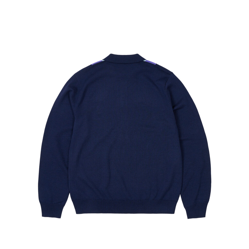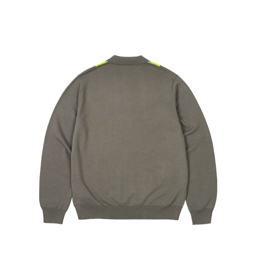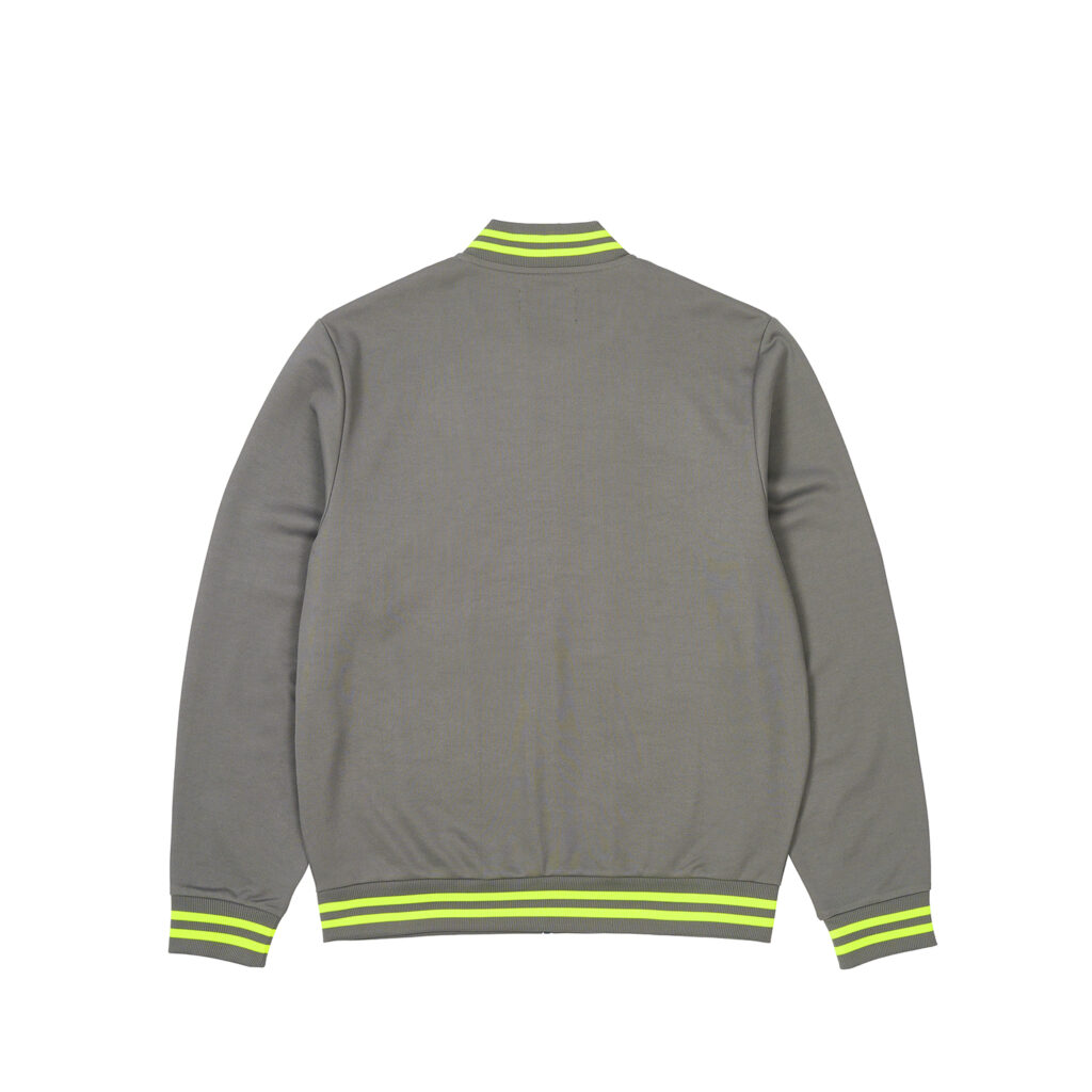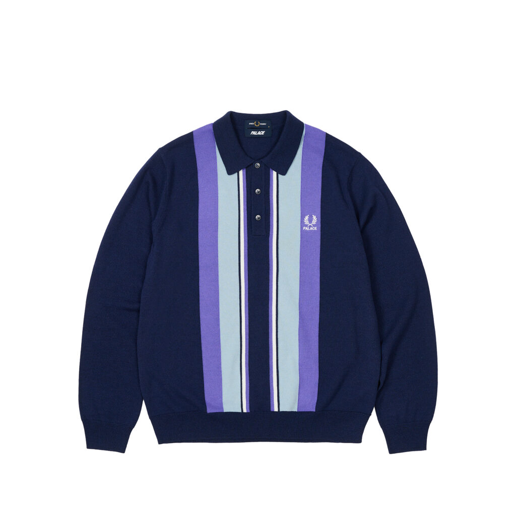 ブランドを象徴するツインティップが首元と袖口に施され、胸元にはローレルリースのマークとともにPALACE SKATEBOARDSのレタリングが刺繍されている。