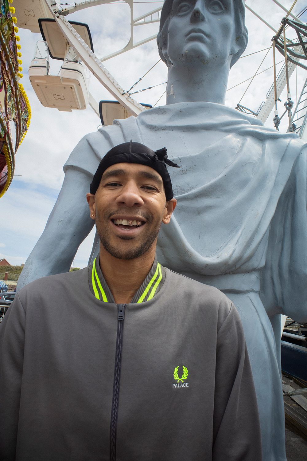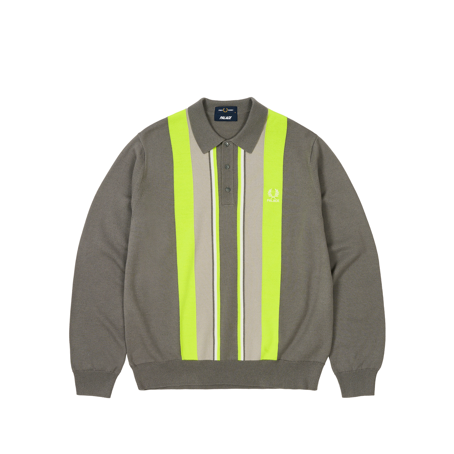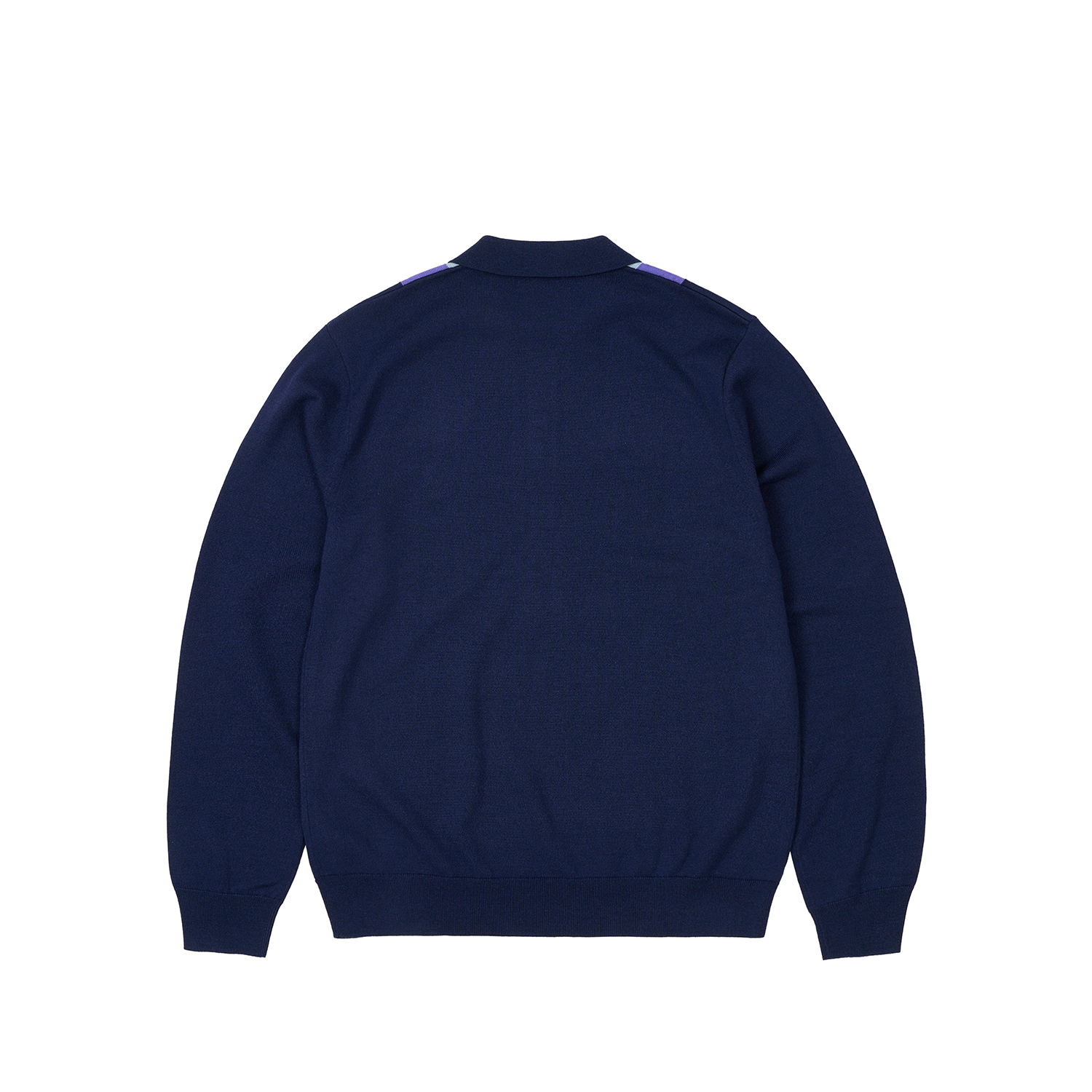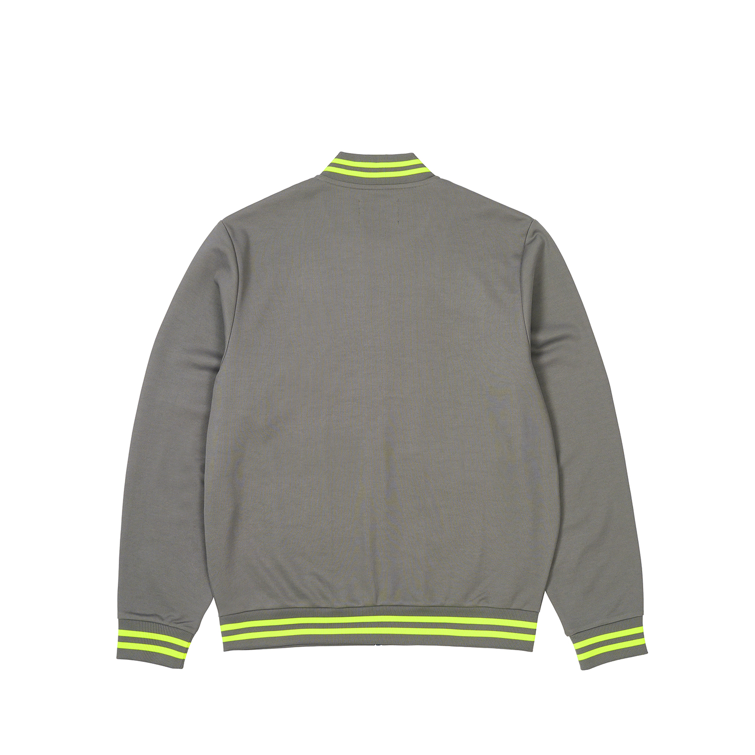ブランドを象徴するツインティップが首元と袖口に施され、胸元にはローレルリースのマークとともにPALACE SKATEBOARDSのレタリングが刺繍されている。