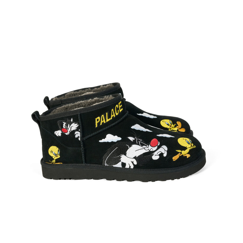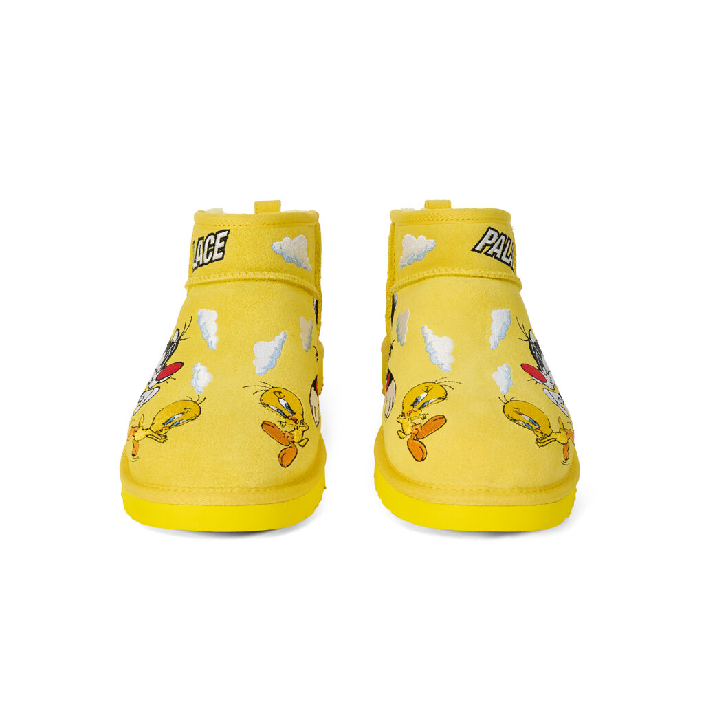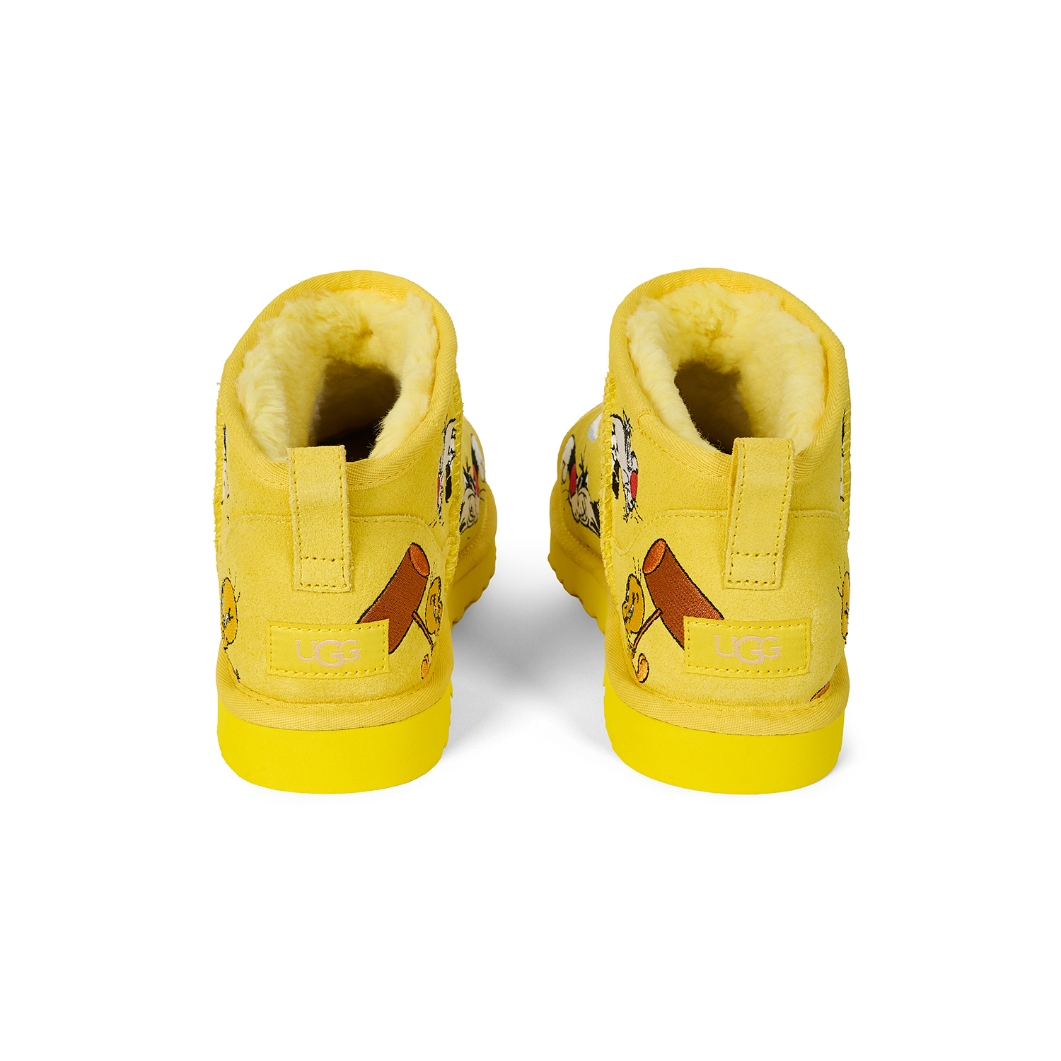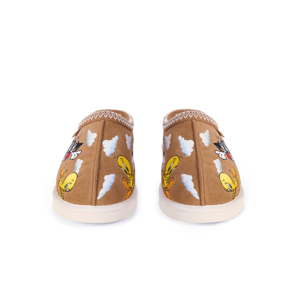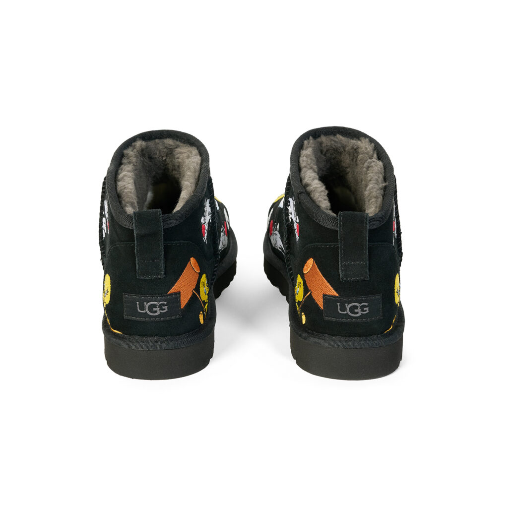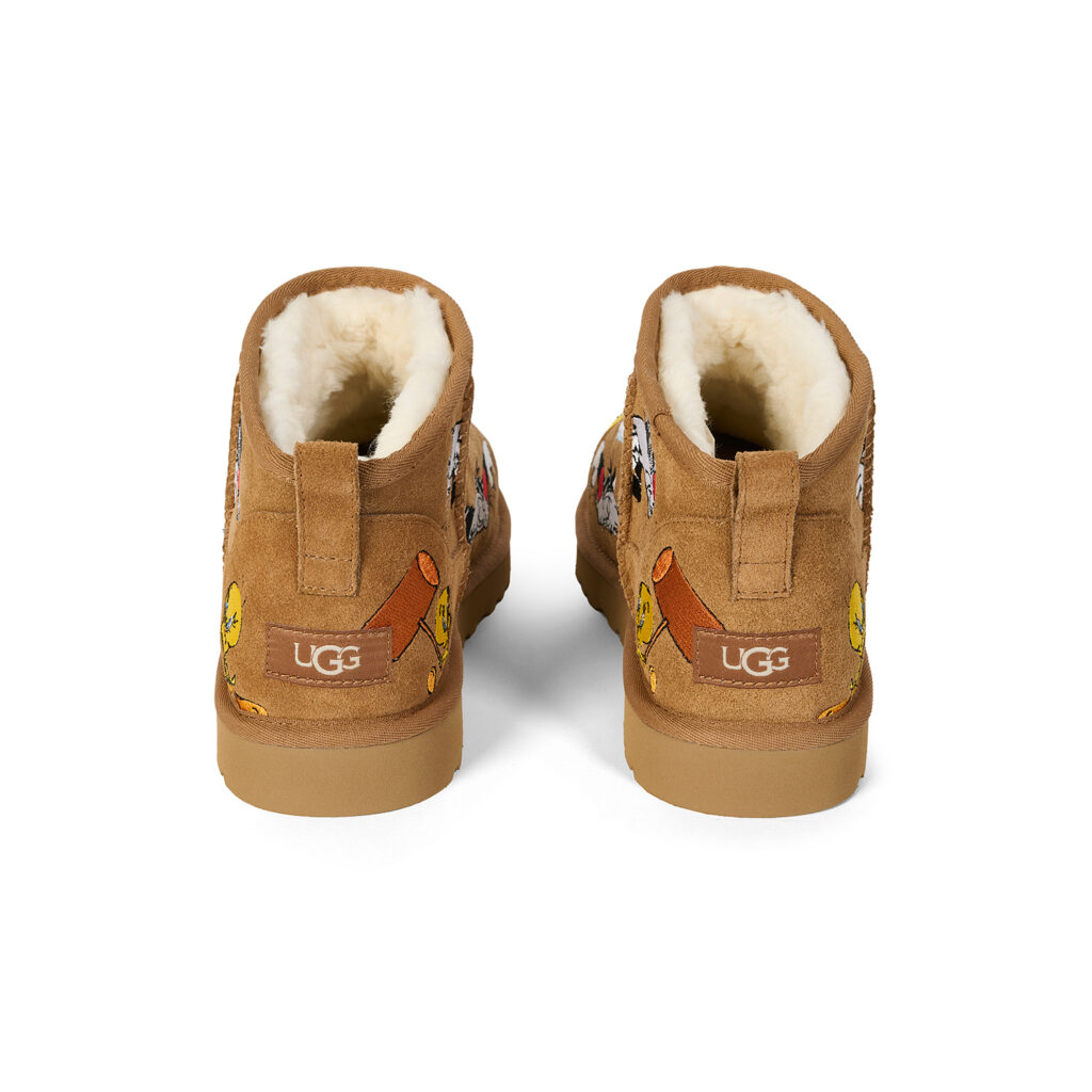 UGG®を代表する『Ultra Mini』と『Tasman』を、Looney Tunesの人気キャラクター、トゥイーティーとシルベスターのマルチレイヤー刺繍で再解釈した。