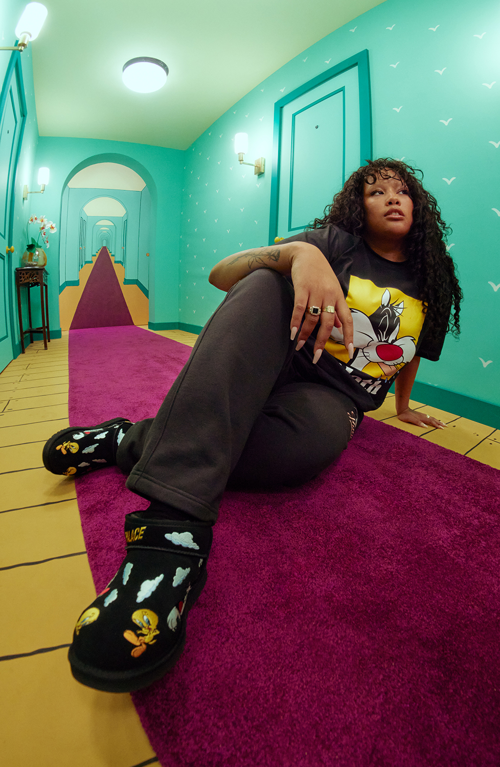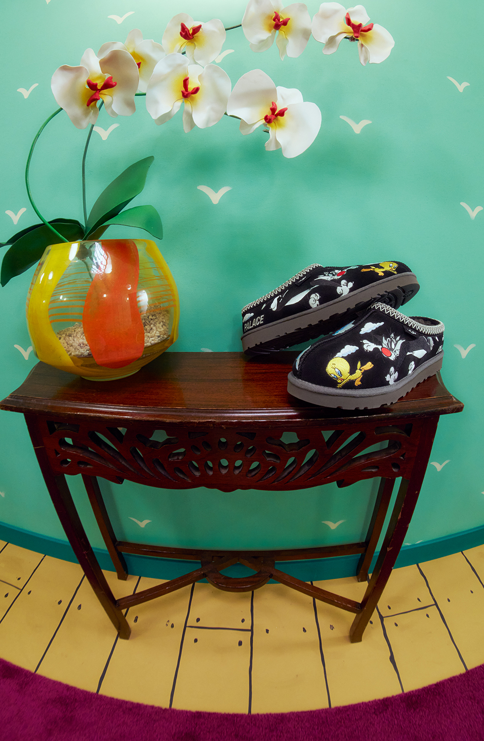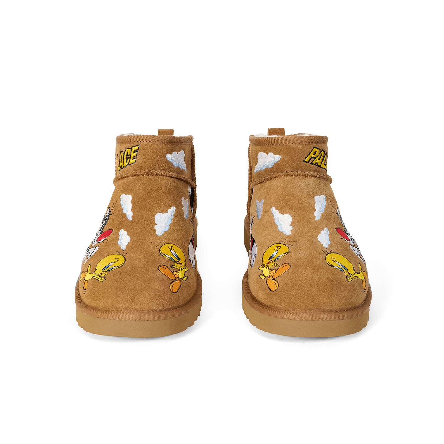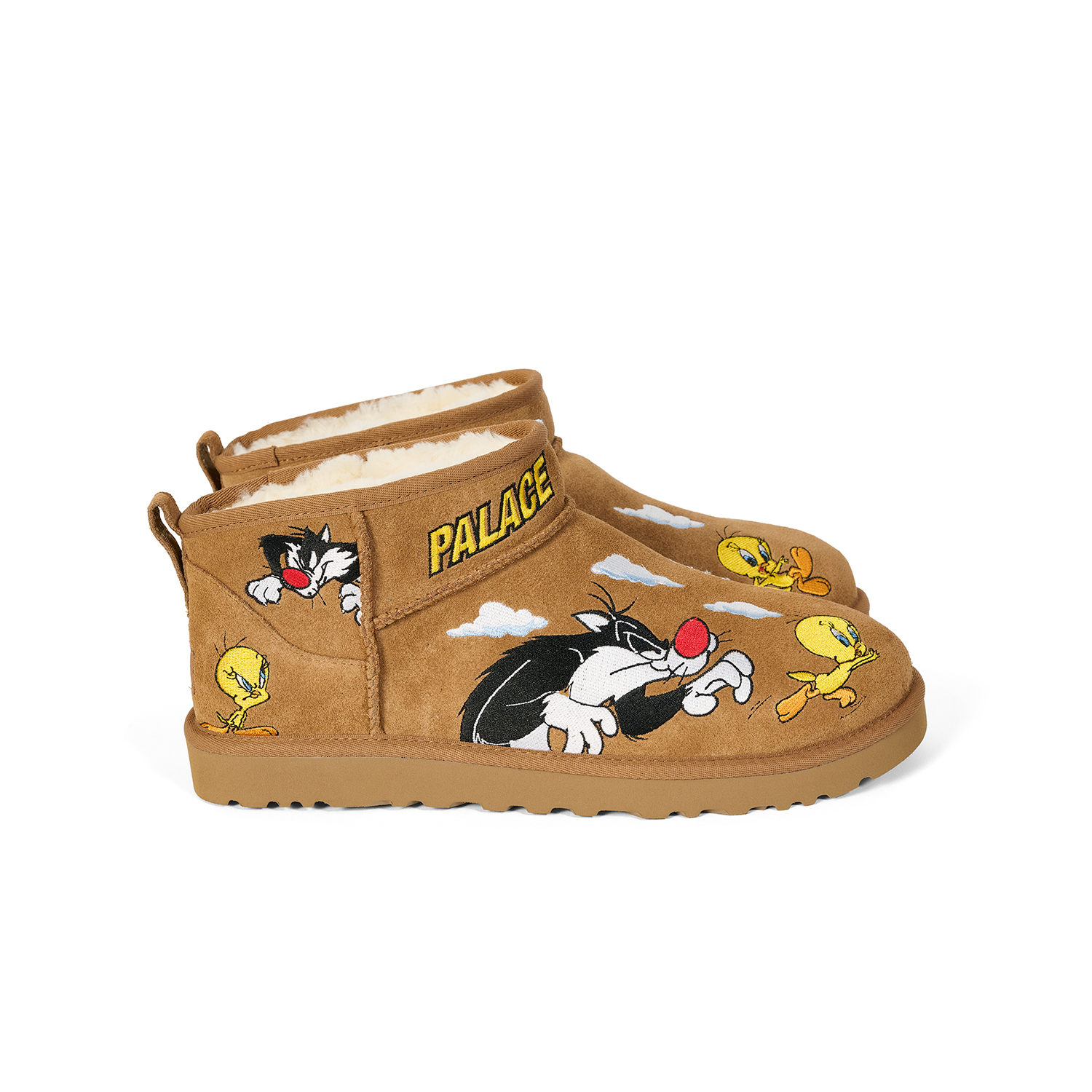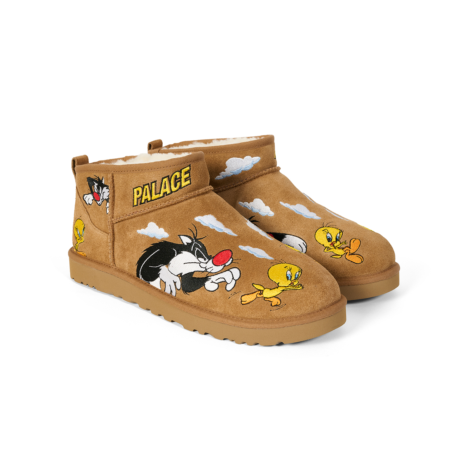 UGG®を代表する『Ultra Mini』と『Tasman』を、Looney Tunesの人気キャラクター、トゥイーティーとシルベスターのマルチレイヤー刺繍で再解釈した。