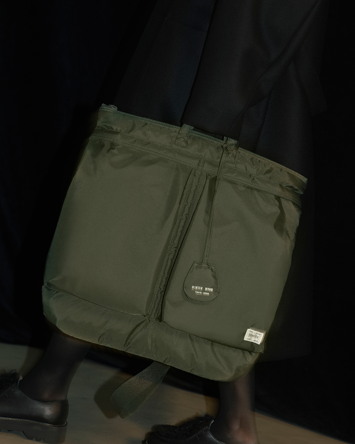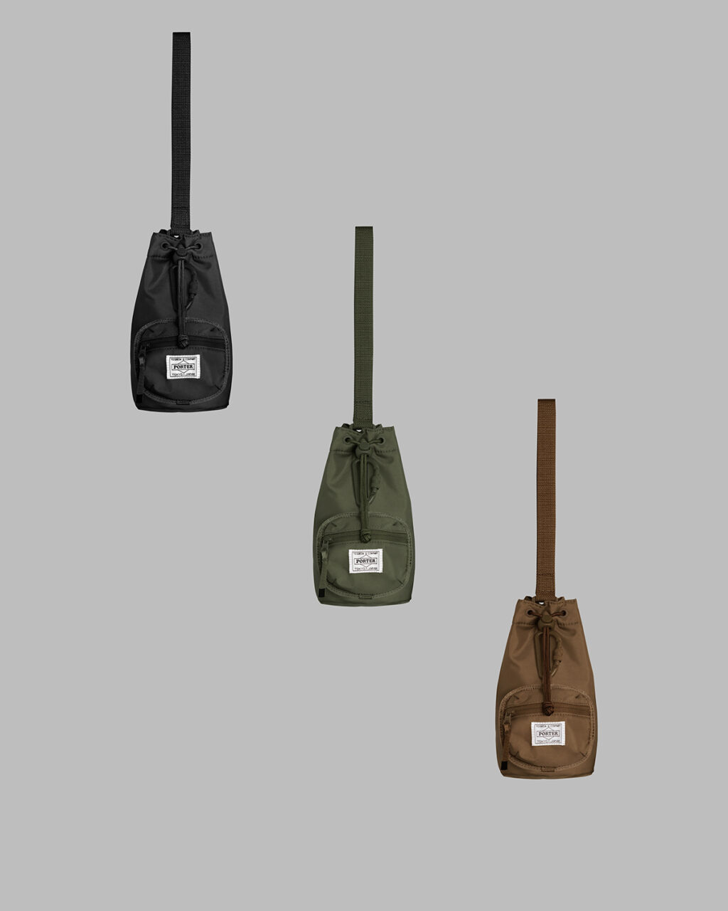 いずれも表地にはtefox(テフロン加工を施した撥水性に優れたナイロンオックス)、裏地にはオニオン柄のキルティングを使用しており、各商品にはキーチャーム、PORTER × HYKEのオリジナル収納袋が付属する。