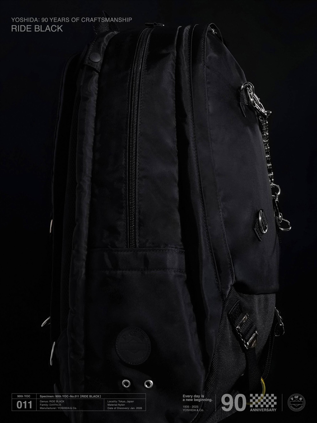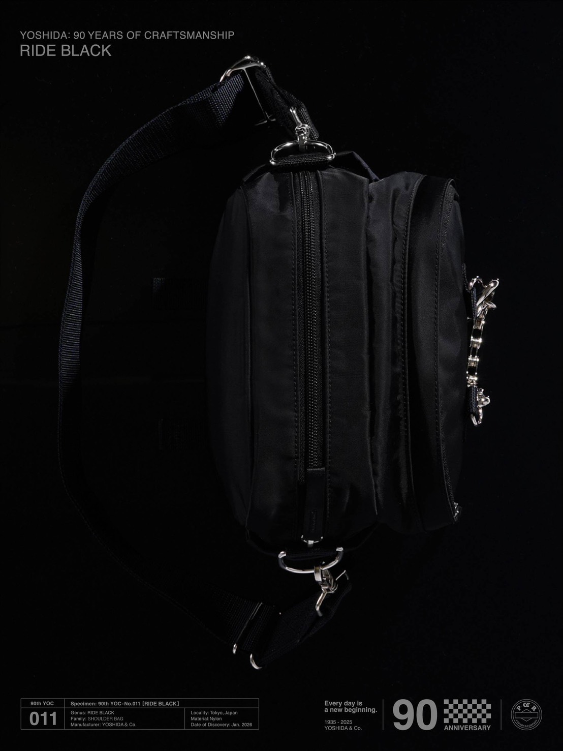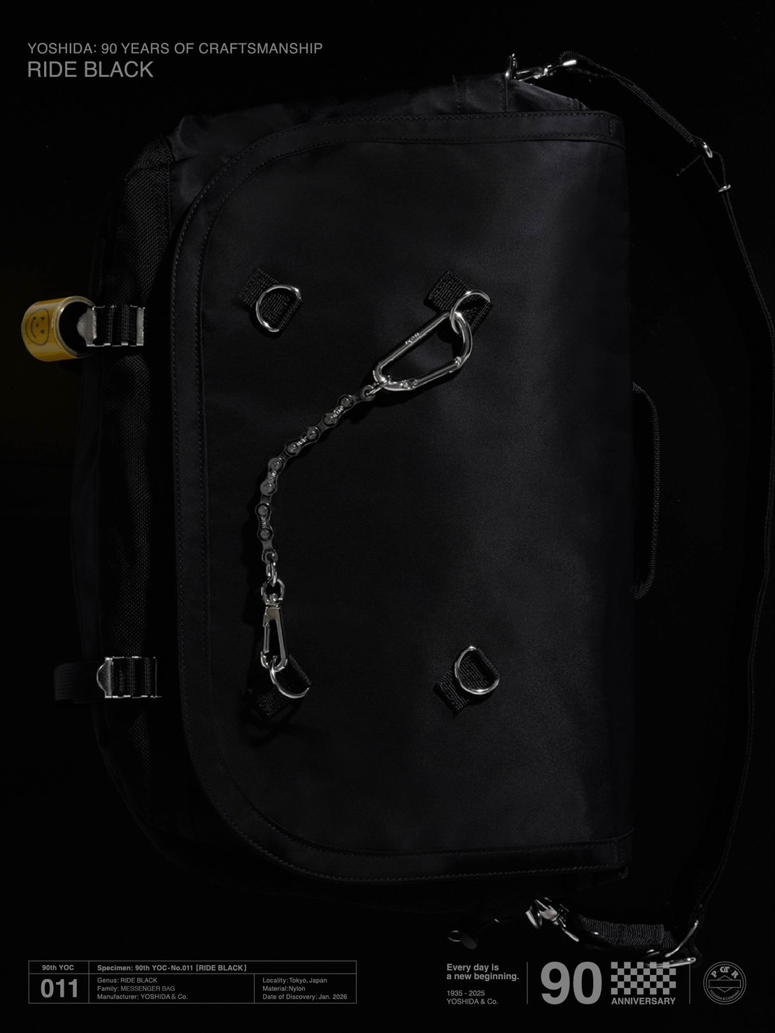 多様なライフスタイルに合わせ、乗り物での移動、歩くといった移動時に荷物を安全に持ち運べるよう、使いやすさを追求した『RIDE』だが、今回は𠮷田カバンの創業90周年を記念し、ブラックカラーが完全数量限定で登場。