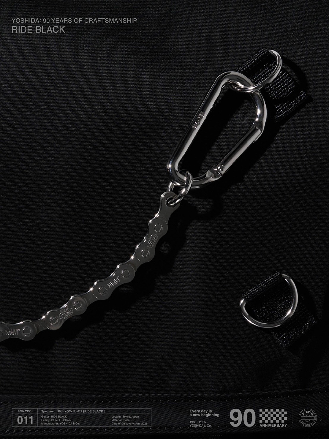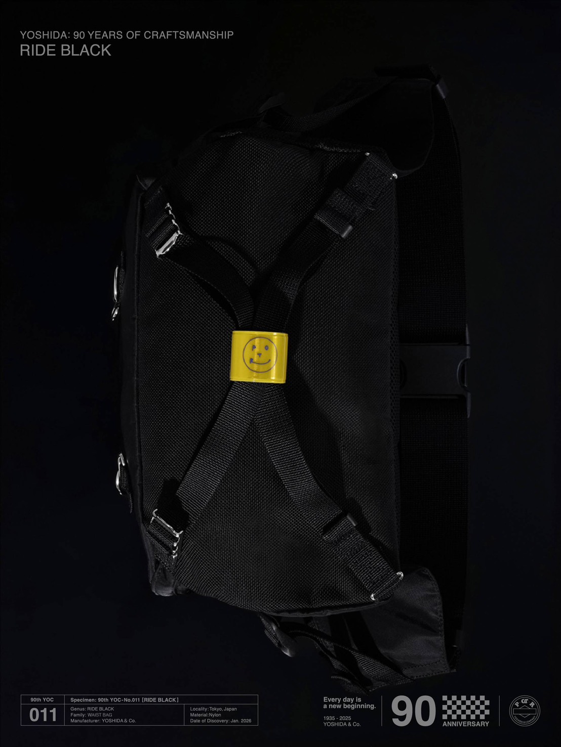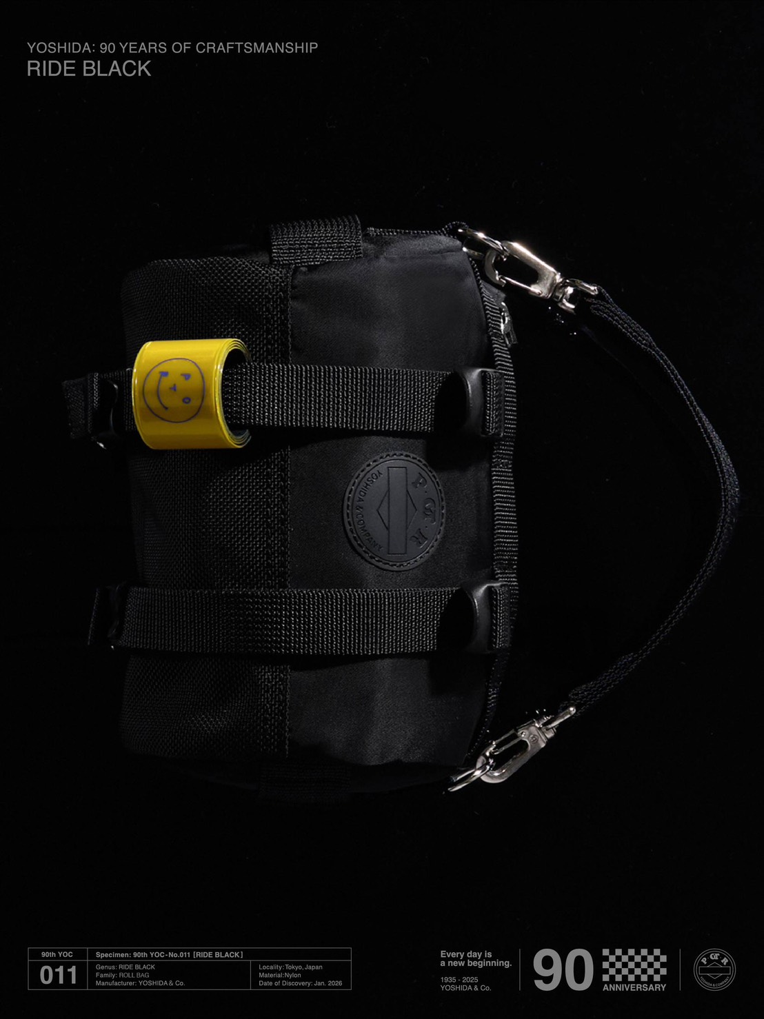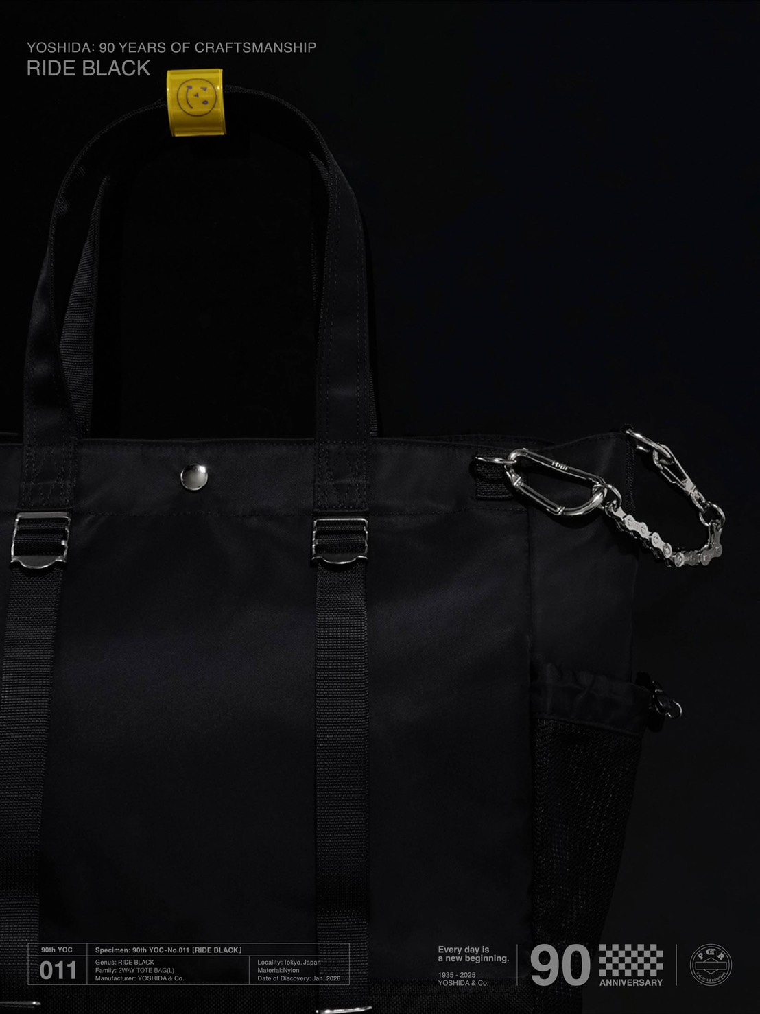 多様なライフスタイルに合わせ、乗り物での移動、歩くといった移動時に荷物を安全に持ち運べるよう、使いやすさを追求した『RIDE』だが、今回は𠮷田カバンの創業90周年を記念し、ブラックカラーが完全数量限定で登場。