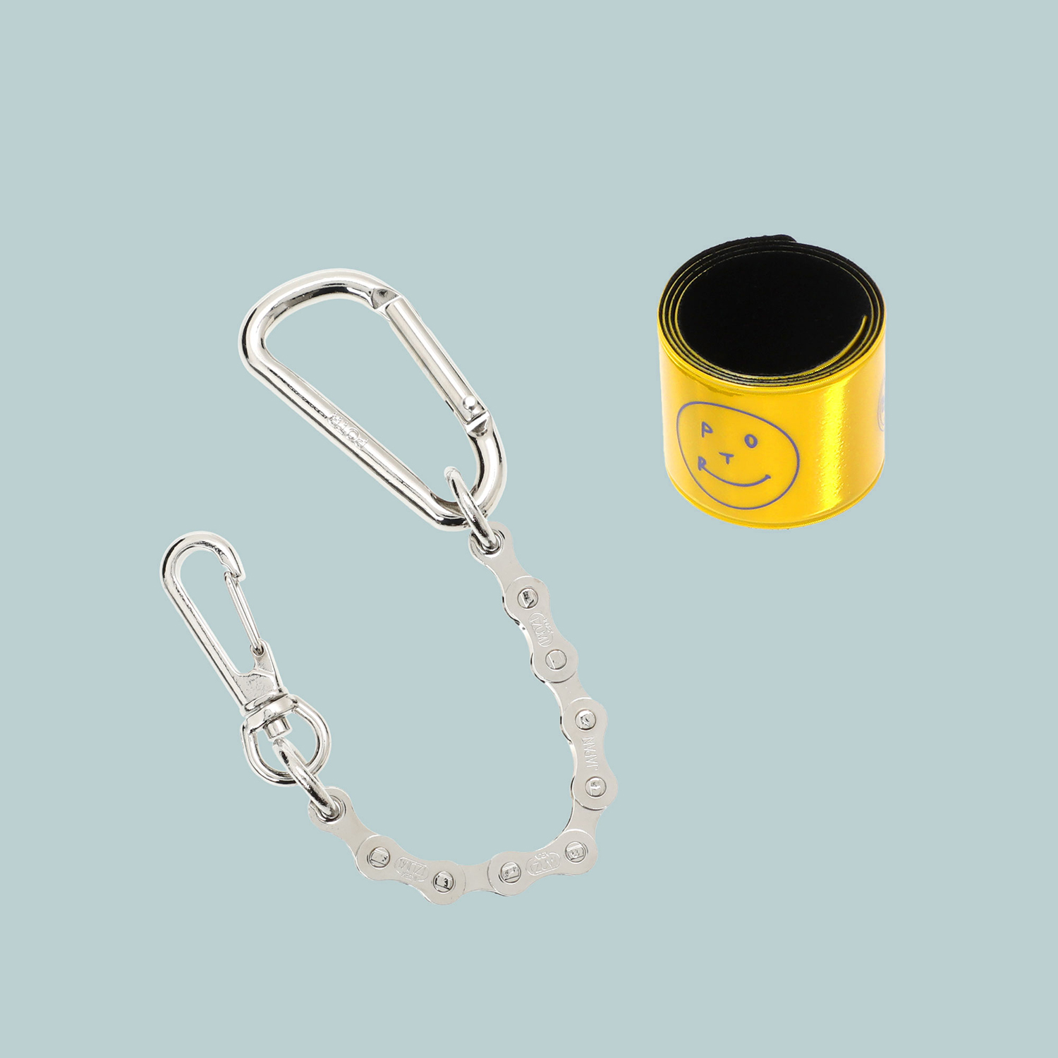 澄んだブラックの生地にシルバーカラーのパーツを組み合わせた、スペシャルな雰囲気のバッグたちは、90周年を記念した限定仕様のタグもポイントに。さらには、バッグと同じ90周年限定タグを縫い付けたオリジナル巾着も付属する。