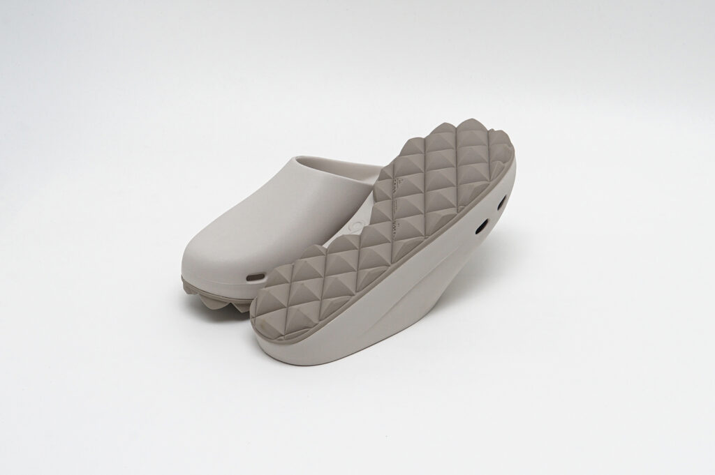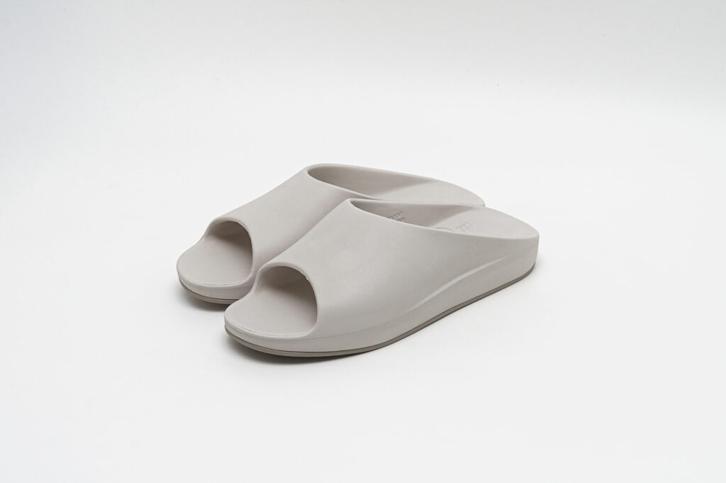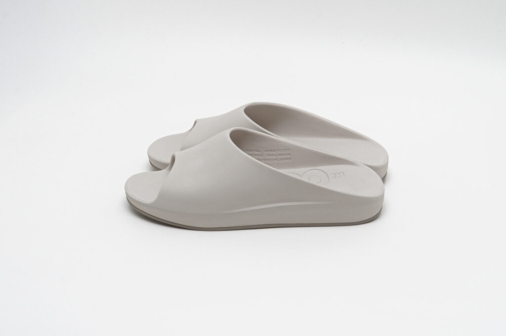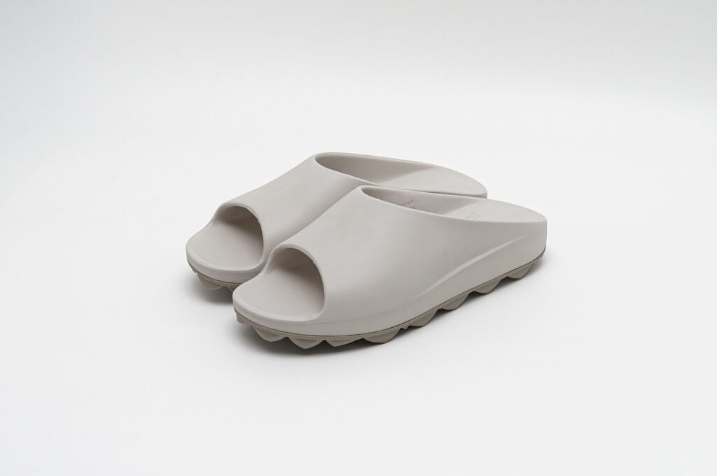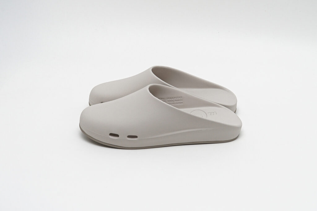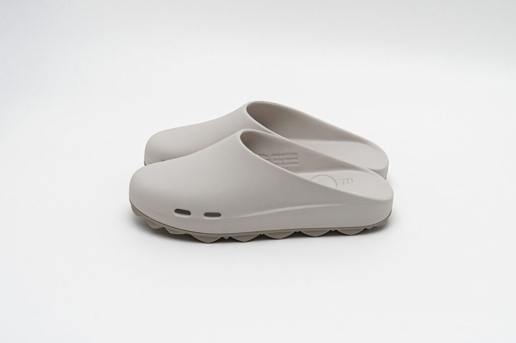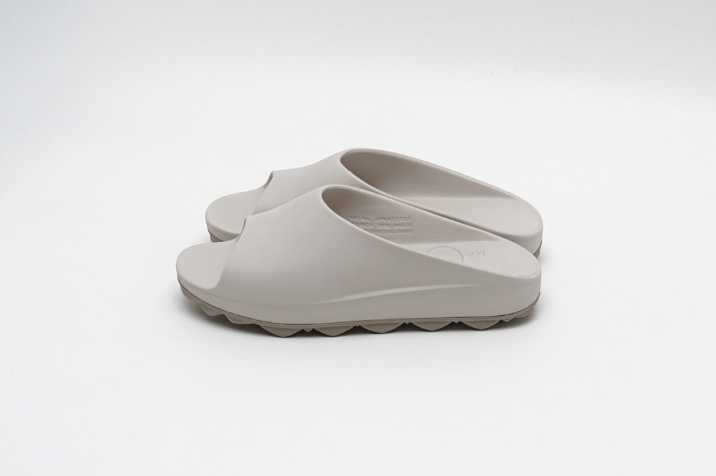 どちらもグリップ力と排水性を兼ね備えたドット仕様のフラットソールと、スタッズ内部に空気圧を内包することで反発とクッション性を生み出すAIR STUDDED SOLE®の2種から選択可能が可能で、新色としてアイボリーがラインナップされている。