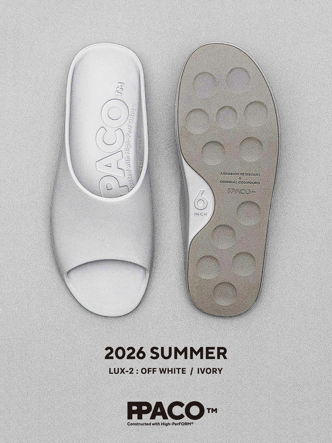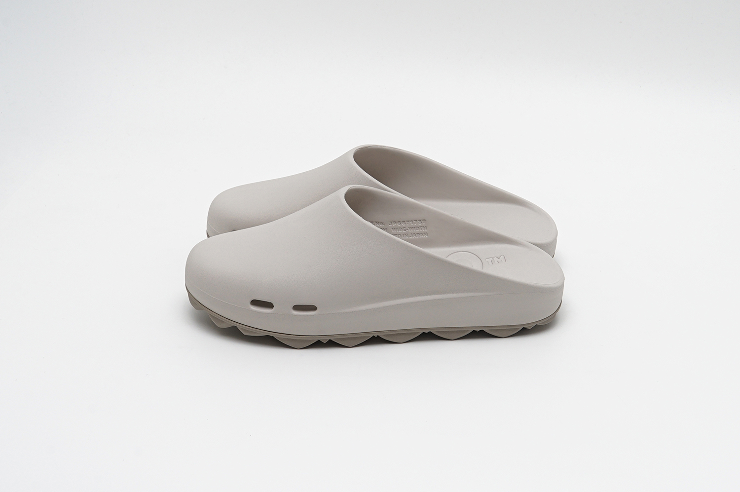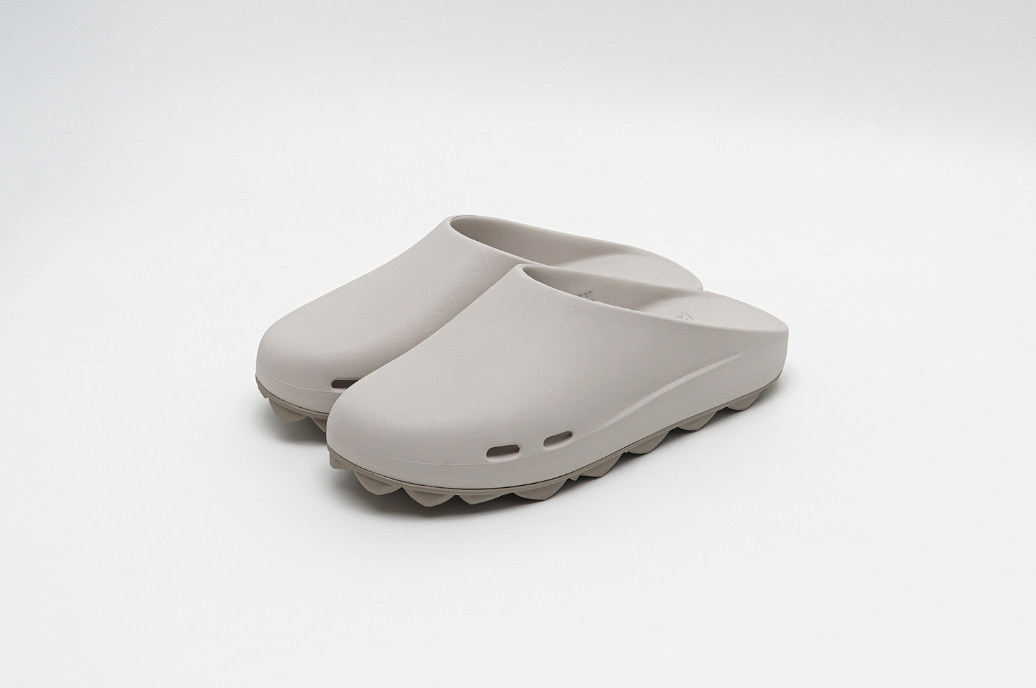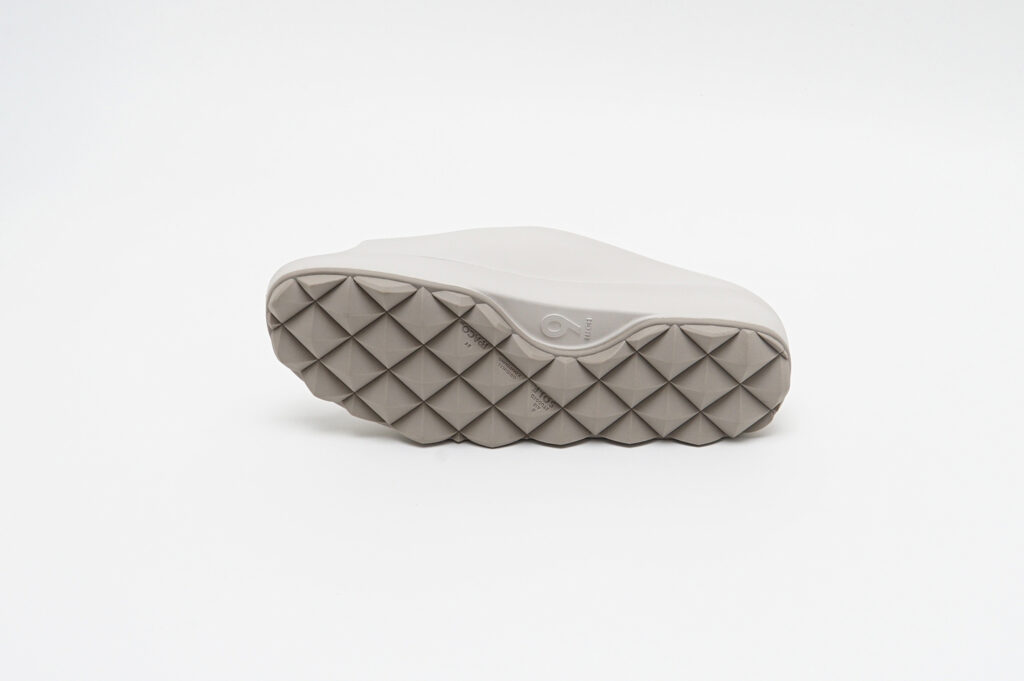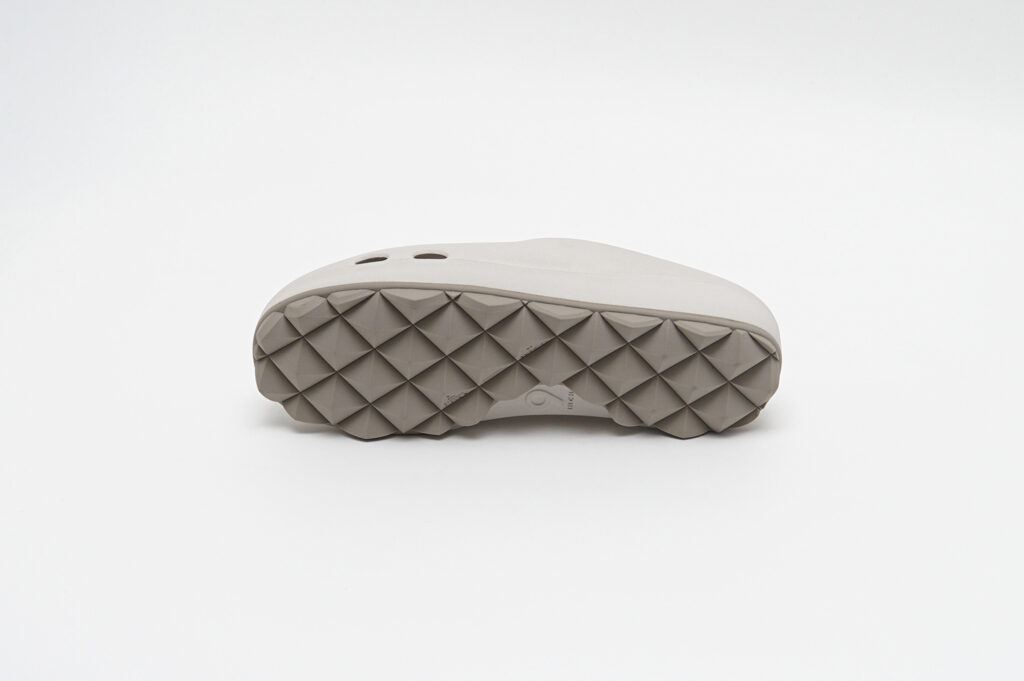 どちらもグリップ力と排水性を兼ね備えたドット仕様のフラットソールと、スタッズ内部に空気圧を内包することで反発とクッション性を生み出すAIR STUDDED SOLE®の2種から選択可能が可能で、新色としてアイボリーがラインナップされている。