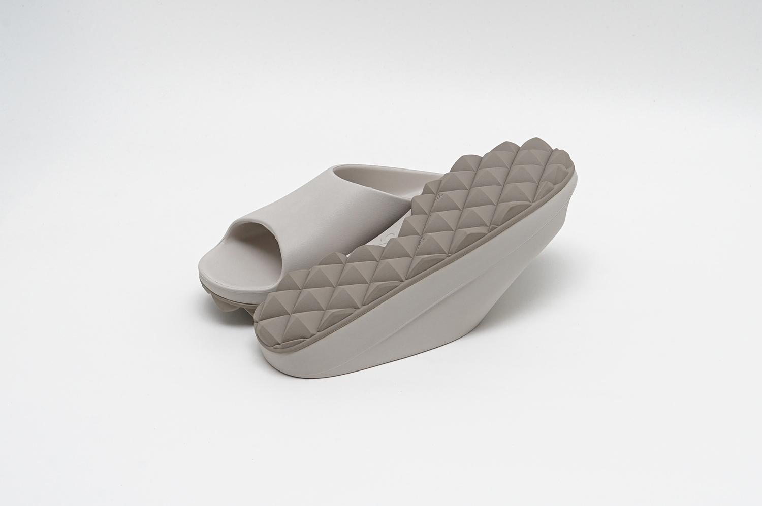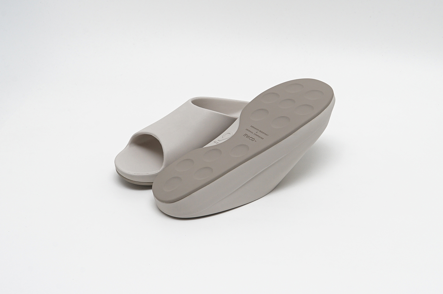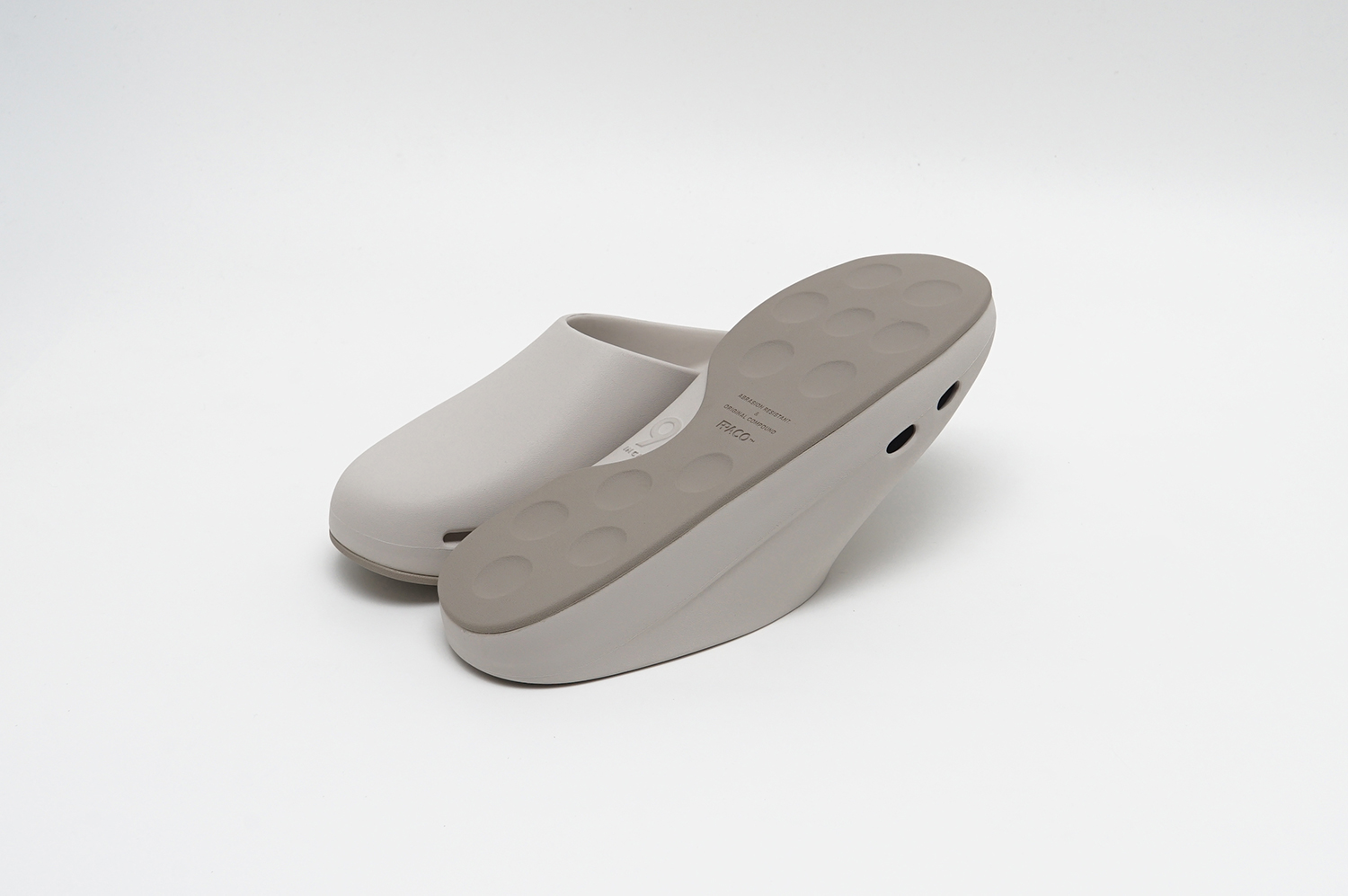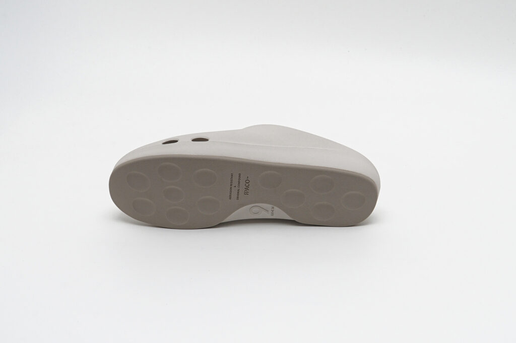 どちらもグリップ力と排水性を兼ね備えたドット仕様のフラットソールと、スタッズ内部に空気圧を内包することで反発とクッション性を生み出すAIR STUDDED SOLE®の2種から選択可能が可能で、新色としてアイボリーがラインナップされている。