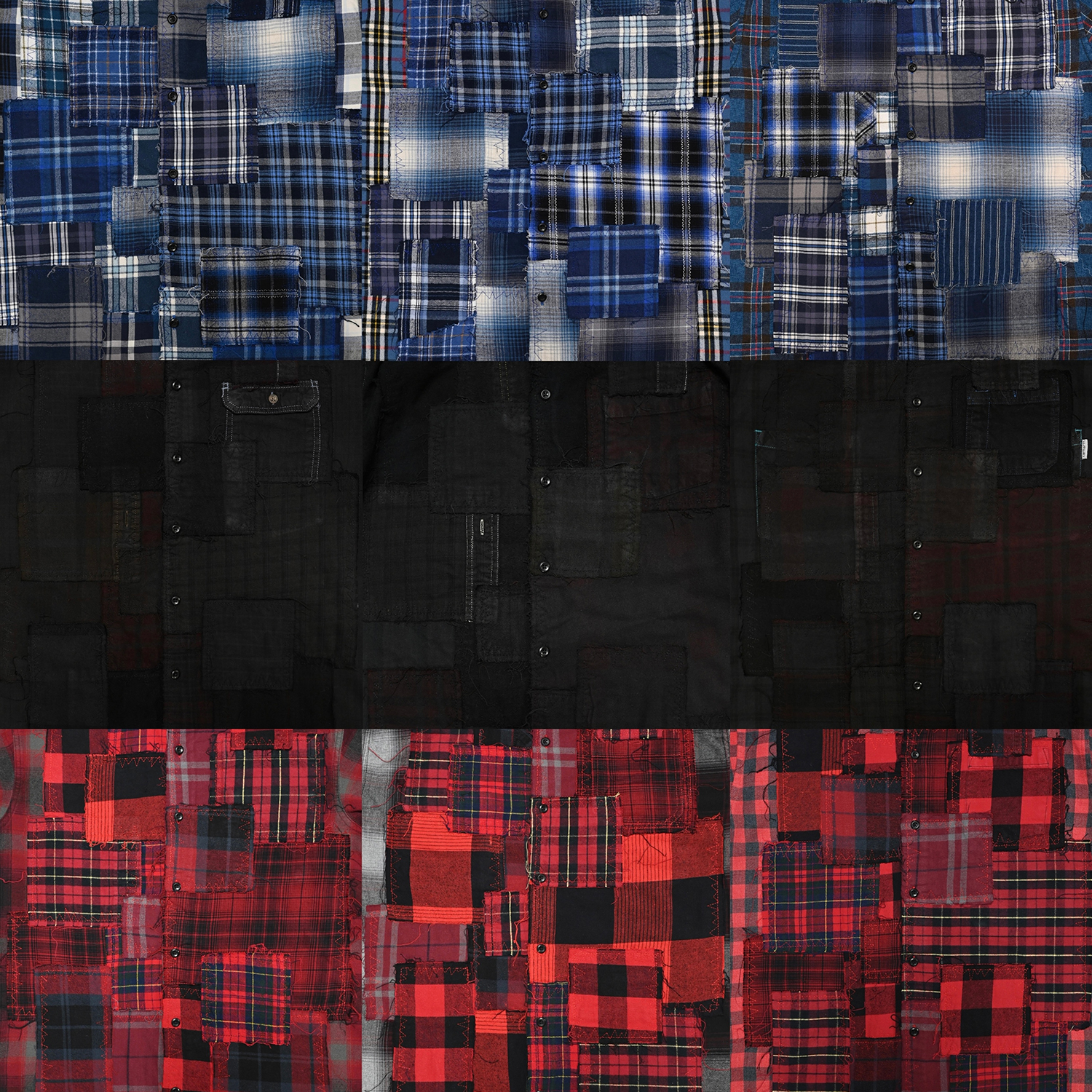 16種類のネル柄を組み合わせたパネルパッチワークが特徴的なネルシャツは、すべてが一点もの。ギザステッチを施すことで立体感を持たせ、豊かな表情に仕上げた。