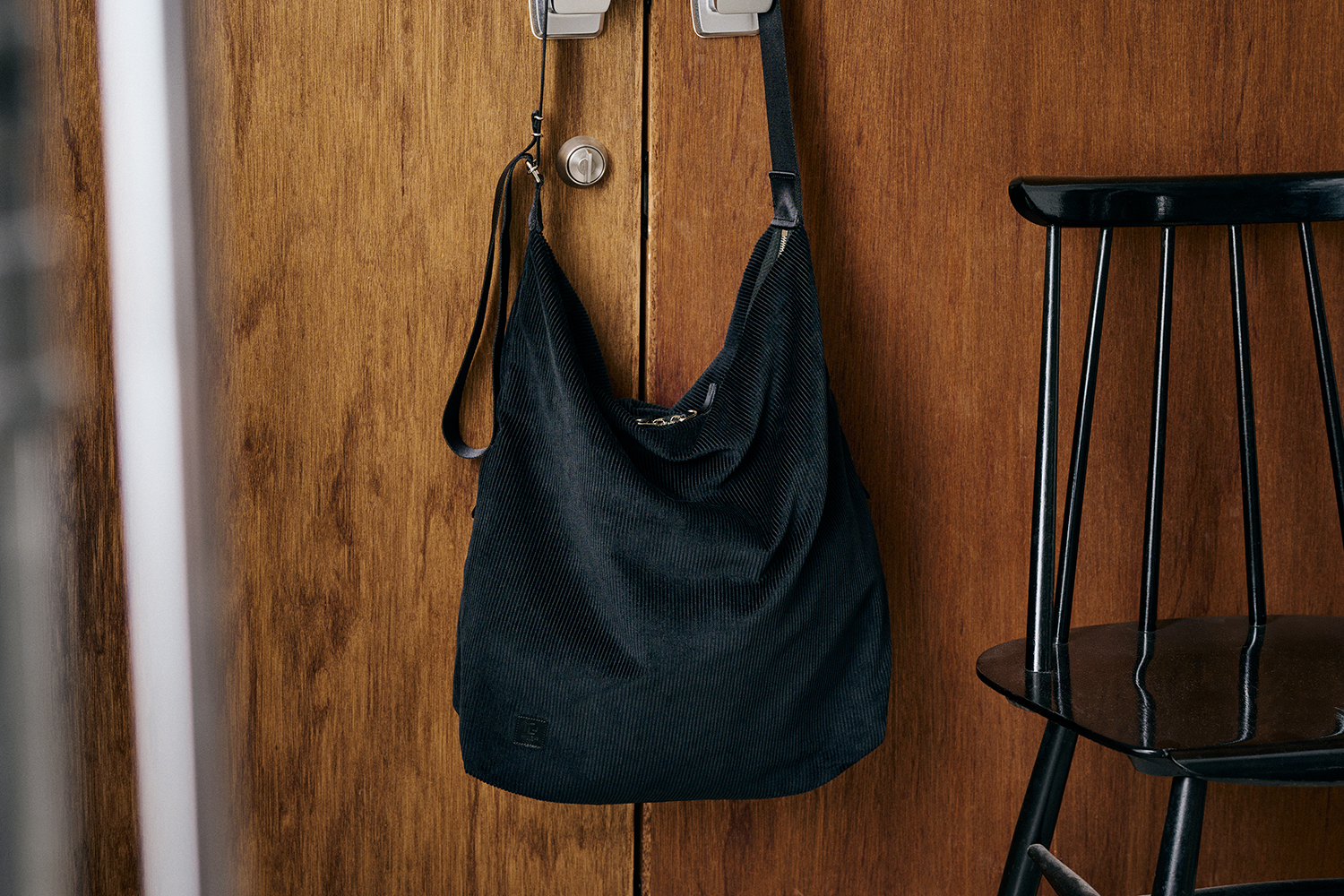 オーガニックコットンで織り上げた生地は、光の角度によって豊かな表情を見せ、持ち物を収めることで自然に生まれる柔らかなシルエットも印象的だ。