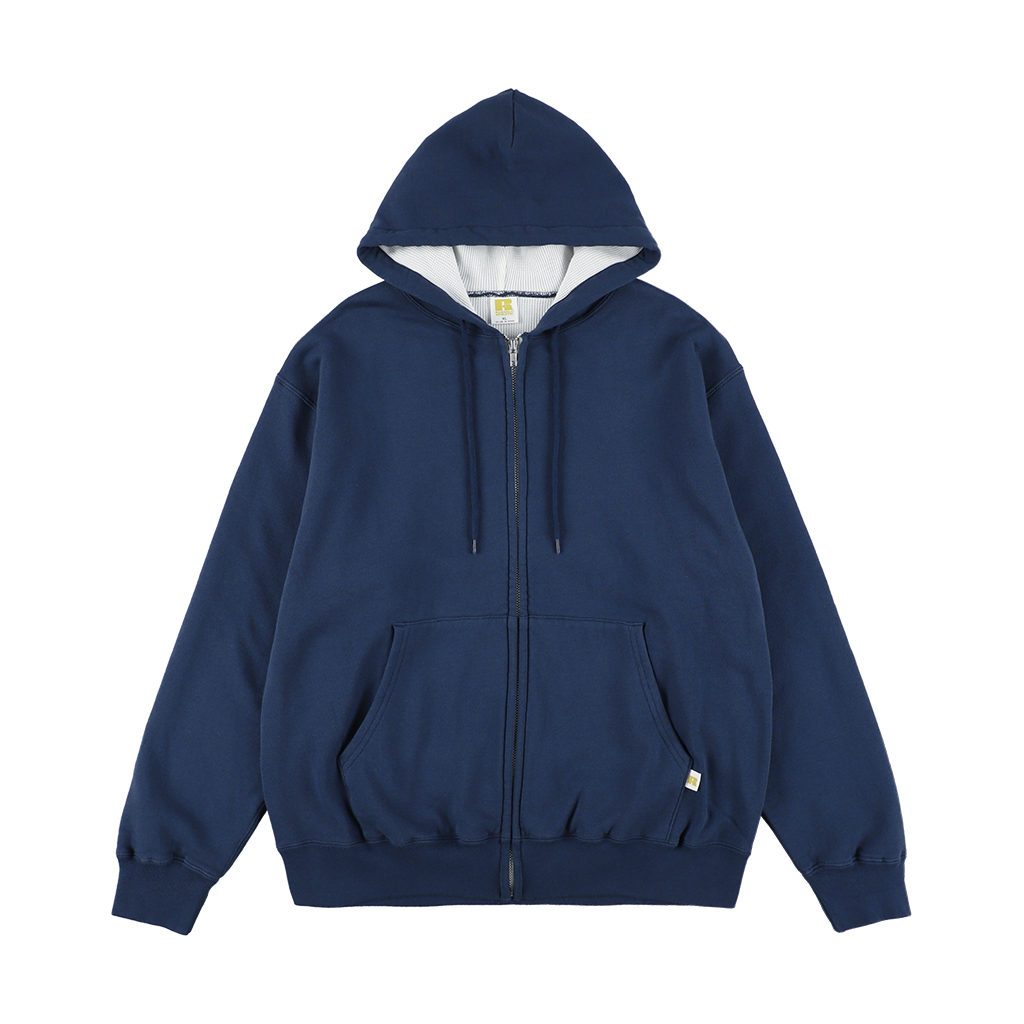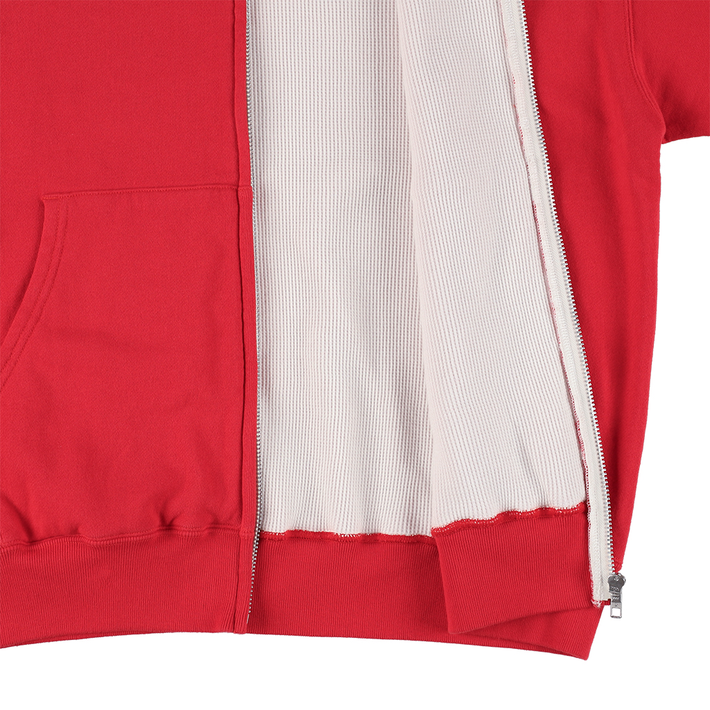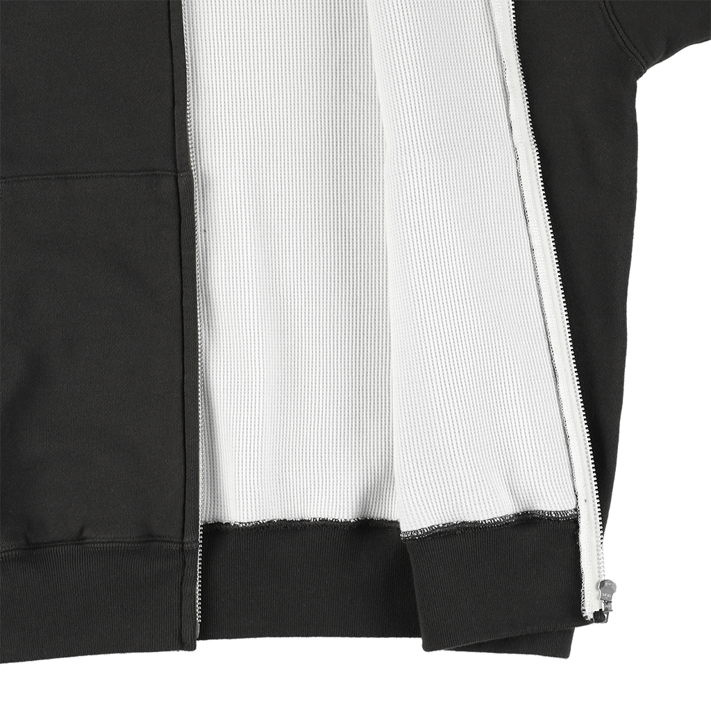 今季は、ヴィンテージをイメージしたダブルフェイス仕立てのジップアップフーディーを製作。