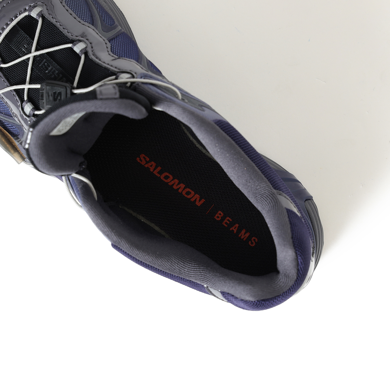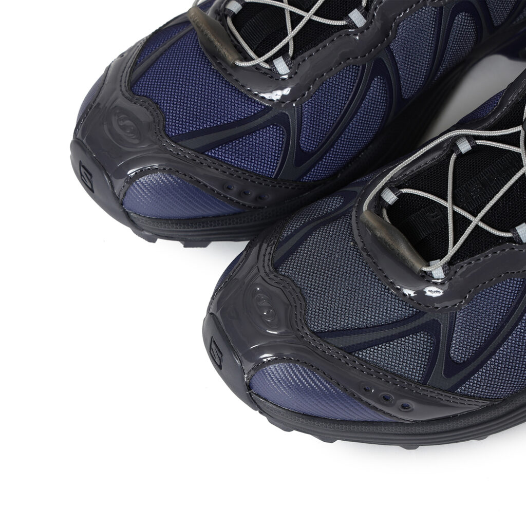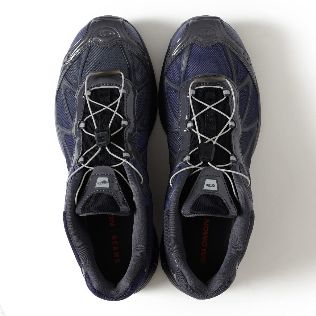 今回は、SALOMONの”XT”シリーズ最新作『XT-Whisper』を、電子機器にみられる、近未来的なムード漂うパープルのグラデーションカラーで別注。