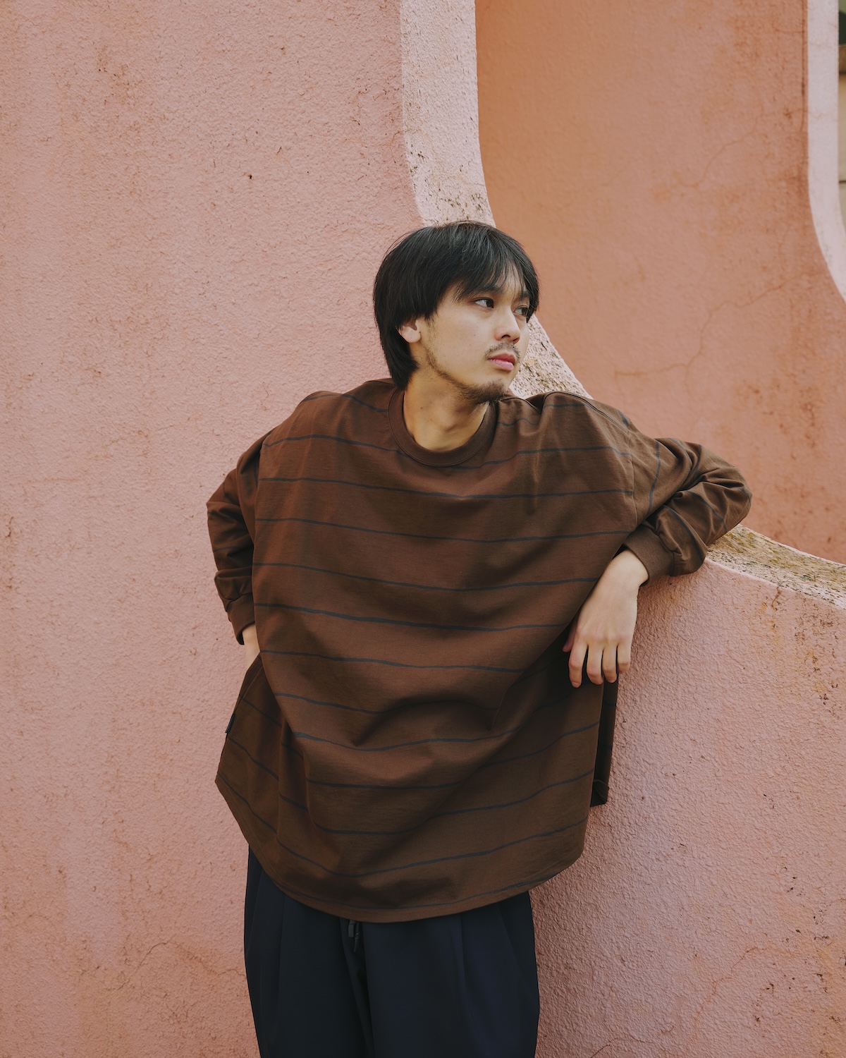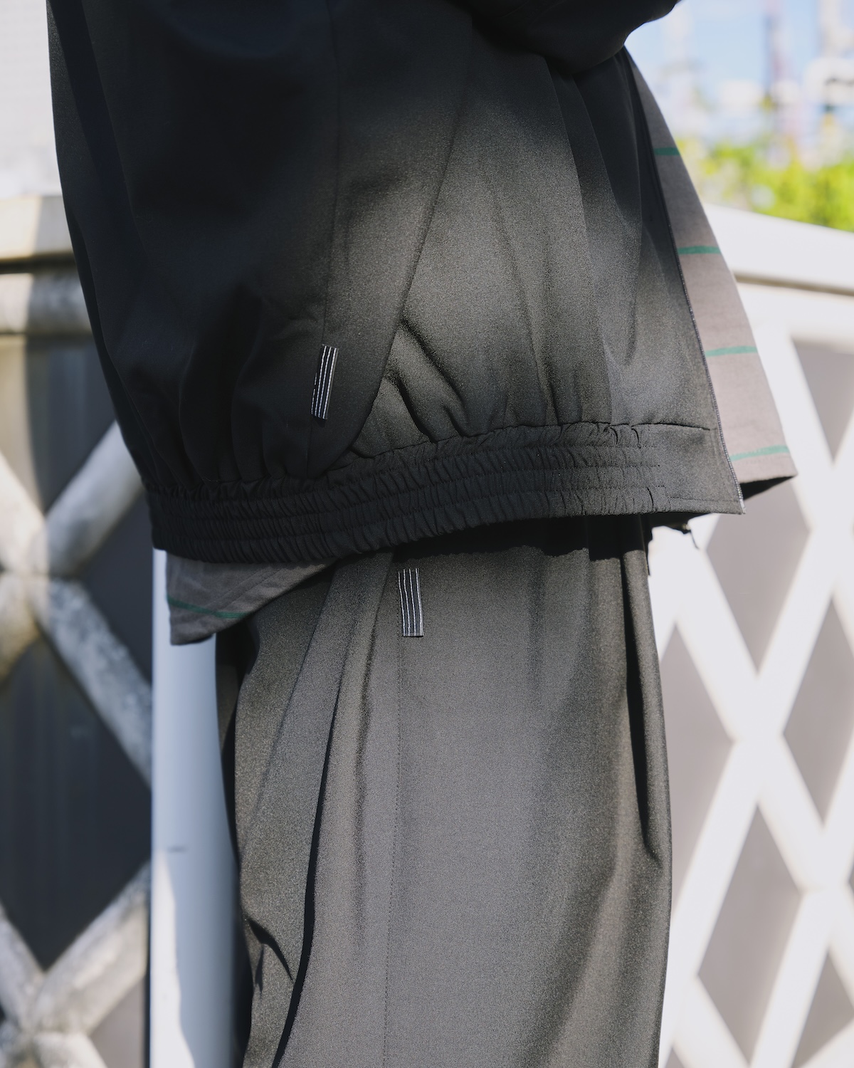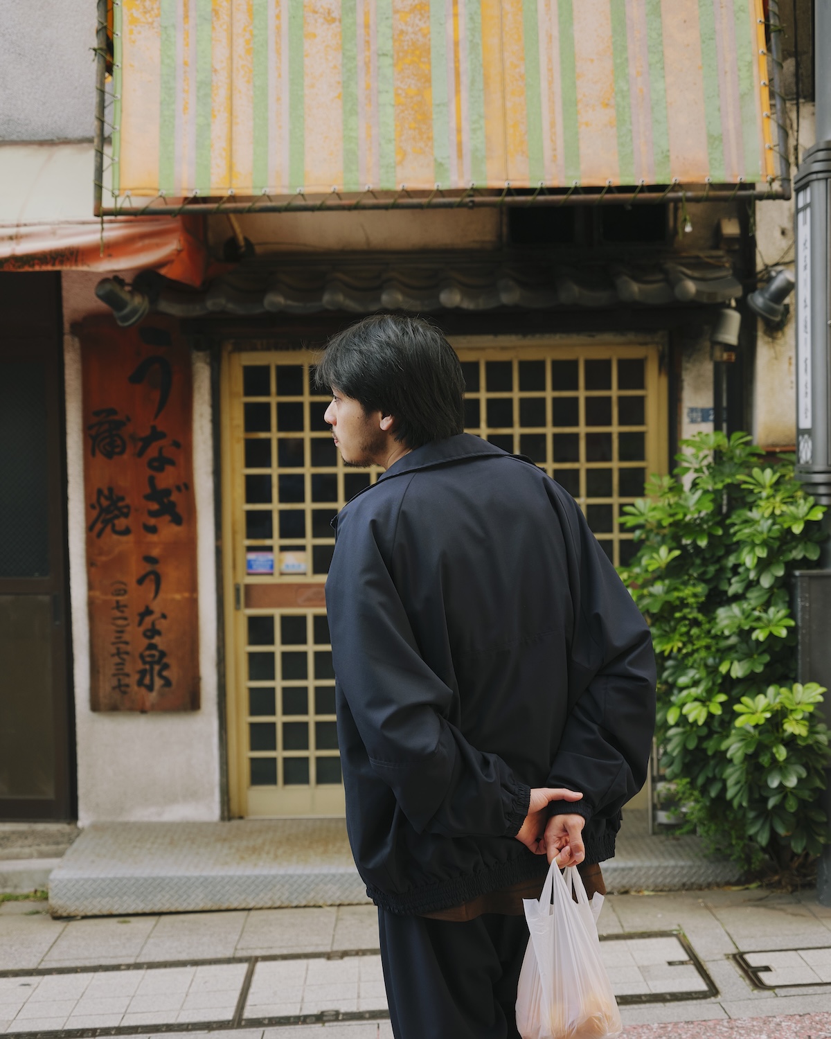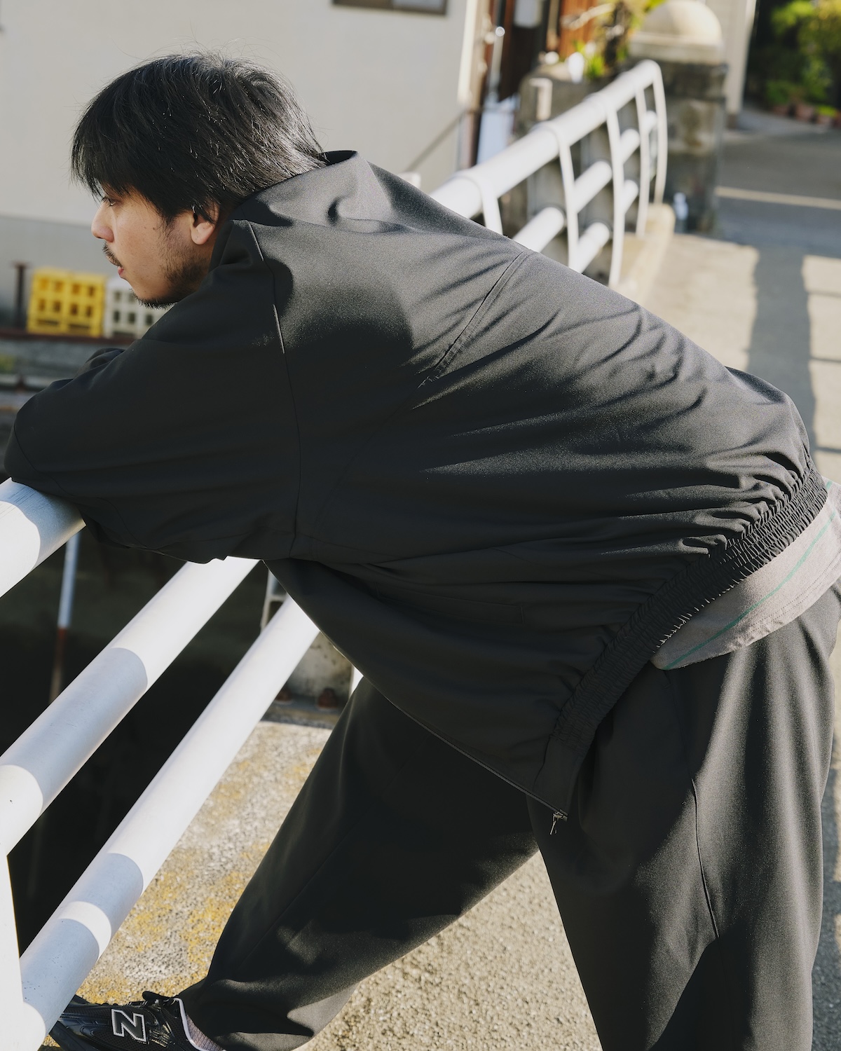 今回の別注では”24/7”のタイトル通り、年中無休で着用可能なショートブルゾン、ワイドパンツのセットアップ、オリジナルカラーのカットソーを製作。