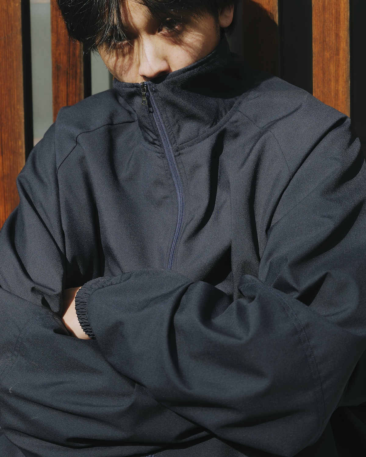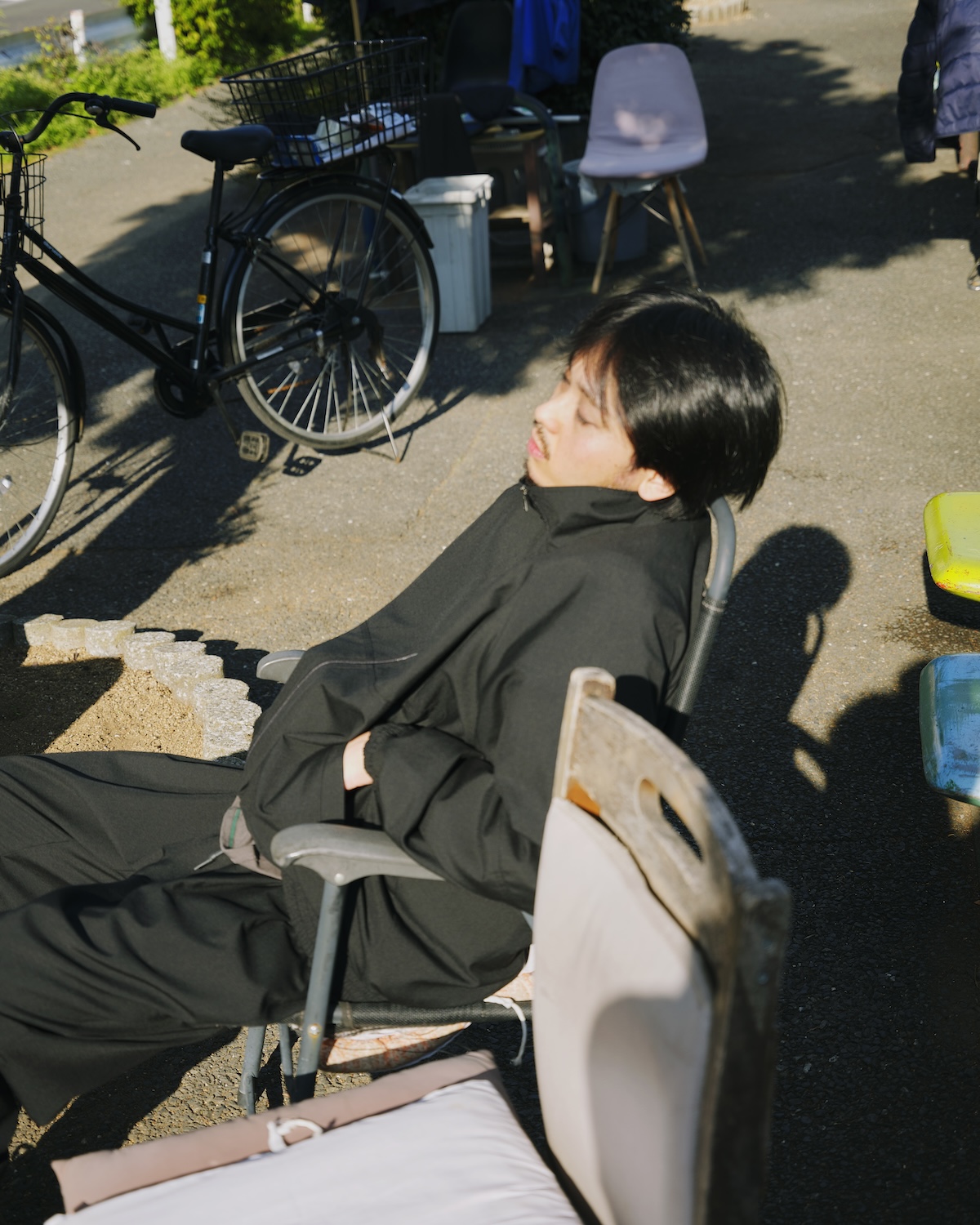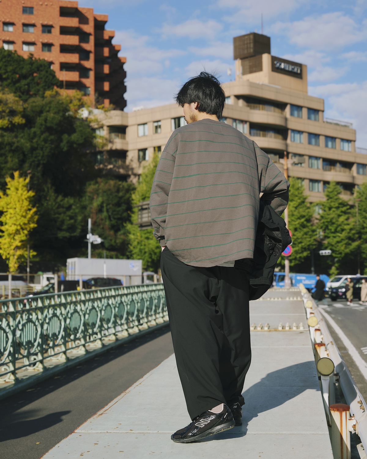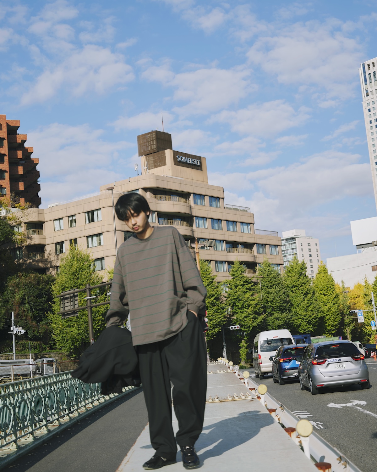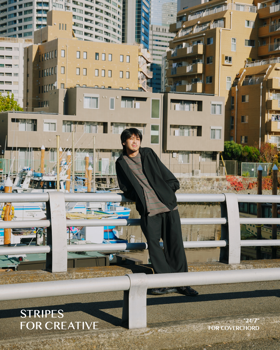 今回の別注では”24/7”のタイトル通り、年中無休で着用可能なショートブルゾン、ワイドパンツのセットアップ、オリジナルカラーのカットソーを製作。
