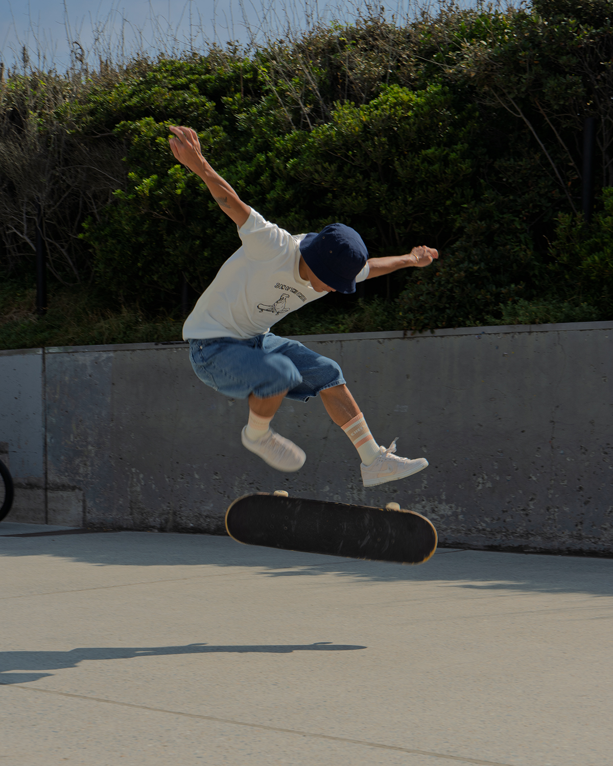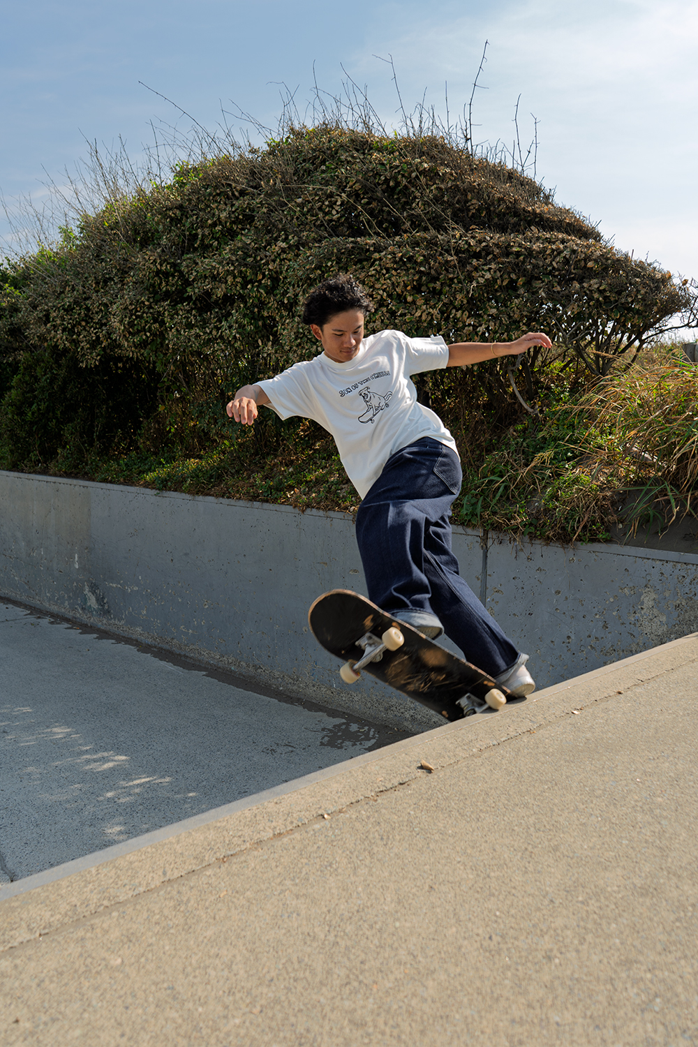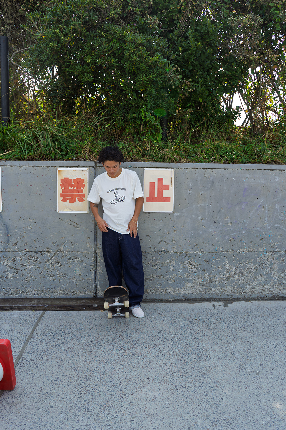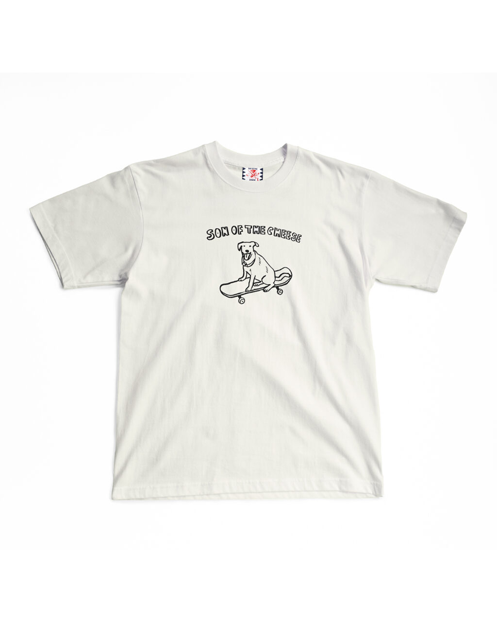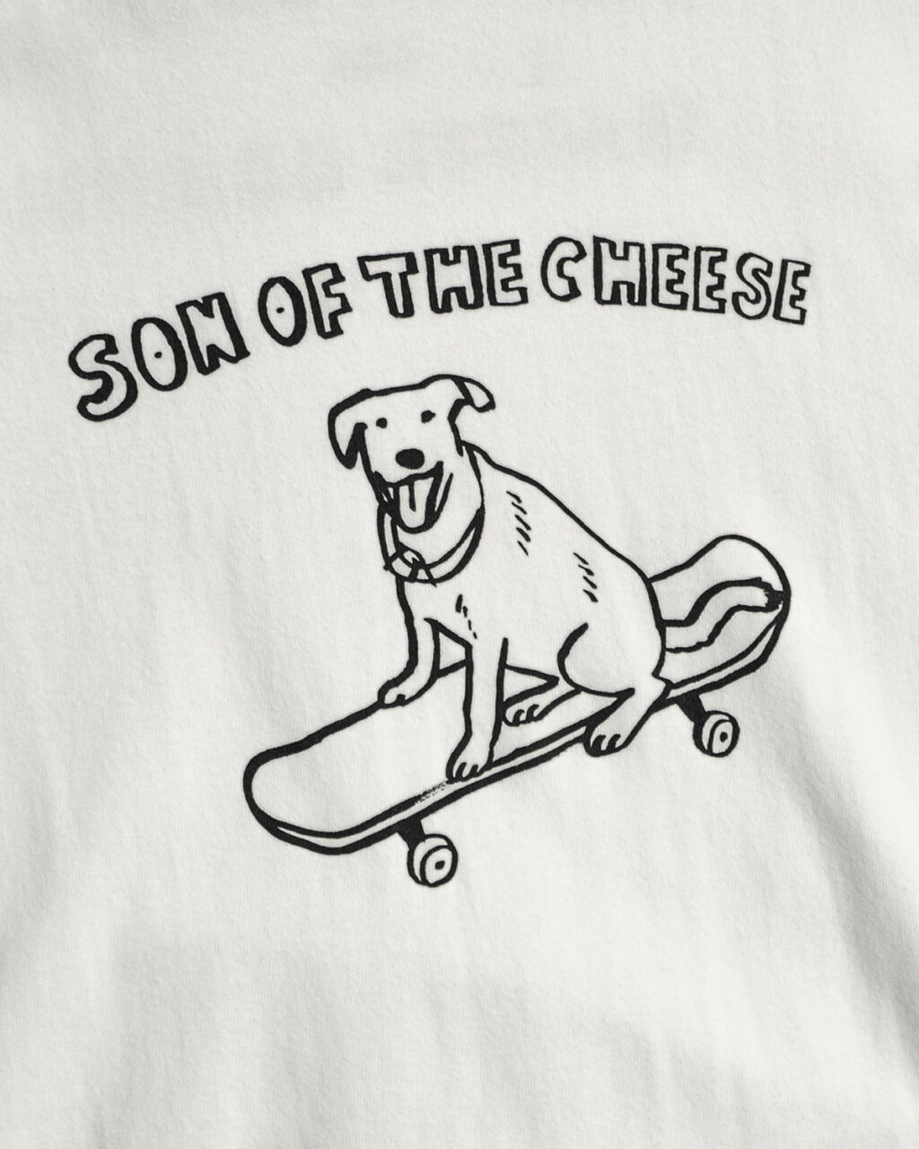 グラフィックに描かれている犬はSON OF THE CHEESEの創設者である山本海人が飼っていた愛犬・Cheeseで、ブランドが誕生したコミュニティスペースのプール横のトレーラーで山本と一緒に暮らしていたCheeseの姿を描いたという。