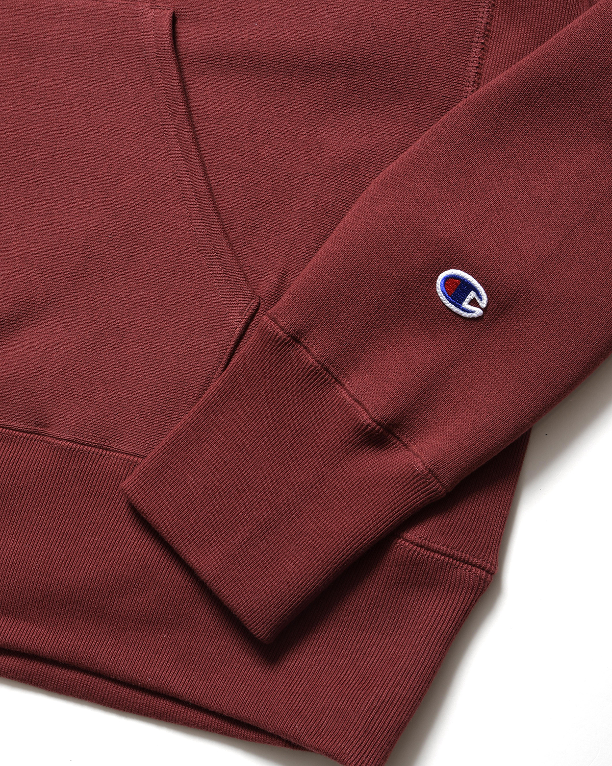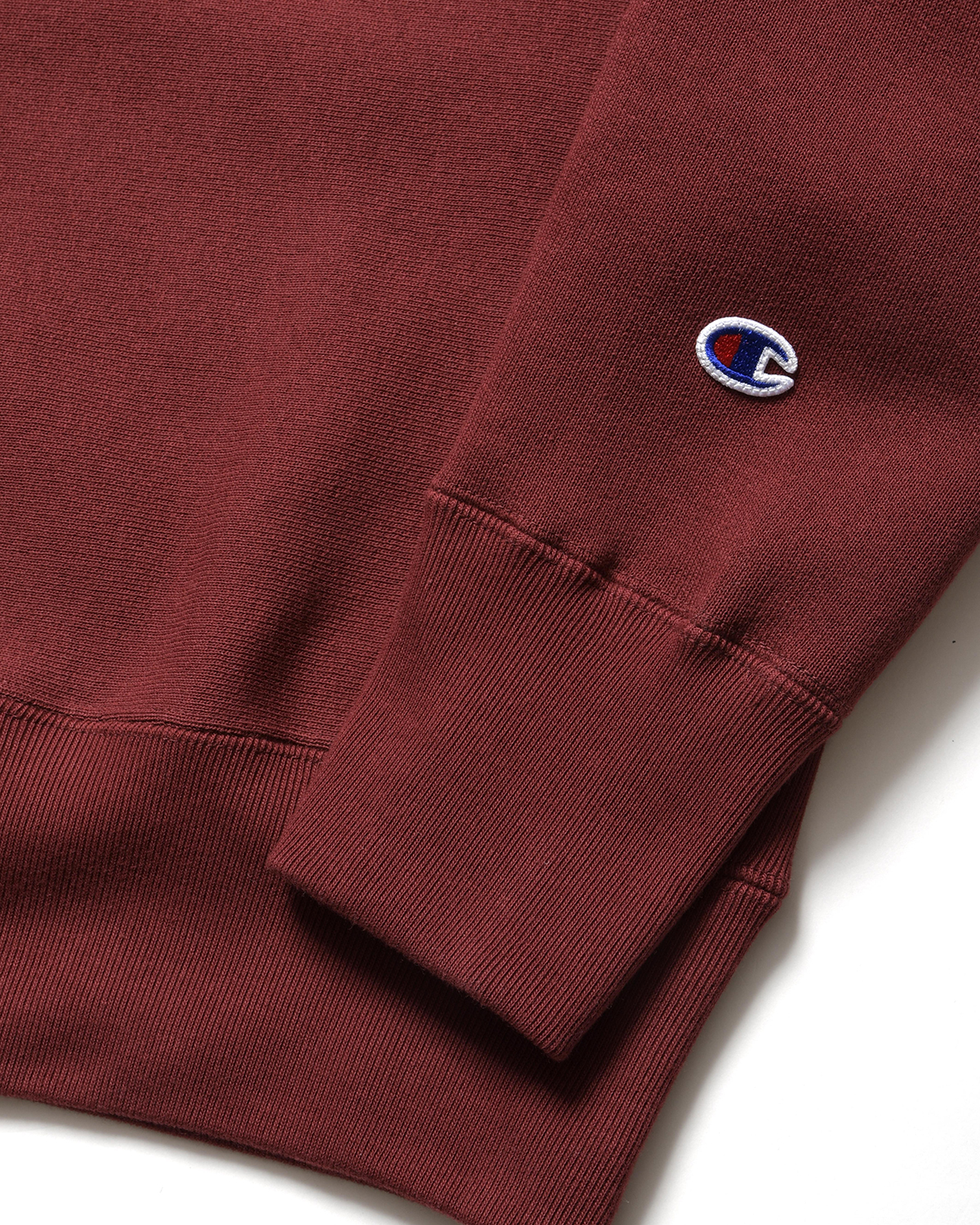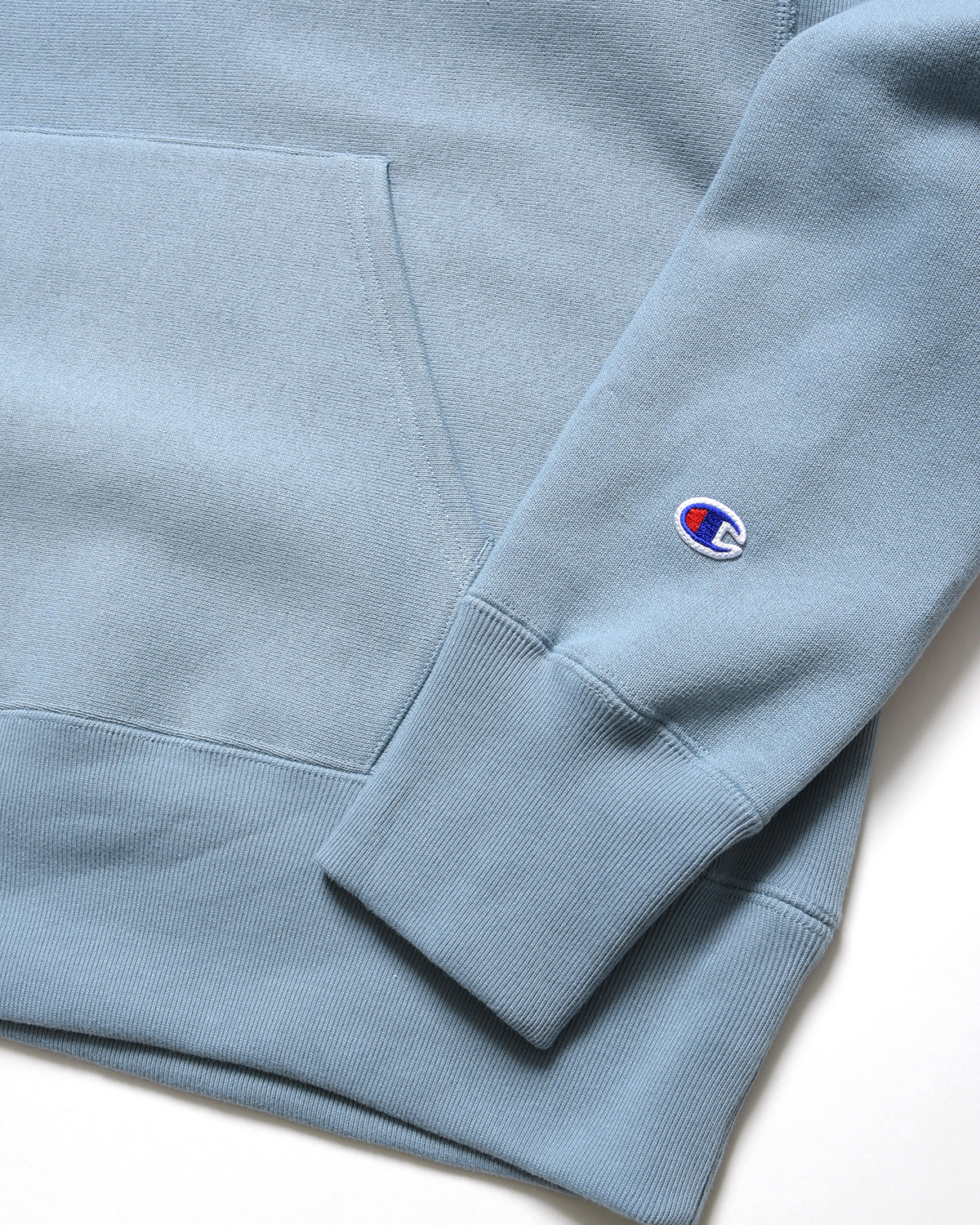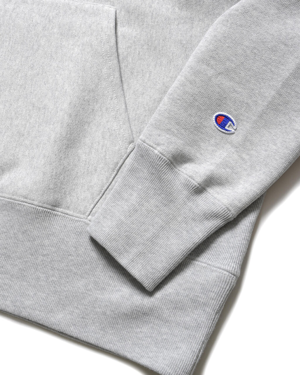 いずれも縦方向への縮みを抑えるリバースウィーブ製法を採用しており、胸元のロゴ刺繍と、 左袖のCロゴワッペンが効いた、ミニマルで洗練されたデザインに仕上がっている。