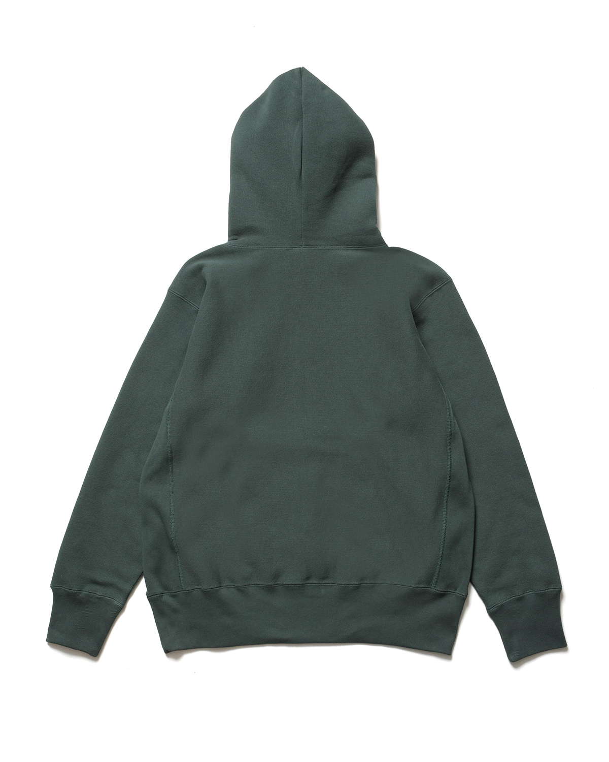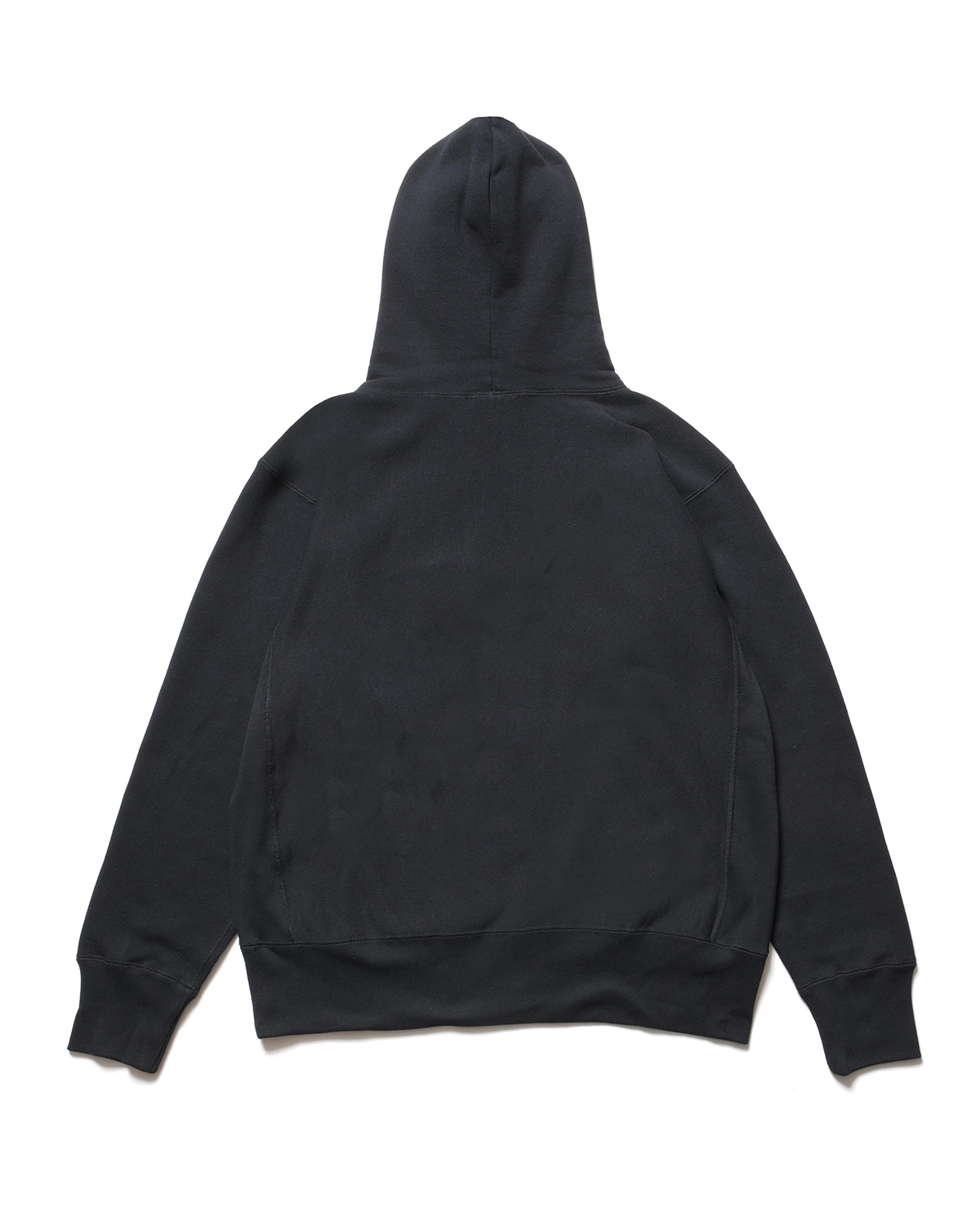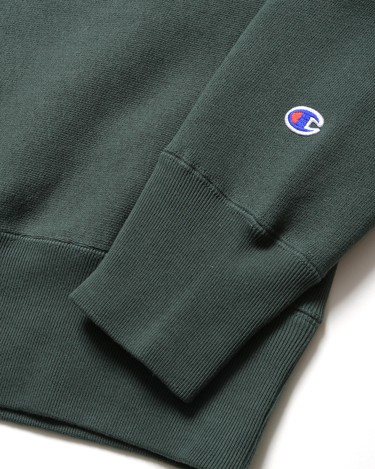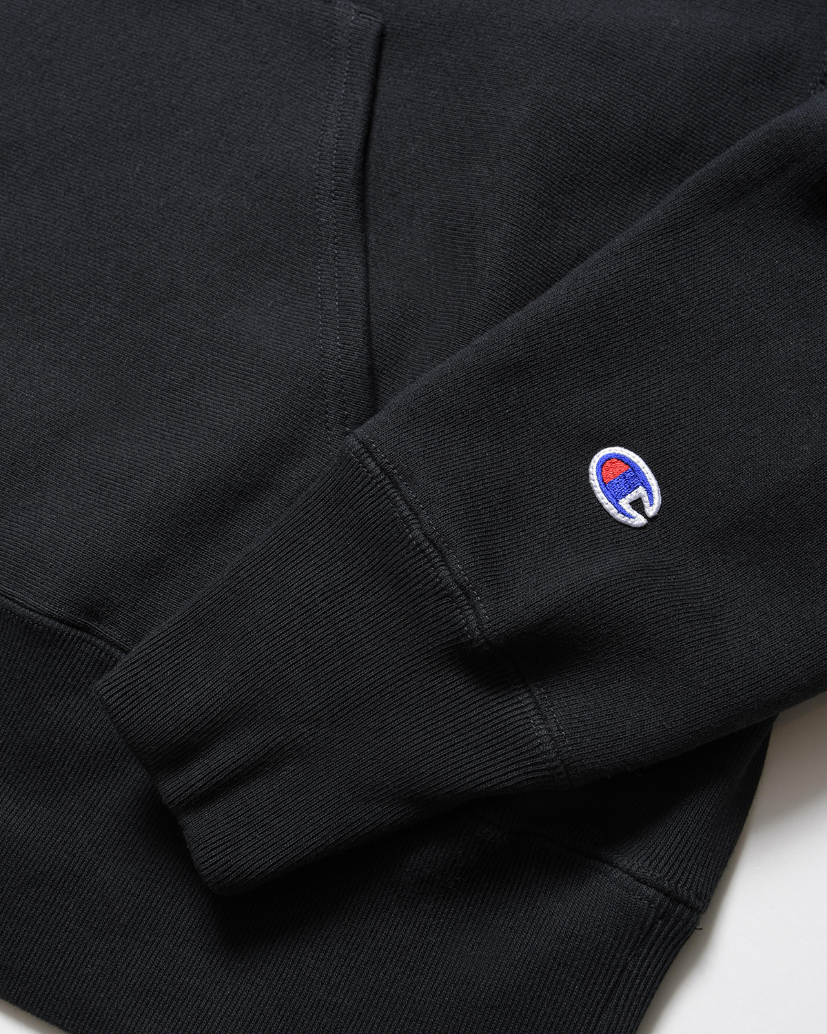 いずれも縦方向への縮みを抑えるリバースウィーブ製法を採用しており、胸元のロゴ刺繍と、 左袖のCロゴワッペンが効いた、ミニマルで洗練されたデザインに仕上がっている。