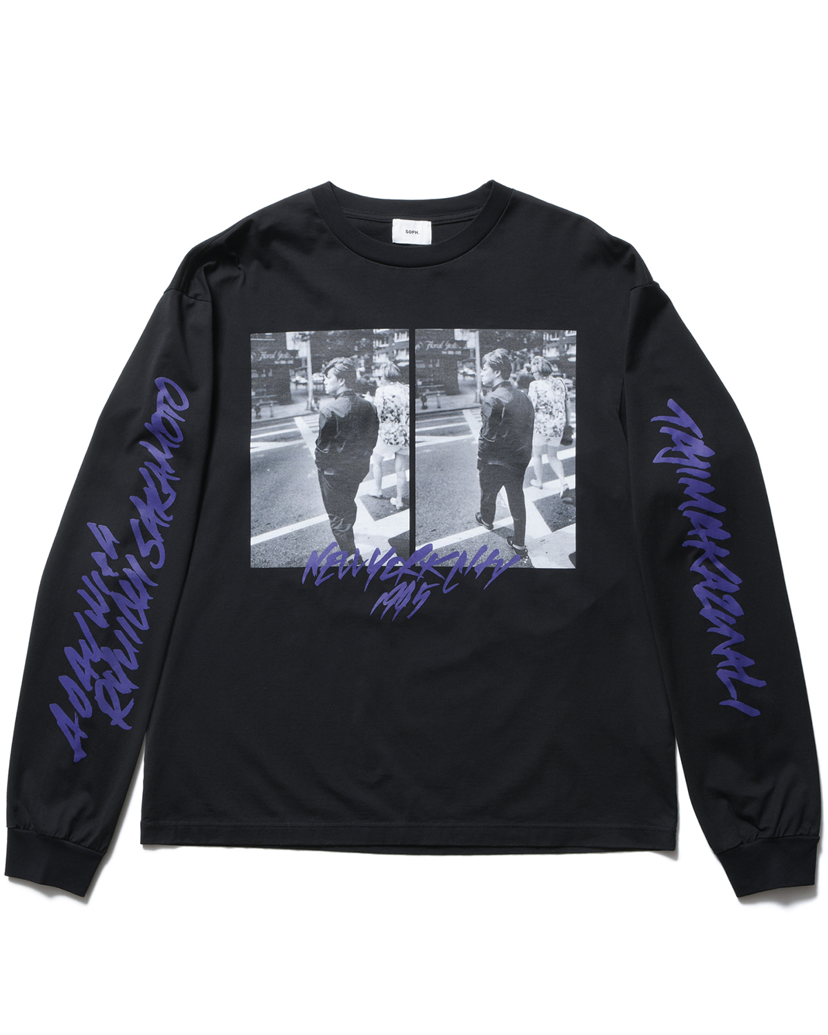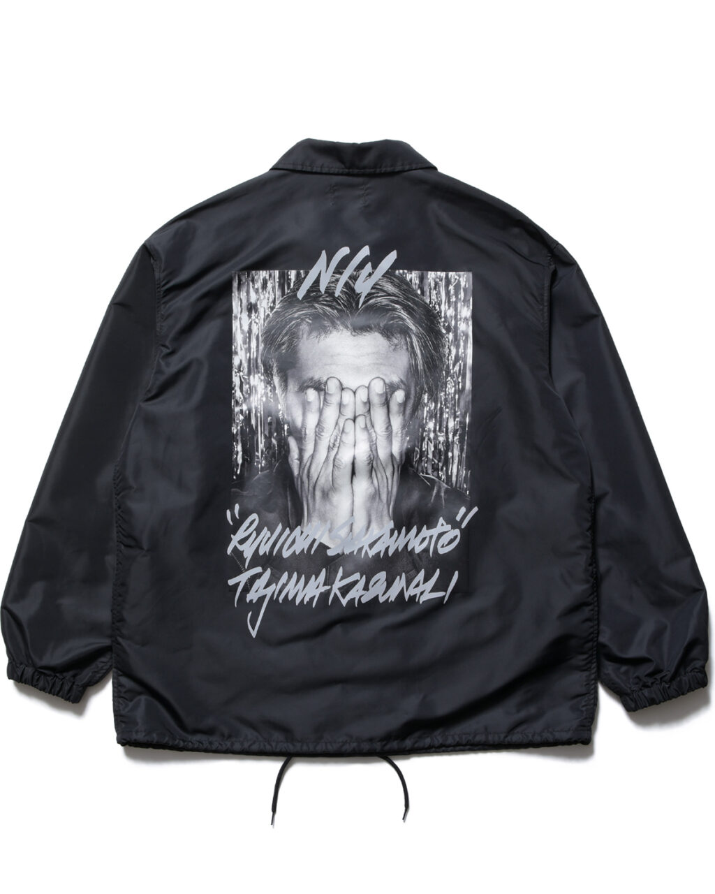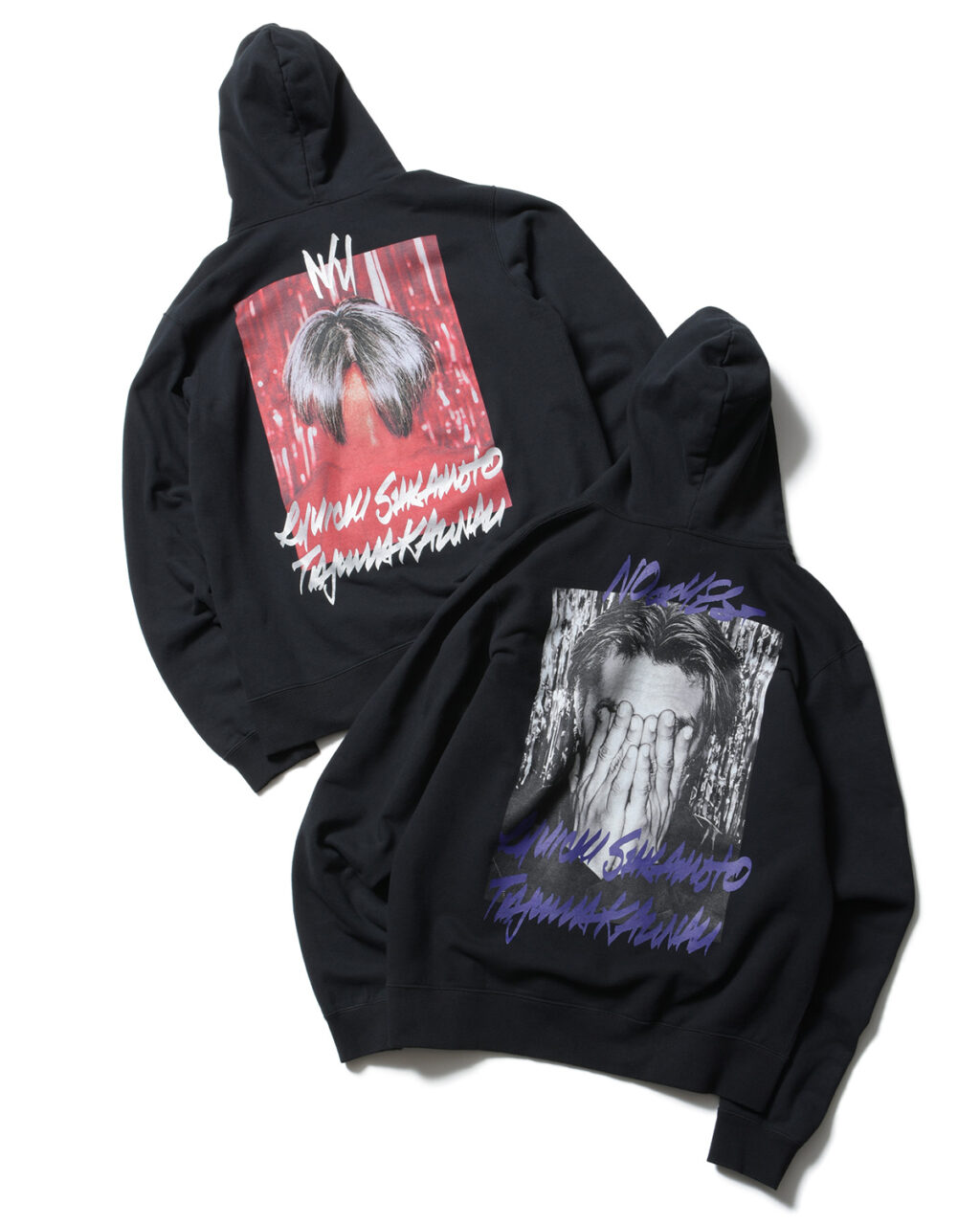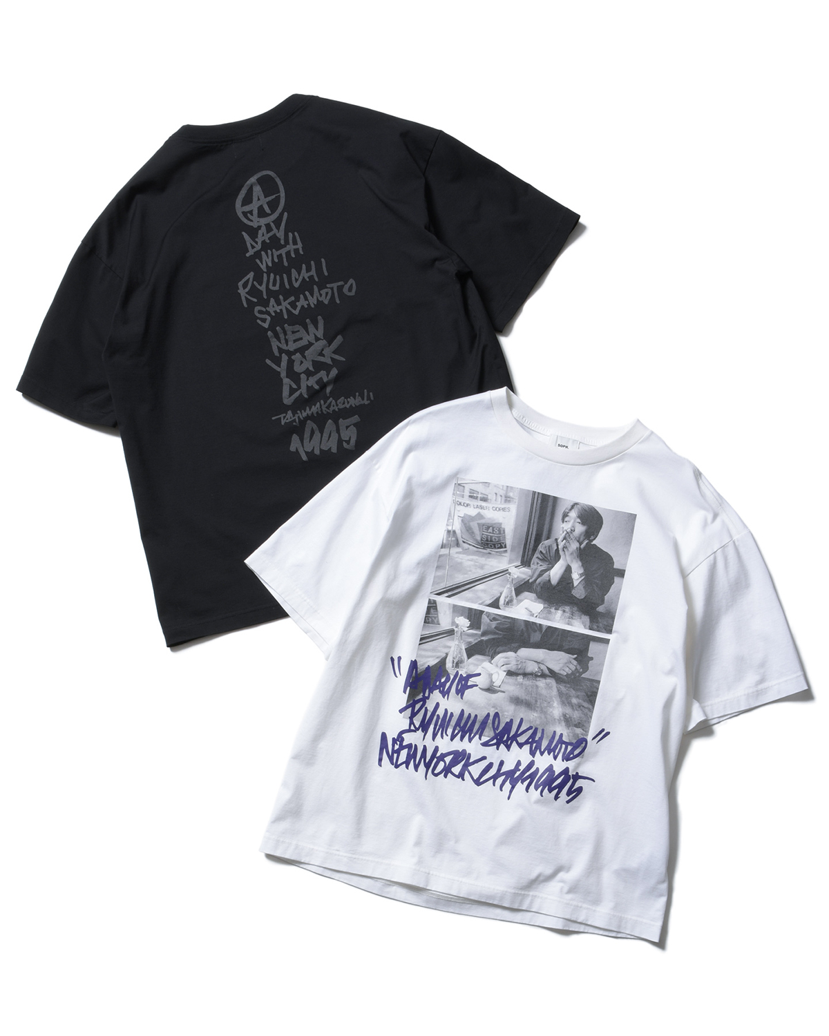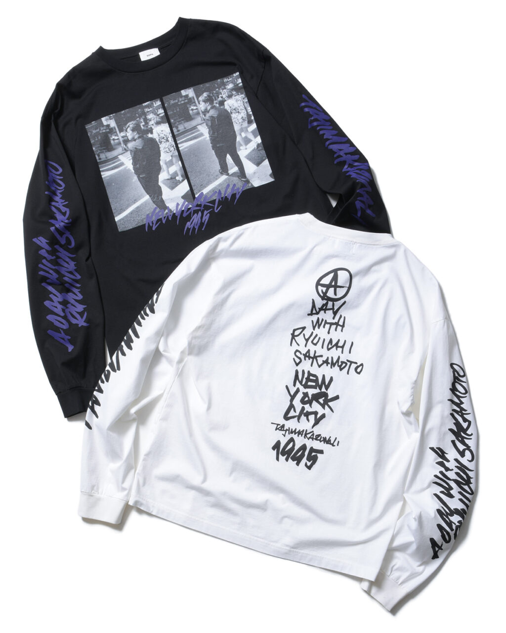 現在、福岡のGALLERY SOPH.にて開催中となっている田島一成の個展『A DAY WITH RYUICHI SAKAMOTO』&『N/Y』にあわせて製作された今回のコラボレーションアイテムでは、田島一成と坂本龍一が過ごした貴重な1日をコーチジャケットやフーディー、編み物アーティスト・編み物☆堀ノ内のジャカードニットなどに配置。