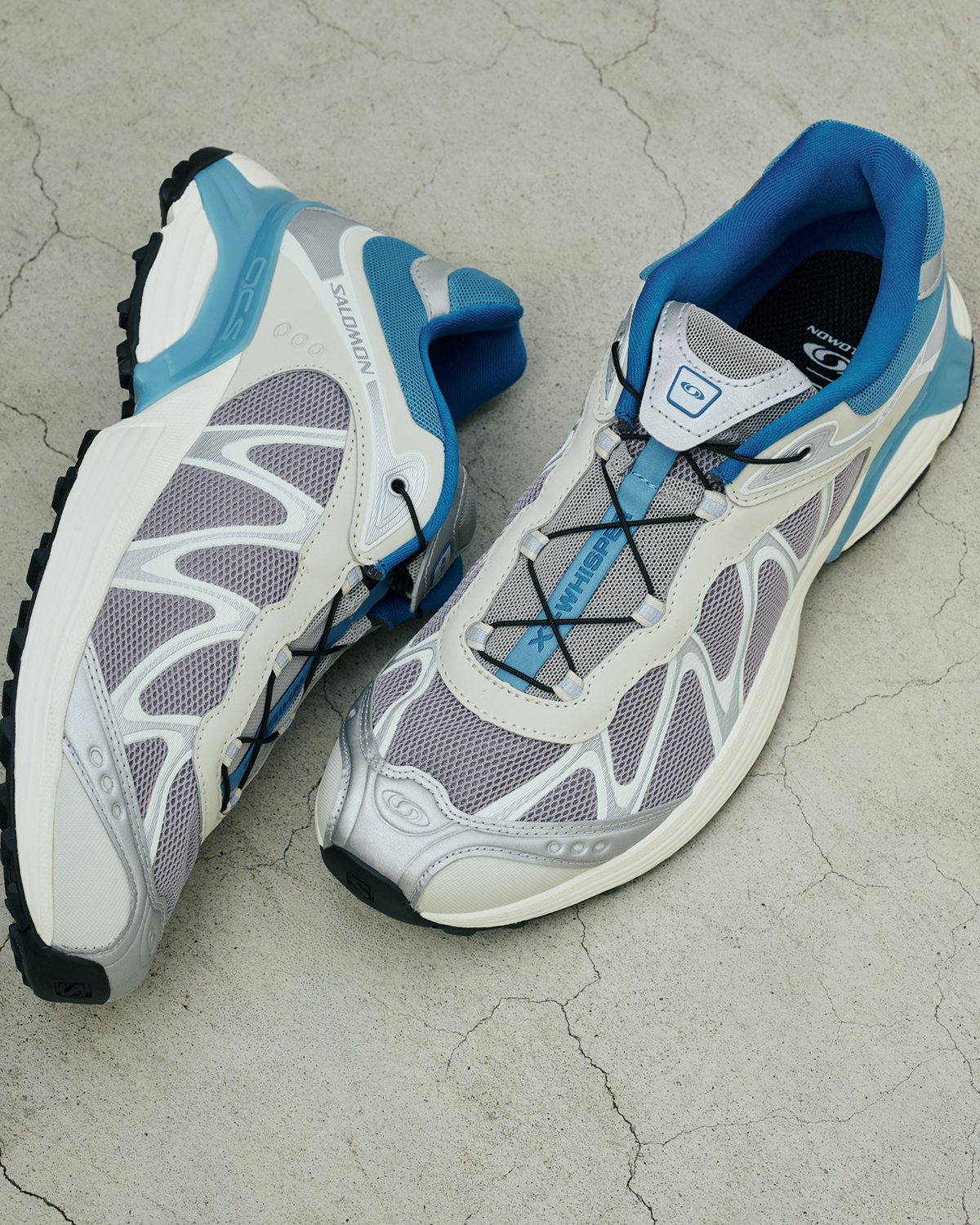 一方、SALOMONとは『XT-WHISPER』のSOPHNET.エクスクルーシブカラーを製作。クリーンなホワイトボディに爽やかなライトブルーを配した1足は、マットな質感と光沢仕上げの重なりが生み出す立体的な造形美が魅力的だ。