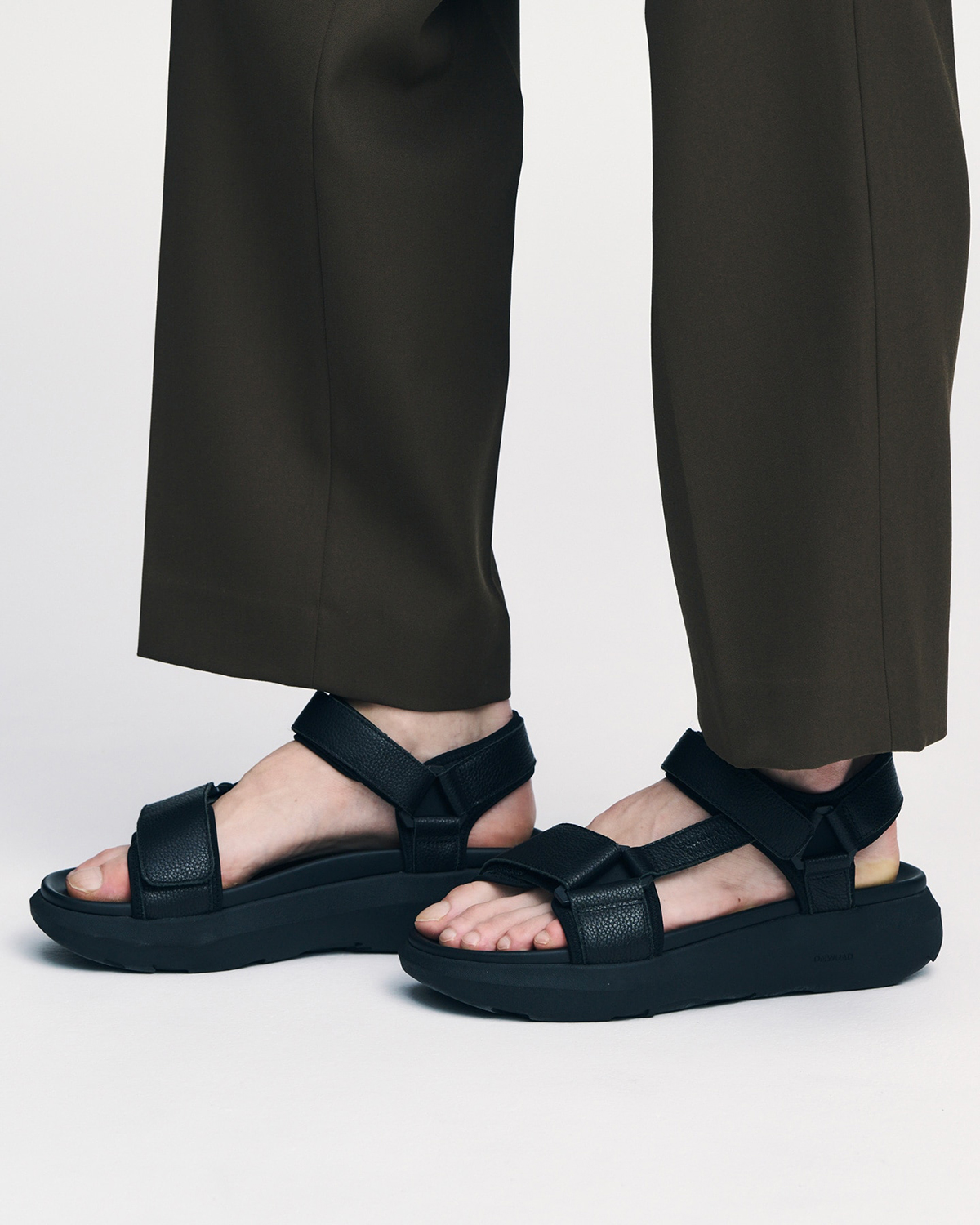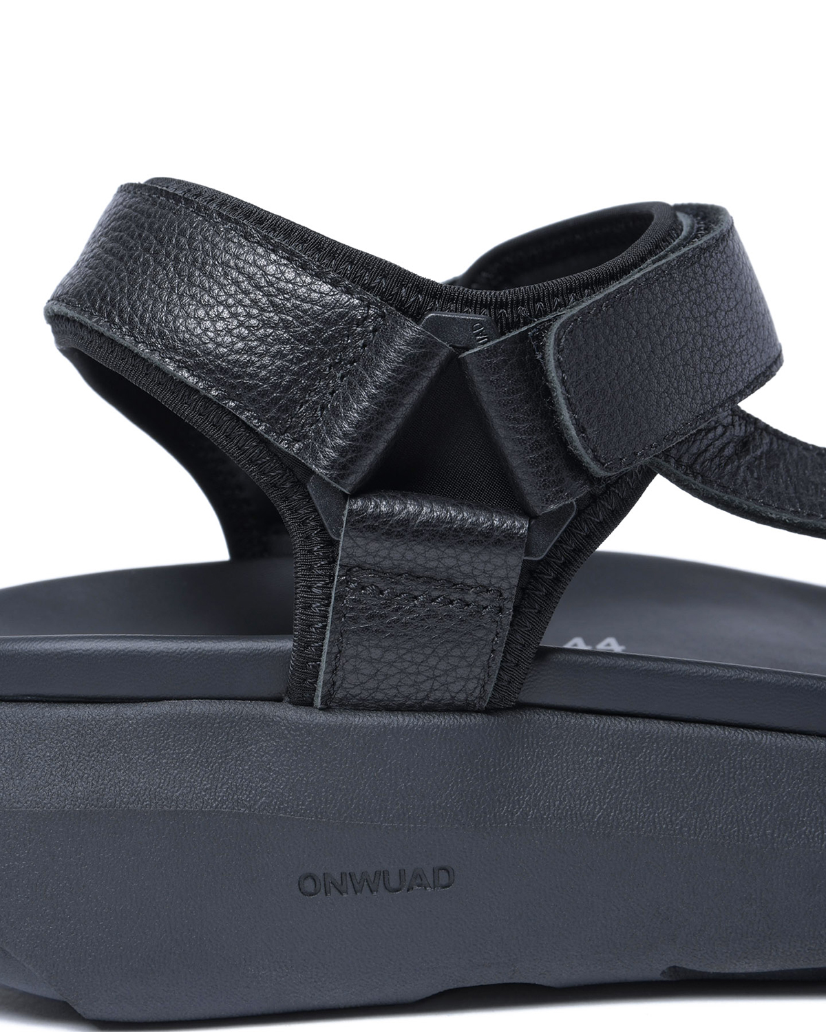 ONWUADとの初のタッグでは、幅広のベルトタイプモデルである『SCHON』をベースに採用。上質なシボ革を使用したトラッドな仕様にアレンジした。迷彩柄をモチーフにした、ソール裏のトレッドパターンもさりげないデザインポイントに。
