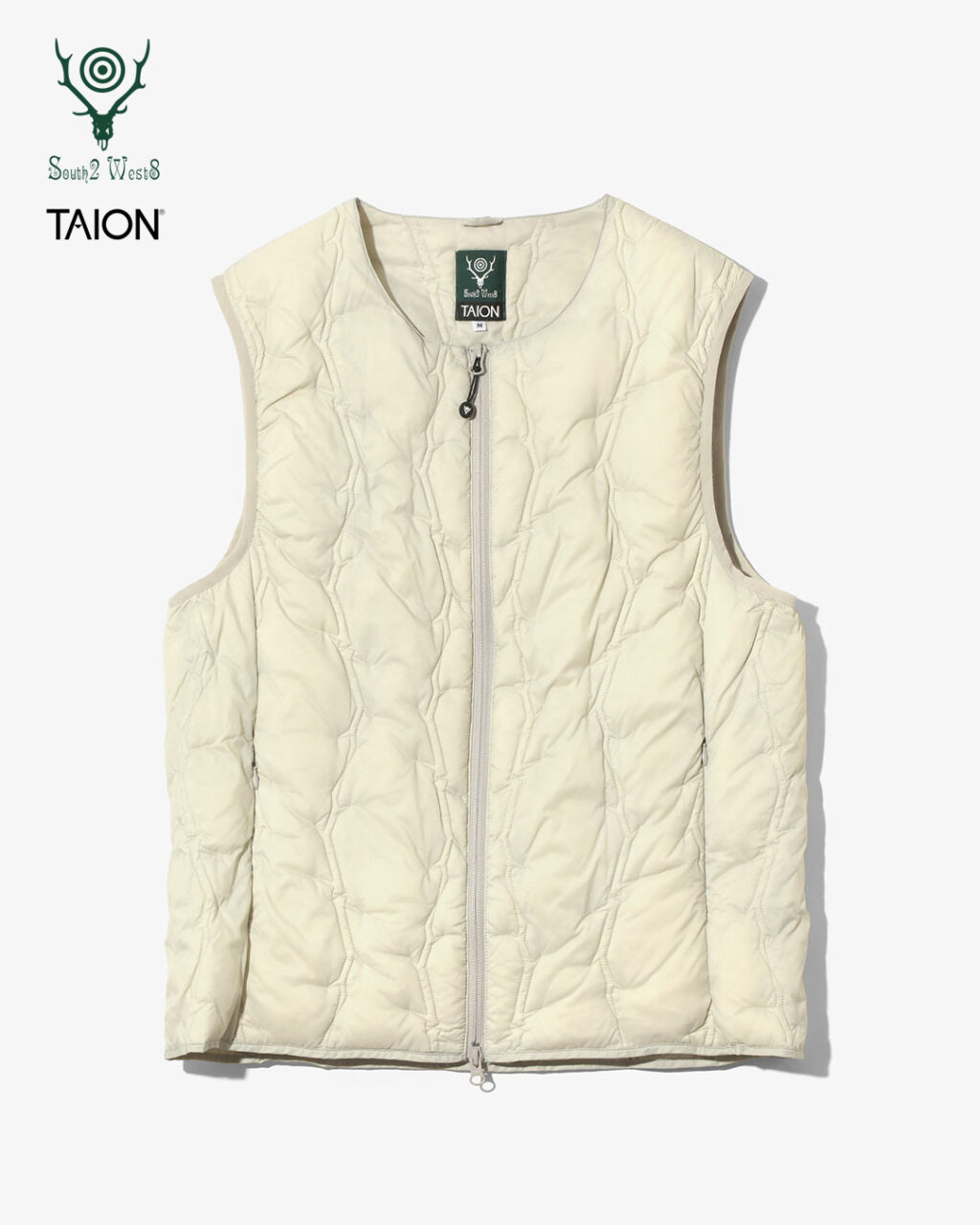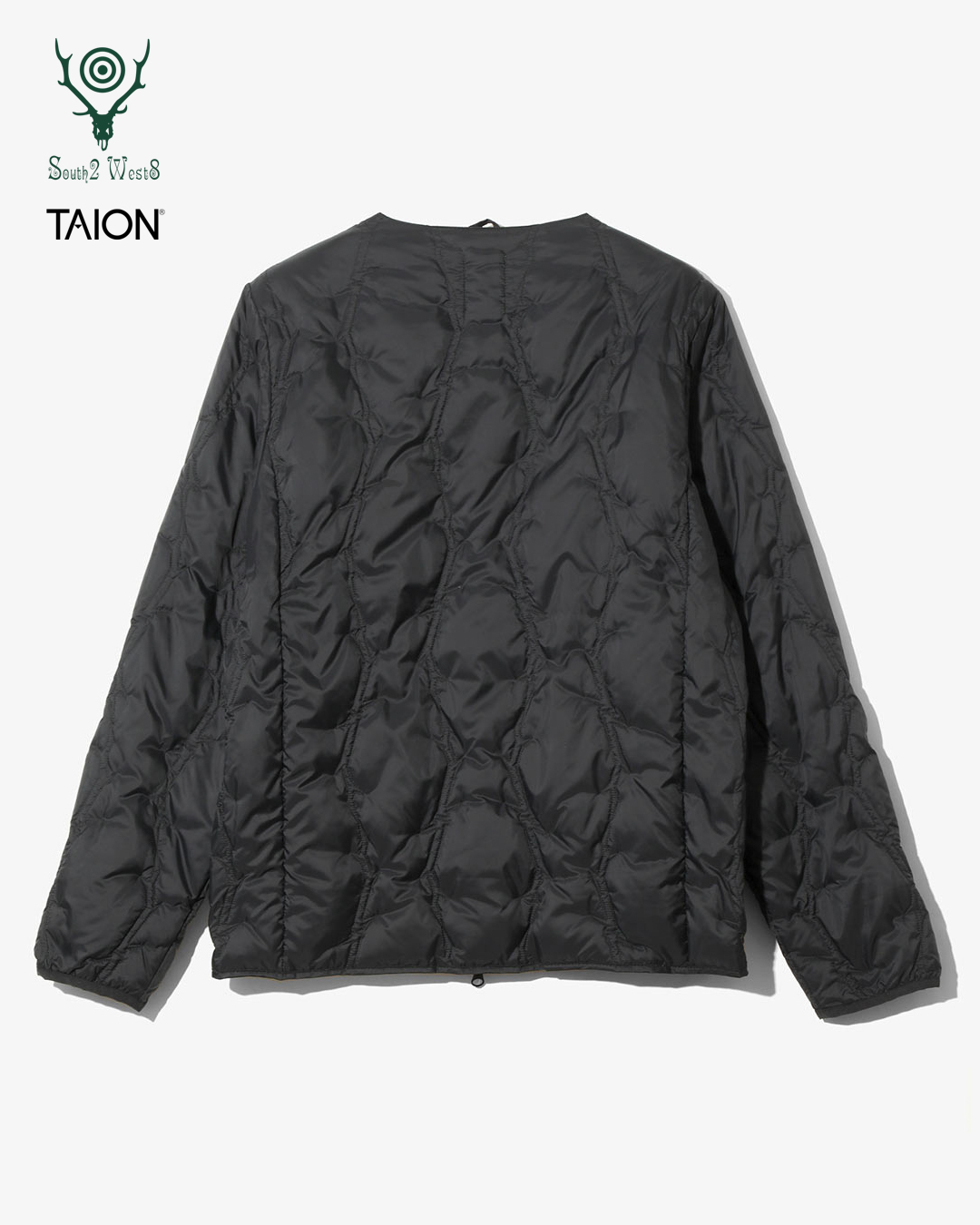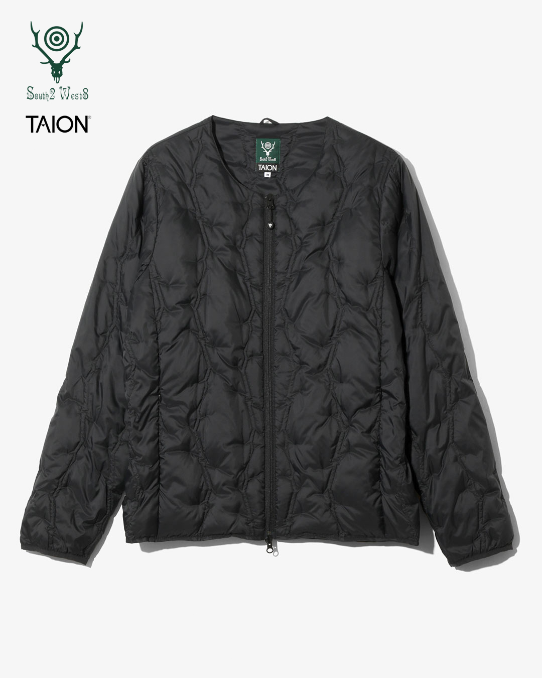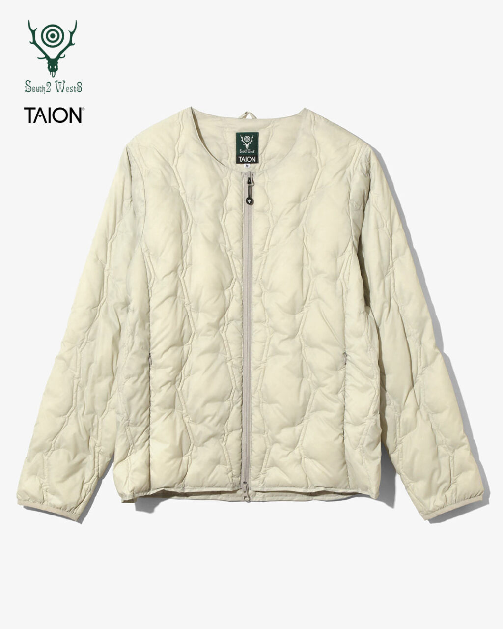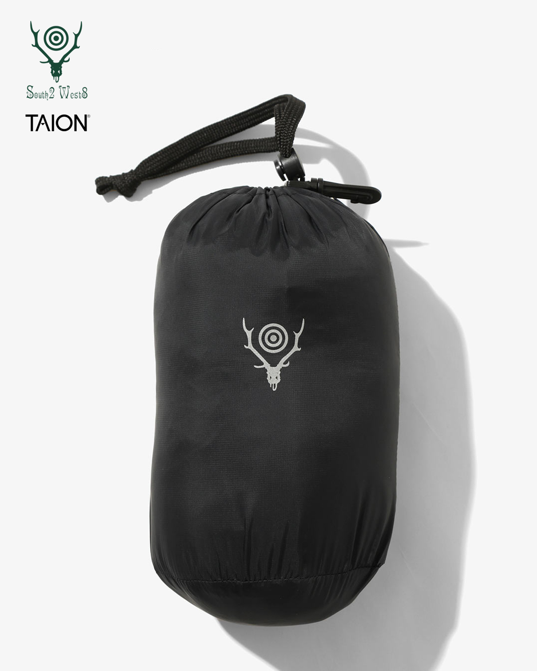 今回のコラボレーションでは、SOUTH2 WEST8オリジナルのディアホーンモチーフをステッチワークで落とし込んだ高密度マイクロリップストップ生地と、保温性に優れた800フィルパワーのダウンを採用。