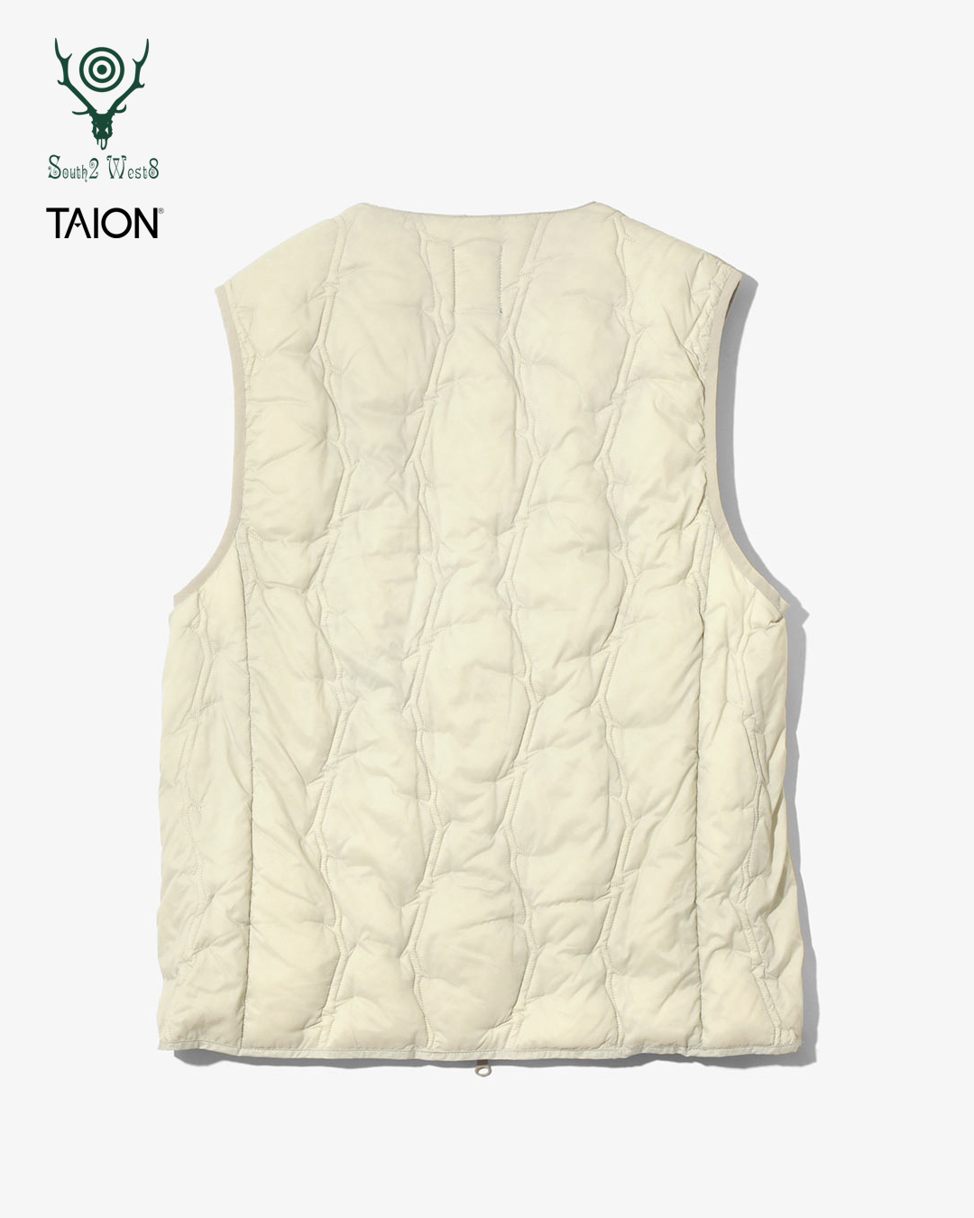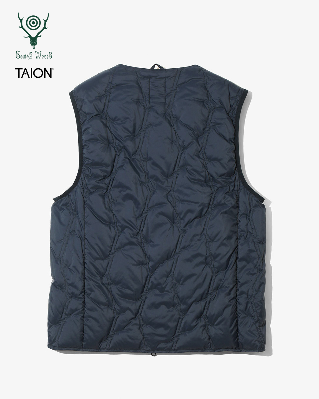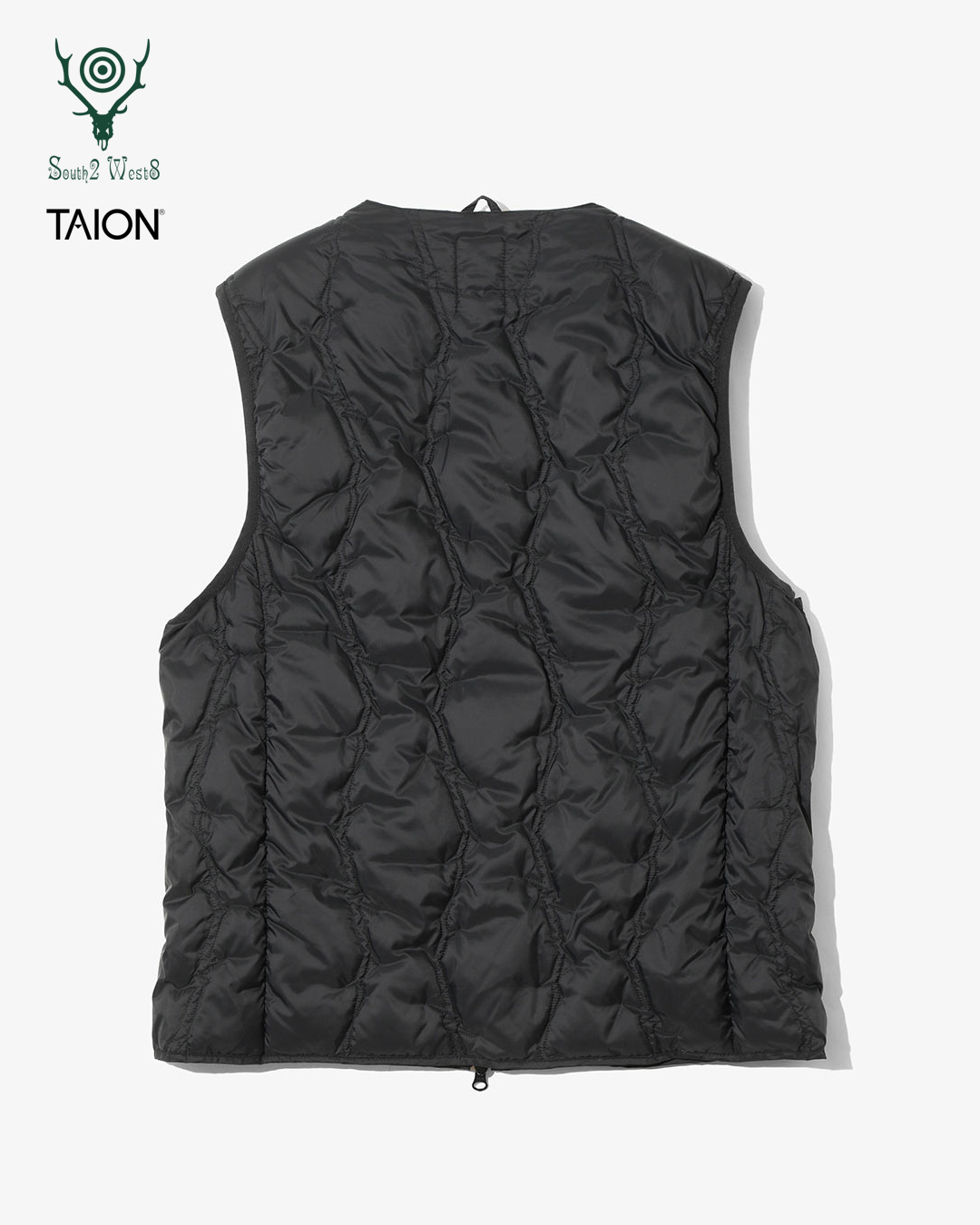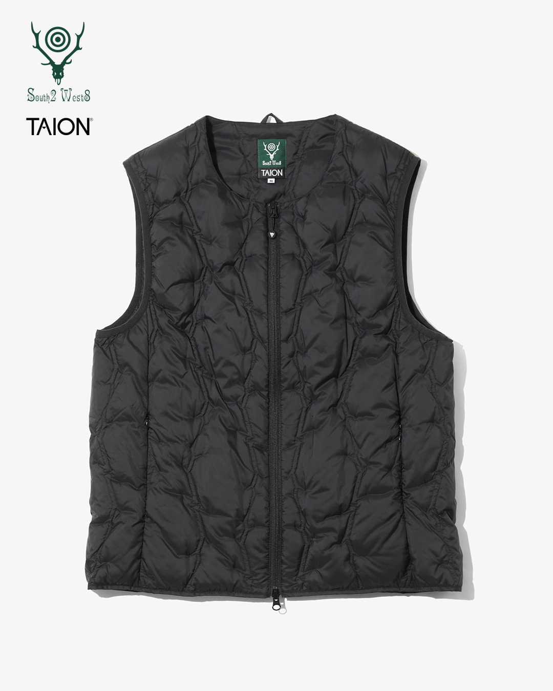 今回のコラボレーションでは、SOUTH2 WEST8オリジナルのディアホーンモチーフをステッチワークで落とし込んだ高密度マイクロリップストップ生地と、保温性に優れた800フィルパワーのダウンを採用。