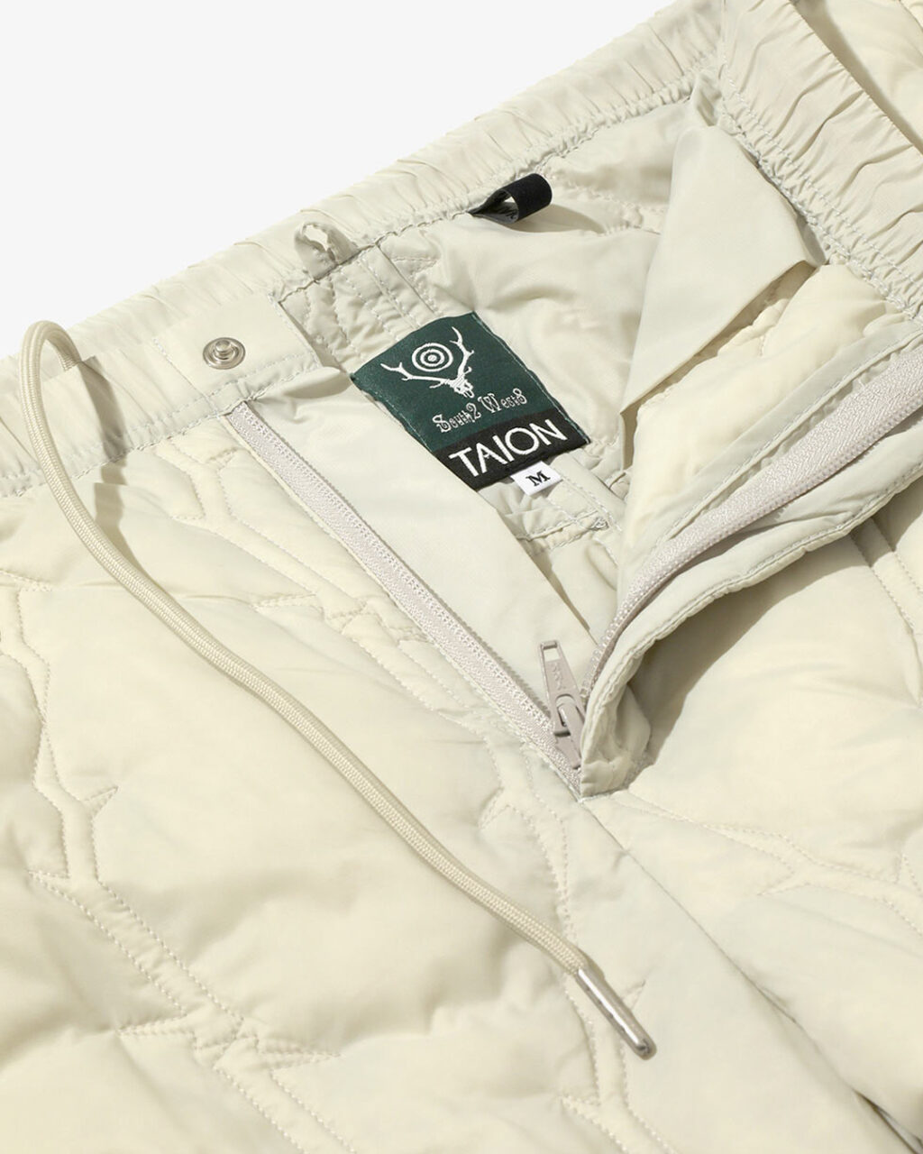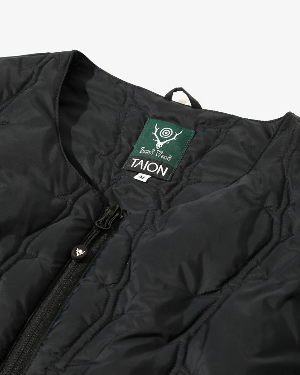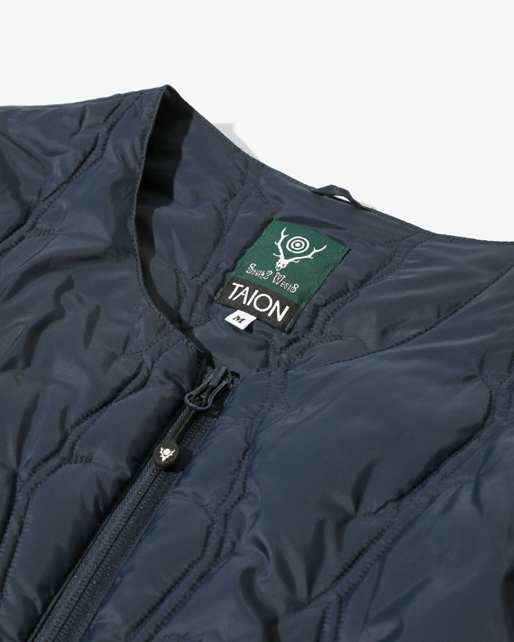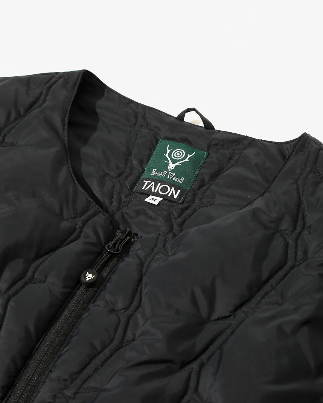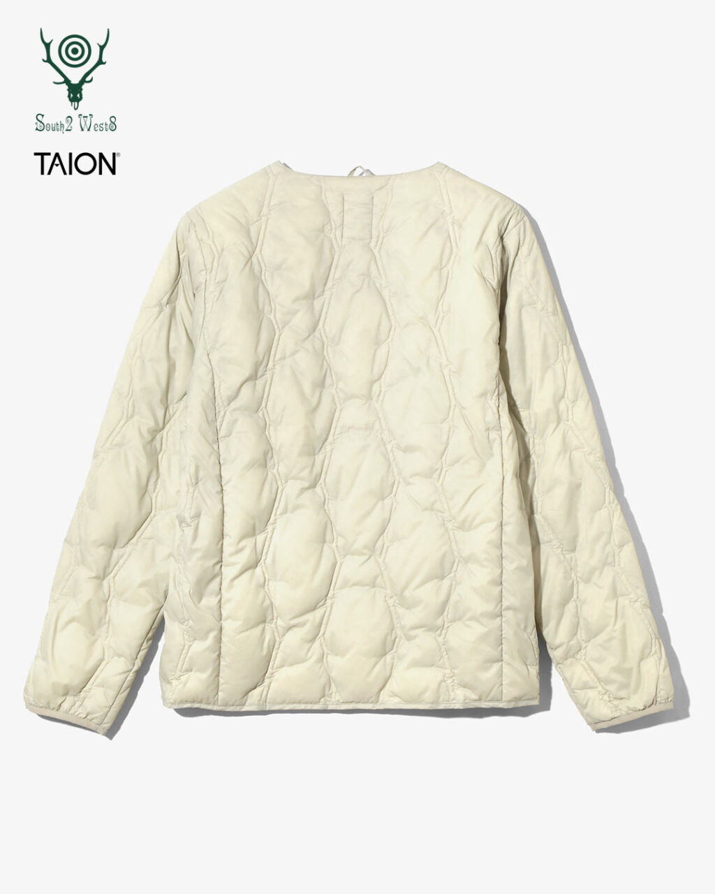 今回のコラボレーションでは、SOUTH2 WEST8オリジナルのディアホーンモチーフをステッチワークで落とし込んだ高密度マイクロリップストップ生地と、保温性に優れた800フィルパワーのダウンを採用。