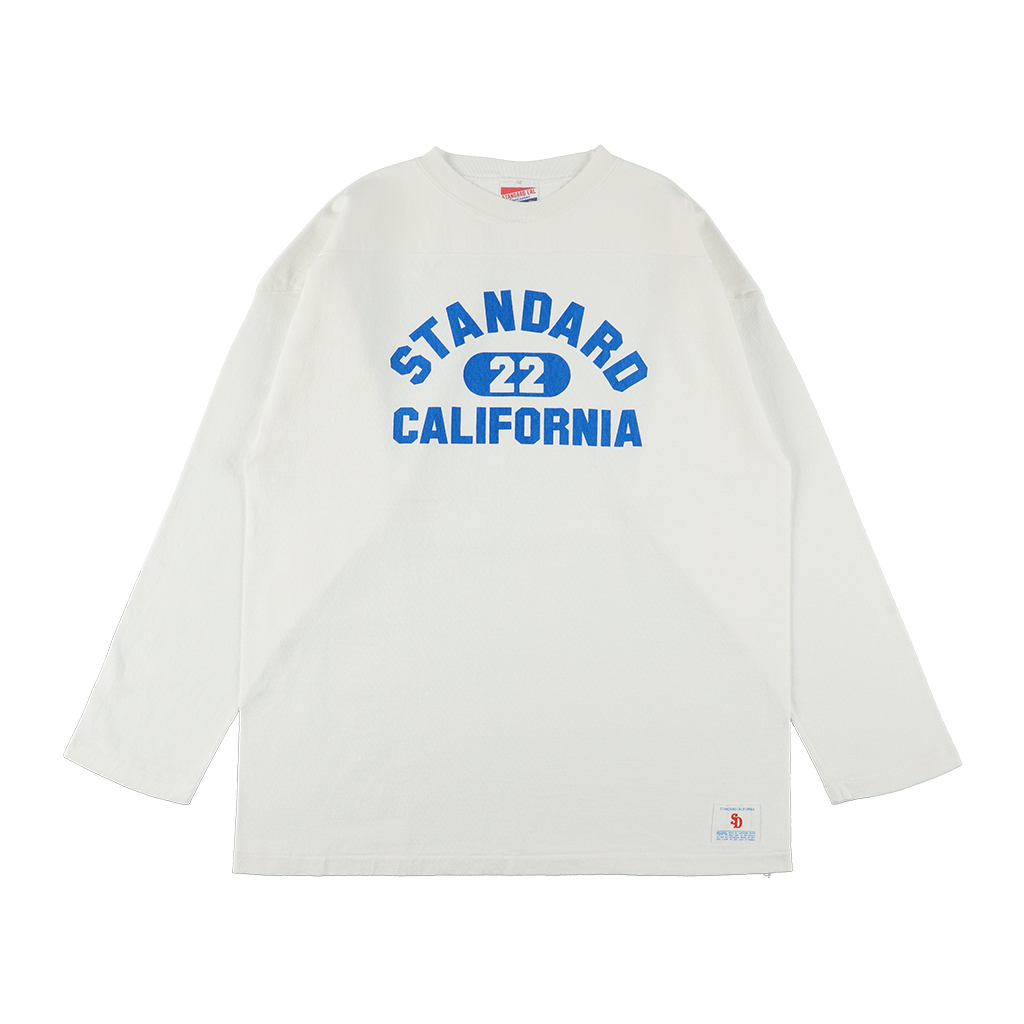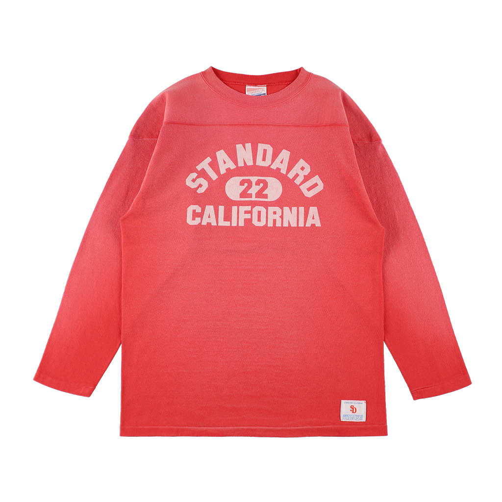 1960年代のヴィンテージの長袖フットボールTシャツをイメージした『SD Heavyweight Football Logo Long Sleeve T Vintage Wash』は、ヴィンテージ同様のヘビーウェイトの丸胴天竺生地を素材に採用。肘当てをつけ、着やすいサイズ感に調整している。プリントもヴィンテージをイメージした硬めのラバープリントで、仕上げにフェード感のあるリアルなヴィンテージウォッシュ加工を施した逸品。