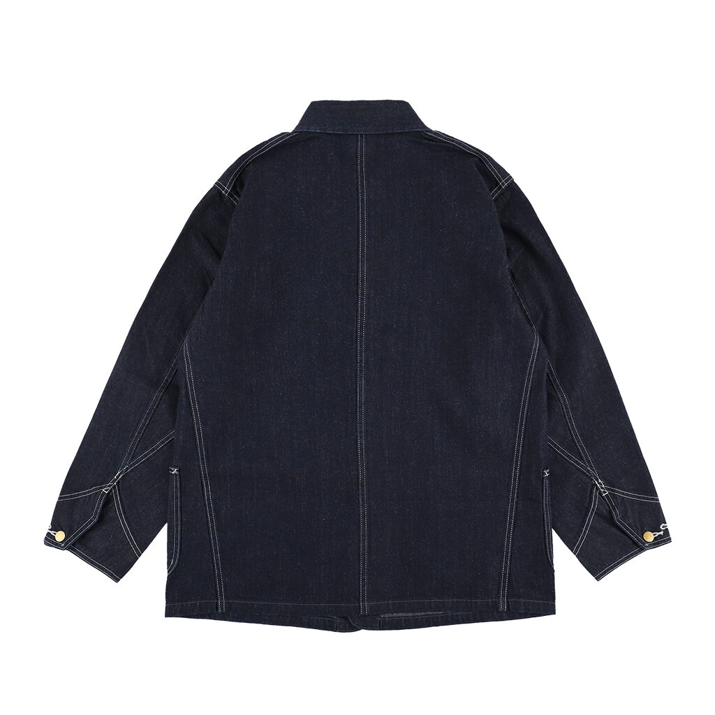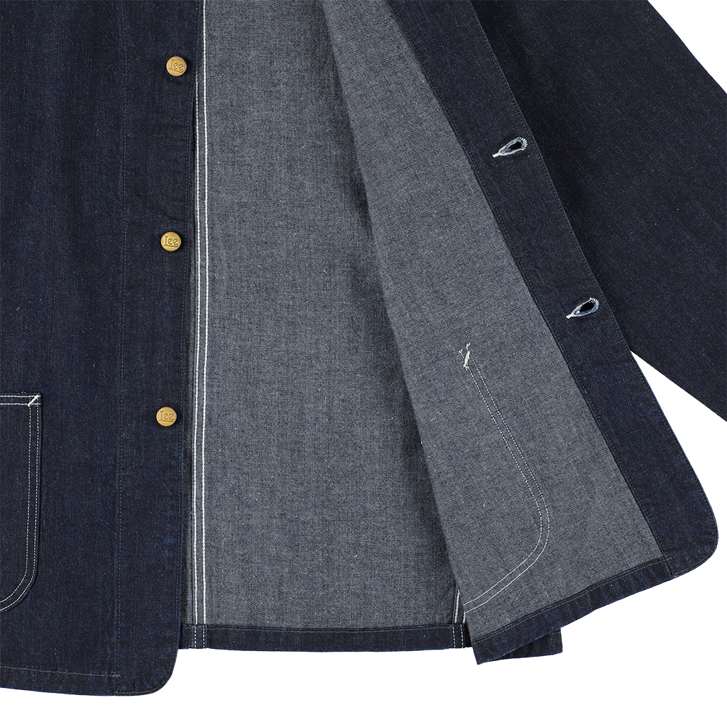 カバーオールは、大戦モデルならではのボタンとポケットの数、簡素化された袖口やステッチの本数などを忠実に再現。ネームも当時のハウスタグをモチーフとしたスペシャルなダブルネーム仕様に仕上げた。