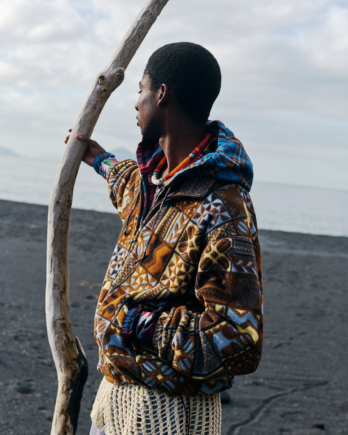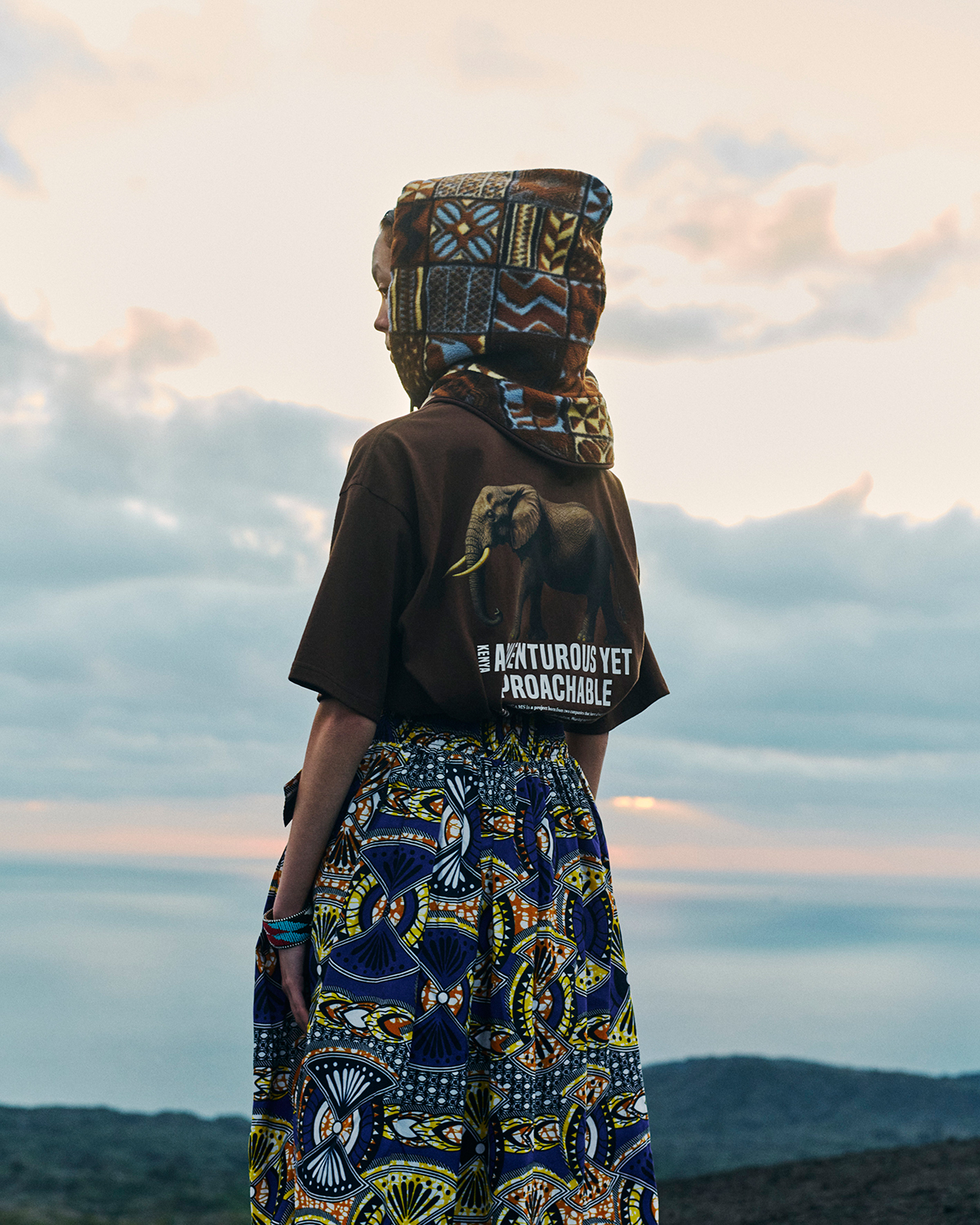 クルーネックニット、フリースジップブルゾン、バラクラバ、フリースマフラーのほか、動物モチーフのプリントTシャツ、ケニアを象徴する民族から着想したフーデッドネルブルゾンなど、多彩なプロダクトが登場する。