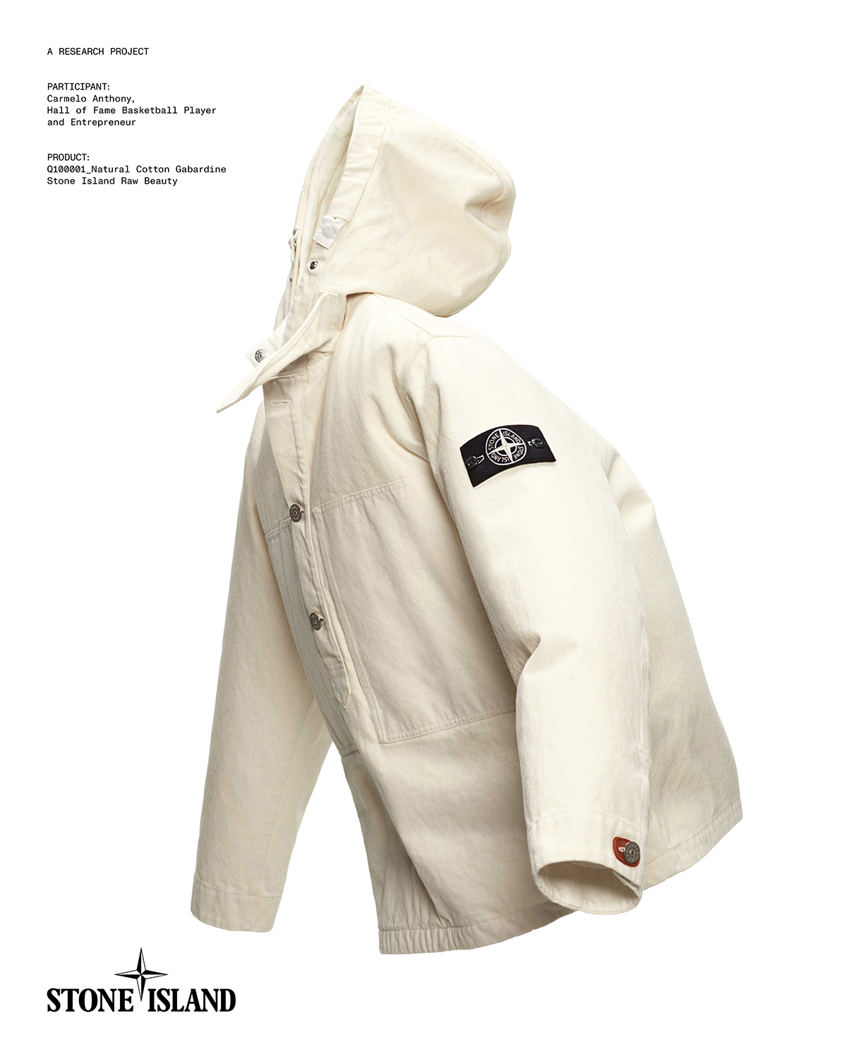 ガーメントダイを得意とするSTONE ISLANDが、あえて染色を施さずに仕上げることで、コットン本来の自然な風合いや色味をそのまま活かし、繊維に残るばらつきや不均一さも素材の個性として表現している。
